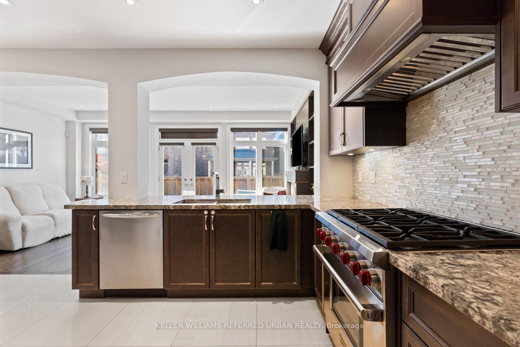 One of the largest end-unit link homes in the subdivision, situated on a premium 40 ft wide lot linked only at the garage. Offering 2,190 sq. ft. above grade plus a 1,012 sq. ft. finished basement, this home delivers nearly 3,200 sq. ft. of total living space - beautifully upgraded throughout. Features include a 36" 6-burner WOLF gas range, butler's pantry, natural gas BBQ hookup, and built-in entertainment unit. Hardwood flooring and 24" tile flow throughout the home. The finished basement includes a full kitchen, recreation/fitness area, 3-pc bathroom with glass shower, and ample storage. Upstairs, the primary suite offers high ceilings, a 5-pc ensuite, and a custom walk-in closet. Convenient second-floor laundry and a spacious 2-car garage with home and backyard access complete the layout. Located in a family-friendly neighbourhood, walking distance to shops, restaurants, and top-rated schools, and just minutes to Hwy 400, the Zancor Rec. Centre, and scenic walking trails. A must-see home offering exceptional quality, comfort, and convenience.