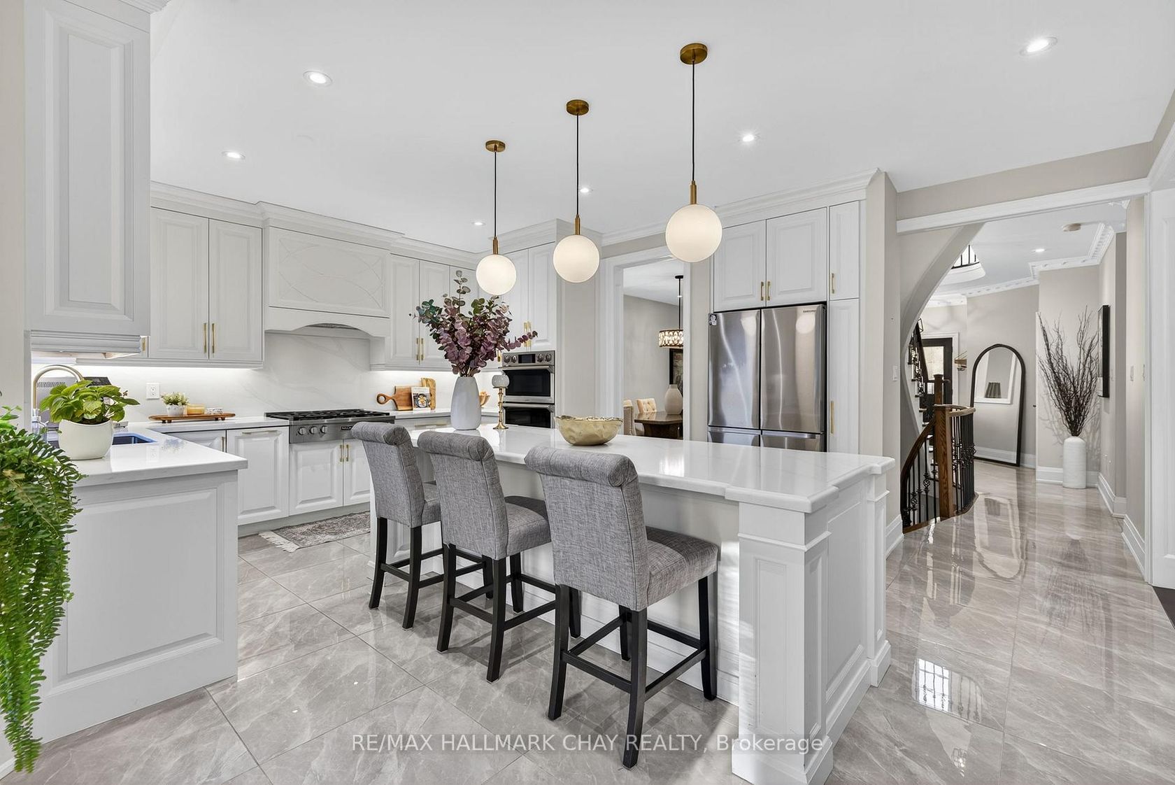 Fully Renovated Family Home with Luxury Finishes & In-Law Suite in Prestigious Woodbridge! Welcome to this beautifully upgraded residence offering over 2,700 sq ft above grade plus a fully finished basement apartment with a private side entrance. Ideally located just steps to Kleinburg Village, McMichael Art Gallery, transit, shops, top-rated schools, and lush parks. This home blends refined design with everyday convenience.Step inside to find a grand foyer with an incredible… centered rod iron staircase- a true show stopper. The stunning main floor renovation completed in 2023, showcasing soaring ceilings, recessed lighting, crown moulding, modern colonial 7" baseboards, and a show-stopping chef's kitchen anchored by a 9-ft centre island with intricate detailing, quartz counters and backsplash, under-cabinet lighting, Beveled shaker cabinets with raised panel detailing, and brushed gold hardware. Enjoy high-end appliances, custom cabinetry, and an open-concept layout that flows seamlessly into your private backyard retreat-complete with a patio, vegetable garden, and tranquil greenery for ultimate privacy. Upstairs, the updated second level (2023) offers a massive primary room with a walk-in closet, full 5pc ensuite and natural light pouring through the many windows. The three other spacious bedrooms are carpet free with a modern bathroom, closets and thoughtful touches throughout. The finished basement suite (2020) provides flexibility for multi-generational living or rental income, featuring a full kitchen, separate laundry, and its own private entrance. Situated across the street from Sonoma Park and beside Jean de Brébeuf Park, this home is surrounded by nature yet minutes from every urban amenity. Perfect for couples or growing families seeking upscale living in a sought-after community.