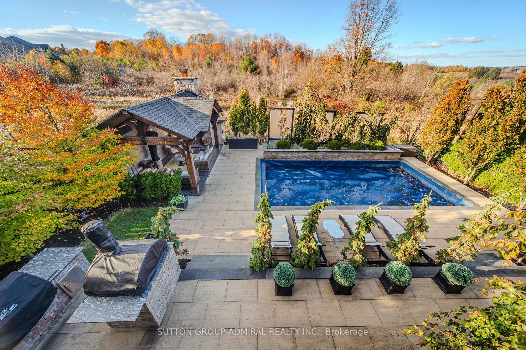 Welcome to this extraordinary Bungaloft Estate, where architectural elegance meets modern luxury. Perfectly set on a lovely ravine lot,this home offers the rare combination of sophistication,comfort and resort-inspired amenities- including a saltwater in-ground pool,cabana with outdoor stone fireplace, triple car heated garage, and a walkout lower level that redefines leisure living.Step inside through the custom Brazilian hardwood front door and be greeted by a grand foyer with cathedral ceilings, 10 ft ceilings on main floor & extensive custom millwork, in-floor lighting & Eurofase lighting. The gourmet kitchen is a culinary masterpiece featuring extended cabinetry, premium appliances, a walk-in pantry and an inviting family size eating area with walk-out to 2-level concrete deck with glass railings with stairs leading to yard. Upstairs the loft has been converted into an elegant glass-enclosed office- ideal for working from home.Each of the four spacious bedrooms boasts its own ensuite bathroom and walk-in closet, providing both privacy and luxury for family and guests alike.The finished basement is an entertainer's paradise, complete with a soundproof theatre room wired for sound, climate controlled wine cellar, custom kitchen, 3-piece bathroom with direct pool access and changing area, a second laundry room and a bright family room with a linear electric fireplace. Fitness enthusiasts will appreciate the gym with mirrored finishes. Loaded with Upgrades!
