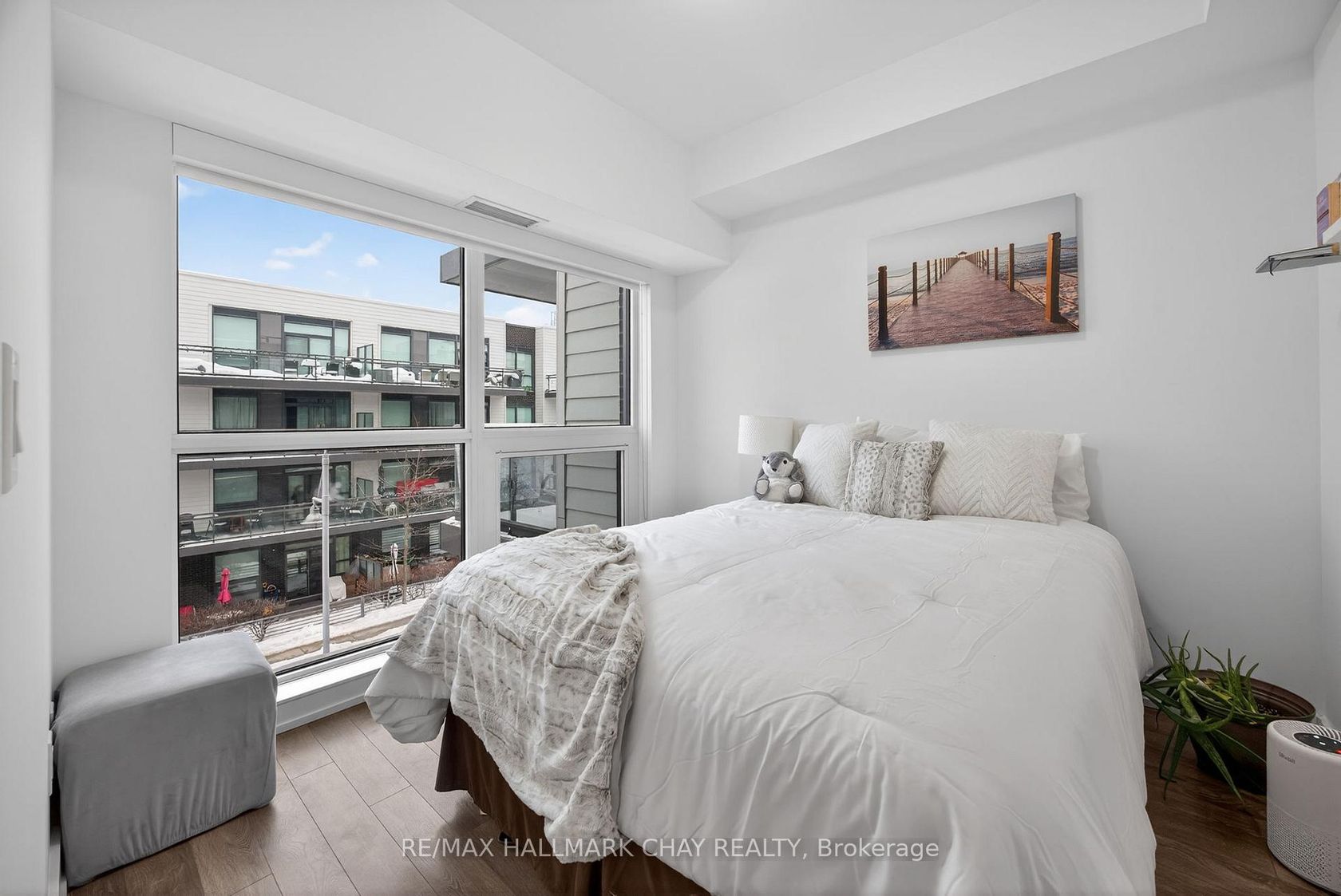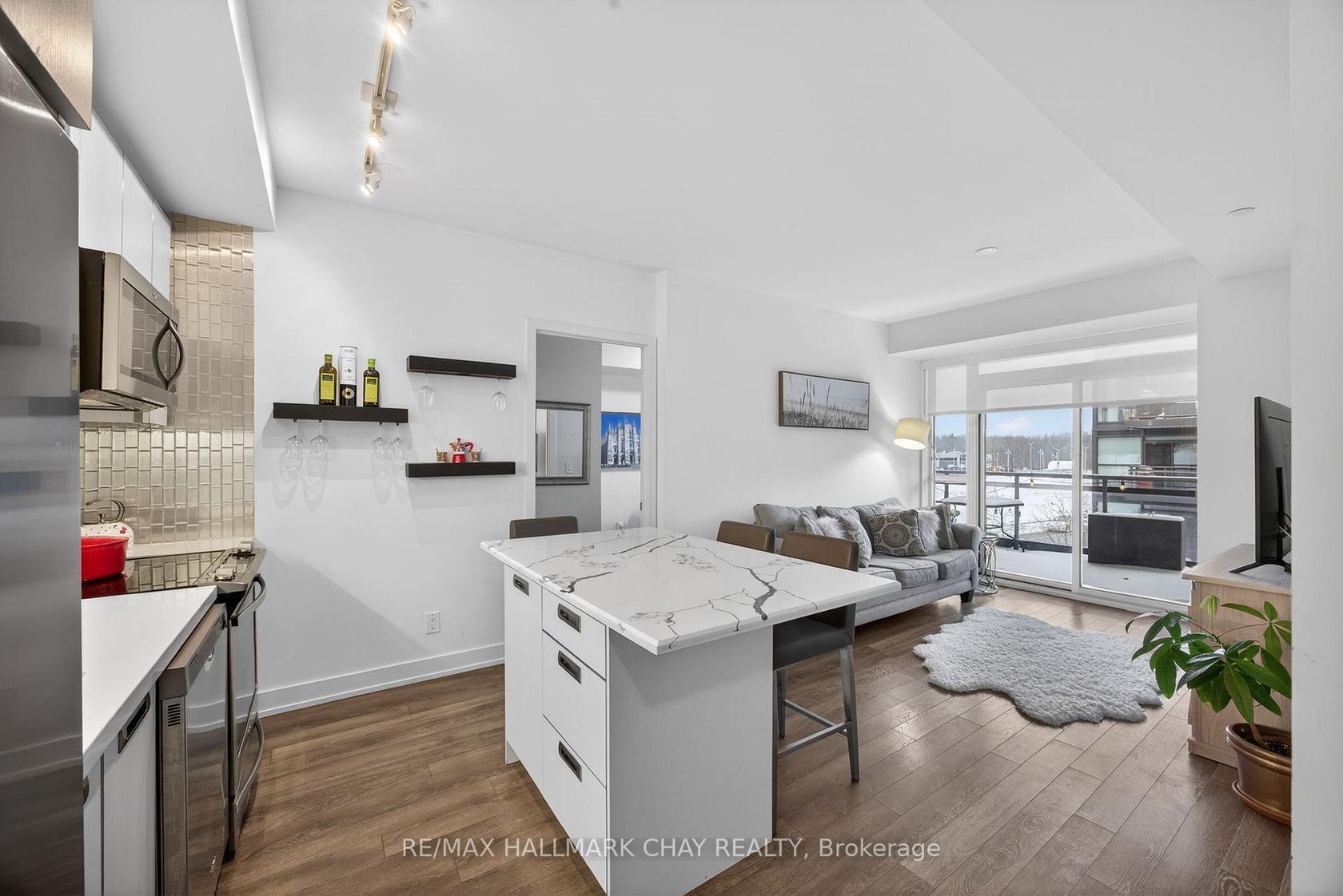 Welcome To Friday Harbour! A Year-Round Resort Style, Maintenance Free Living With Top Class Amenities For All To Enjoy! Spacious 2 Bedroom, 2 Bathroom, 735 SqFt Quiet Corner Unit With Views Of The Boardwalk From Your Balcony! Welcoming Foyer Leads To Open Concept Layout With Premium Upgrades Completed Throughout. Spacious Kitchen Features Stainless Steel Appliances, Quartz Counters, Modern Backsplash, & Centre Island Overlooking The Living Room. Living Room Has Walk-Out To L…arge Balcony & Is Perfect For Hosting! Primary Bedroom With Floor To Ceiling Windows, Built-In Shelving, Large Closet, & 4 Piece Ensuite. Plus Secondary Bedroom With Huge Windows & Large Closet! Additional 3 Piece Bathroom With Glass Shower. Convenient In-Suite Laundry. 1 Underground Parking Space & 1 Storage Locker Included. Resort Style Amenities Include: Outdoor Pool, Gym, Private Dining & Party Rooms, Golf Course, Nature Trails With Over 200 Acres To Explore, & Marina! Plus Owners Private Lake Club With Beach Access, Tennis & Basketball Courts. Everything You Need Is Right At Your Finger Tips With Restaurants, Grocery Store, Starbucks, LCBO, Activities, Hair Salon, Night Club, & Clothing Boutique Right Along The Board Walk! The Perfect Spot To Live Year Round Or A Great Vacation Spot During The Summer With Access To Lake Simcoe! Monthly Maintenance Fee Includes Common Elements, Building Insurance / Maintenance, Landscaping & Snow Removal. Additional Fees Include: Lake Club Fee $199.09 + HST Per Month, Annual Resort Fee $1,352.40, Buyer Acknowledges 2% Resort Entry Fee When Buying. You'll Never Want To Leave!