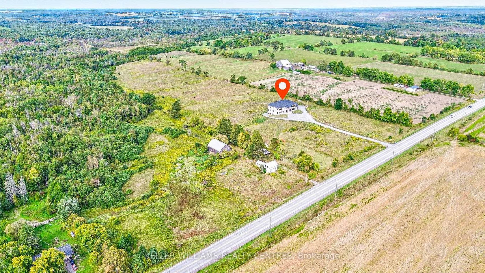 Enjoy Countryside living on this gorgeous 100 acres of gently rolling hills. Nestled in the lovely Hamlet of Brown Hill, with southern exposure & superb panoramic hilltop views. Conveniently located to Keswick, Sutton & just minutes to HWY 404. This unique opportunity offers 2 homes including a 5 year new 9400 Sq' ft custom built Stone & Brick 17 room residence set far from the road with a long circular driveway leading to the main entry & 4 car garage; a separate Century Home circa 1870 (needs reno) which could be perfect for extended family, staff or a potential rental income & a Large Barn & Drive Shed that provides plenty of room for storage, equipment or hobbies. Inside, the open concept design includes expansive living areas, 11' pot lit ceilings, large bright windows that overlook the surrounding country side & a mix of 2 x 4 ceramic tiles & hardwood floors throughout. The impressive kitchen is well suited for those who love to cook, featuring a 9' x 5' center island, Quartz countertops & backsplash, 2 full sinks, abundant cupboard space, pantries & a Juliette Balcony. The alternate entry from the 4 car garage leads to a spacious utility area offering main level laundry facilities, a separate shower & extra Pantry storage all with a separate entry to the side yard. The 6 grand bedrooms, one of which is on the main level feature generous private retreats for everyone, personal ensuite baths, hardwood floors, 11' Pot lit Ceilings & large spacious Walk-in closets. Additional laundry & utility rooms are on the second floor with a rough in elevator available to all 3 levels. The custom floating staircase leads to a bright open walkout lower level that is waiting for you to unleash your imagination & personalize its finishing. This property is perfect for those seeking privacy & space in a scenic country setting.
