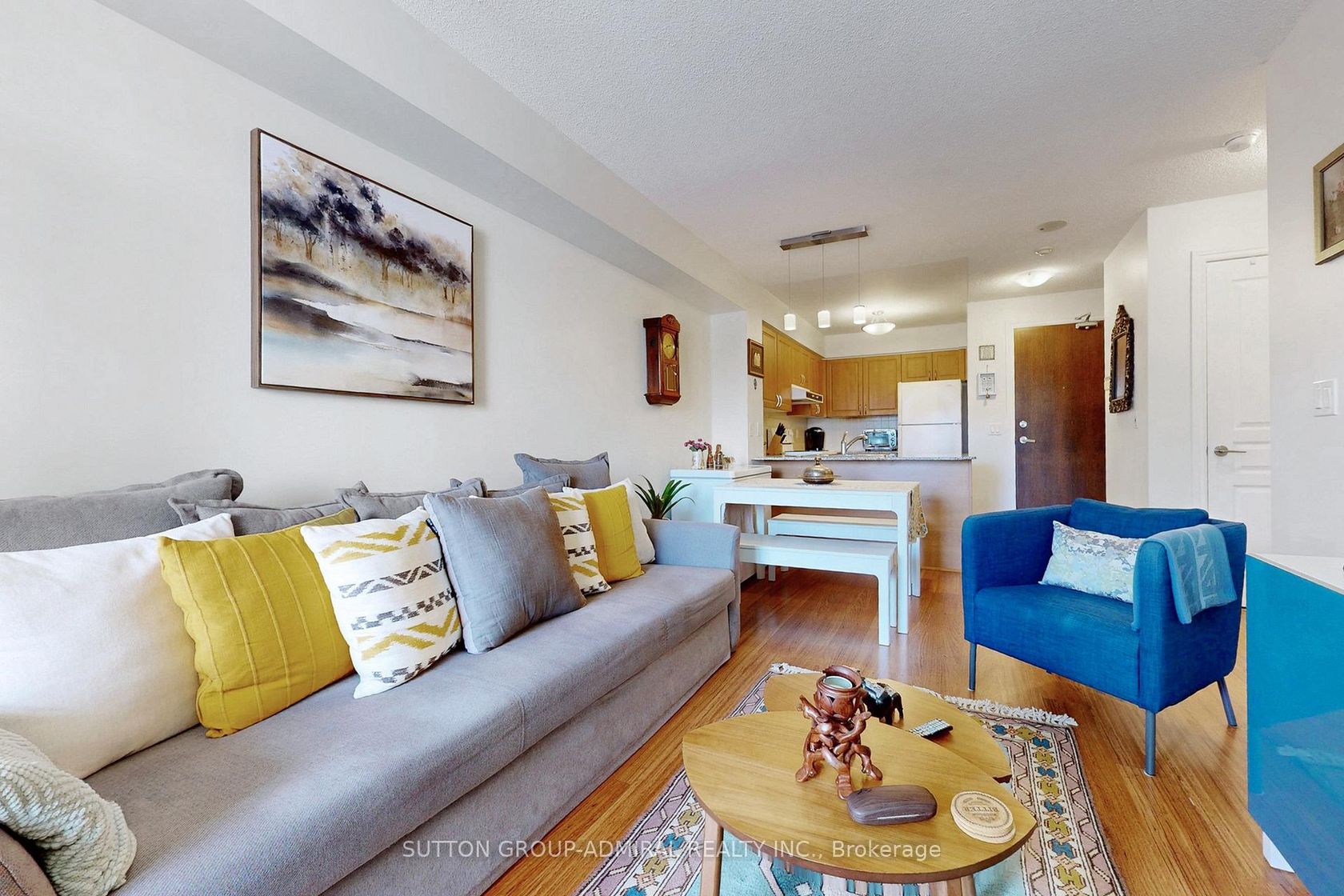 Beautifully maintained one-bedroom suite in the sought-after Vista at Thornhill Centre. Features a full bathroom, open-concept layout, and private balcony. The kitchen offers ample storage and a breakfast bar, while the bright bedroom includes a double closet and a park view. Also includes underground parking. Walking distance to Walmart, Winners/HomeSense, Promenade Mall, T&T grocery, restaurants, cafes, and services. Close to Hwy 7, Hwy 407 and transit. Pet friendly building allows for 1 pet under 25 lbs. Indoor pool, gym, party room, 24-hr security included.
