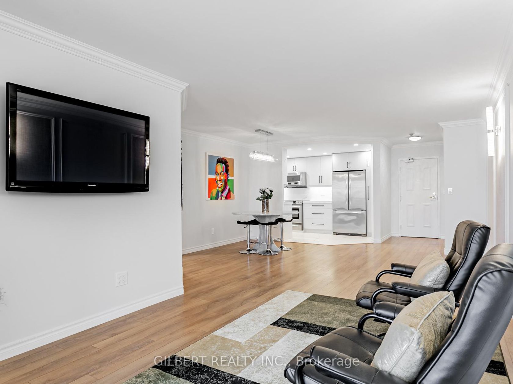 WELCOME TO 100 OBSERVATORY LANE, UNIT 806! An almost 1,200 sq. ft. fully renovated suite in one of Richmond Hill's most sought-after communities, complete with a large private balcony. This bright, sun-filled 2-bedroom plus den, 2-bathroom home offers a spacious and highly functional layout, perfect for comfortable living. The unit features hundreds of thousands of dollars in custom upgrades, including a modern kitchen with high-end stainless steel appliances, quartz counter…tops and backsplash, and recessed pot lighting. This spacious unit also includes two parking spaces, with all utilities covered in the maintenance fees. Additional enhancements include fresh paint throughout, luxury laminate flooring, crown mouldings, modern custom light fixtures, window coverings, and two fully upgraded bathrooms. The upgraded laundry room is equipped with custom cabinetry and quartz countertops.The primary bedroom offers a 4-piece ensuite, two separate closets, and sliding doors with direct balcony access. Enjoy abundant natural light and desirable west exposure. This impeccably maintained building offers excellent amenities such as guest suites, a pool, gym, and games room. Book your showing today!