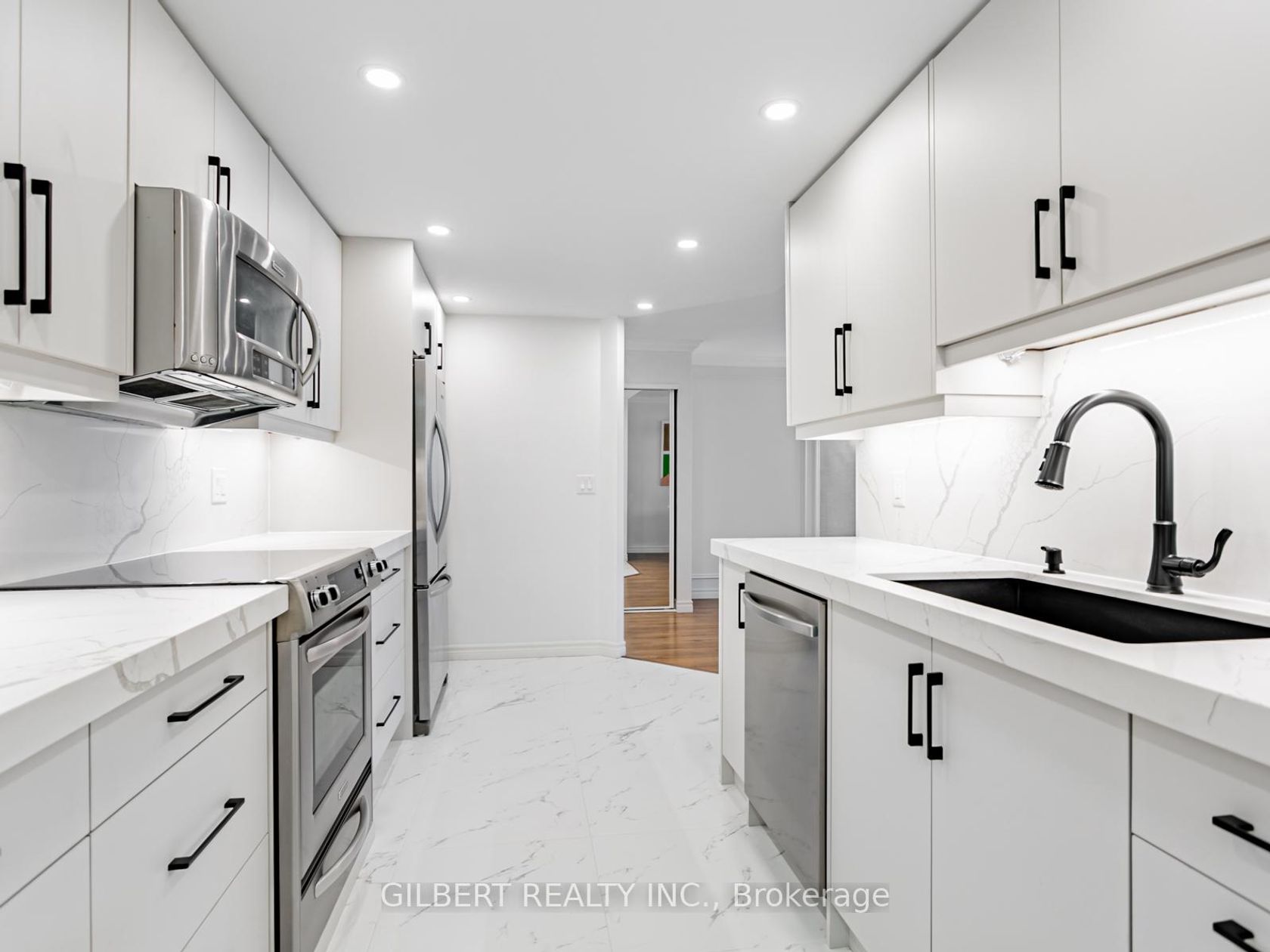 WELCOME TO 100 OBSERVATORY LANE, UNIT 806! An almost 1,200 sq. ft. fully renovated suite in one of Richmond Hill's most sought-after communities, complete with a large private balcony. This bright, sun-filled 2-bedroom plus den, 2-bathroom home offers a spacious and highly functional layout, perfect for comfortable living. The unit features hundreds of thousands of dollars in custom upgrades, including a modern kitchen with high-end stainless steel appliances, quartz countertops and backsplash, and recessed pot lighting. This spacious unit also includes two parking spaces, with all utilities covered in the maintenance fees. Additional enhancements include fresh paint throughout, luxury laminate flooring, crown mouldings, modern custom light fixtures, window coverings, and two fully upgraded bathrooms. The upgraded laundry room is equipped with custom cabinetry and quartz countertops.The primary bedroom offers a 4-piece ensuite, two separate closets, and sliding doors with direct balcony access. Enjoy abundant natural light and desirable west exposure. This impeccably maintained building offers excellent amenities such as guest suites, a pool, gym, and games room. Book your showing today!