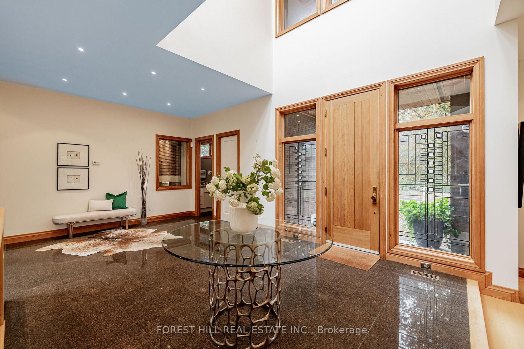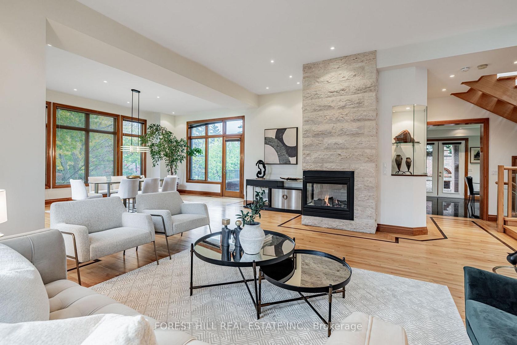 **Architectural**------- BOLD & SOLID & MODERN & UNIQUE ------- meticulously designed by Toronto's premier residential architect, "Lorne Rose", Inspired by Frank Lloyd Wright's iconic Prairie Style, this architectural gem blends seamlessly into its strong horizontal lines, open floor plans, and connection to nature, and this Prairie-Style Home was built for its owner--has been loved by its owner for many years. This executive home residence boasts an elegant circular driveway… with 3cars garage, resort-style patio wrapped both E.S sides of yard. Inside, a breathtaking 20ft cathedral ceiling with skylights entrance foyer, the living room showcases a stunning floor-to ceiling stone gas fireplace, generous principal room with hi ceiling, perfect for entertaining. The dining room offers a stunning-lush garden views with natural light, easy access to a terrace for retreat. The spacious-private family room features a wood-burning fireplace with abundant natural sun lights. The chef-inspired kitchen is equipped with premium appliance and a large eat-in area ideal for family gatherings, and private access to a wrap-around terrace complete with a pizza oven. Upstairs, providing airy-atmosphere from multi-skylights & ample windows all around. The luxurious primary suite offers a cathedral ceiling, fireplace including its own private ensuite and walk-in closet. The additional bedrooms have all double closets, lots of windows for natural sunlights, providing comfort and functionality. The fully finished lower level with separate entrance is designed for entertaining and relaxation, featuring a large recreation room, 2 bed rooms, a spacious laundry room, and a full bathroom.