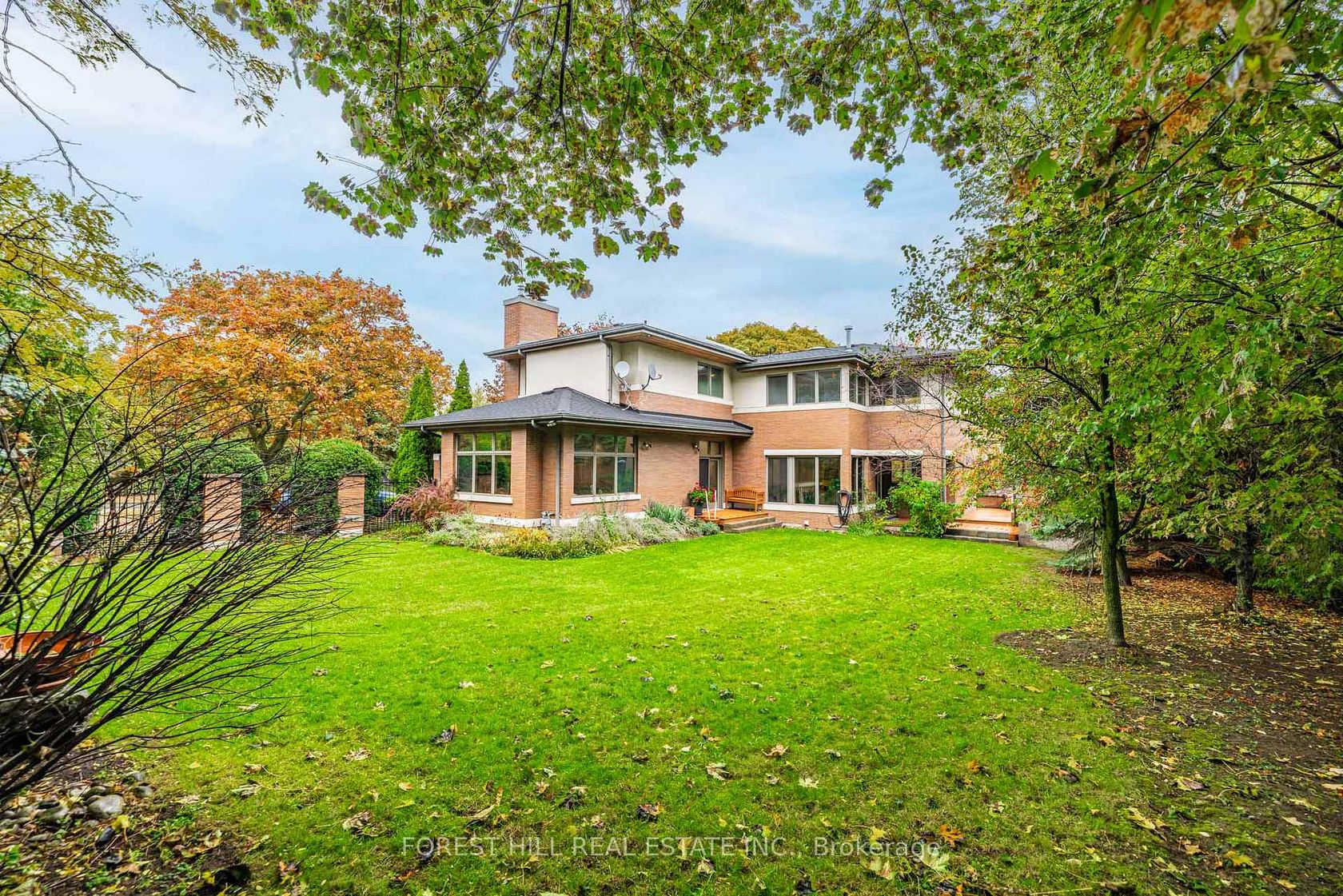 **Architectural**------- BOLD & SOLID & MODERN & UNIQUE ------- meticulously designed by Toronto's premier residential architect, "Lorne Rose", Inspired by Frank Lloyd Wright's iconic Prairie Style, this architectural gem blends seamlessly into its strong horizontal lines, open floor plans, and connection to nature, and this Prairie-Style Home was built for its owner--has been loved by its owner for many years. This executive home residence boasts an elegant circular driveway with 3cars garage, resort-style patio wrapped both E.S sides of yard. Inside, a breathtaking 20ft cathedral ceiling with skylights entrance foyer, the living room showcases a stunning floor-to ceiling stone gas fireplace, generous principal room with hi ceiling, perfect for entertaining. The dining room offers a stunning-lush garden views with natural light, easy access to a terrace for retreat. The spacious-private family room features a wood-burning fireplace with abundant natural sun lights. The chef-inspired kitchen is equipped with premium appliance and a large eat-in area ideal for family gatherings, and private access to a wrap-around terrace complete with a pizza oven. Upstairs, providing airy-atmosphere from multi-skylights & ample windows all around. The luxurious primary suite offers a cathedral ceiling, fireplace including its own private ensuite and walk-in closet. The additional bedrooms have all double closets, lots of windows for natural sunlights, providing comfort and functionality. The fully finished lower level with separate entrance is designed for entertaining and relaxation, featuring a large recreation room, 2 bed rooms, a spacious laundry room, and a full bathroom.