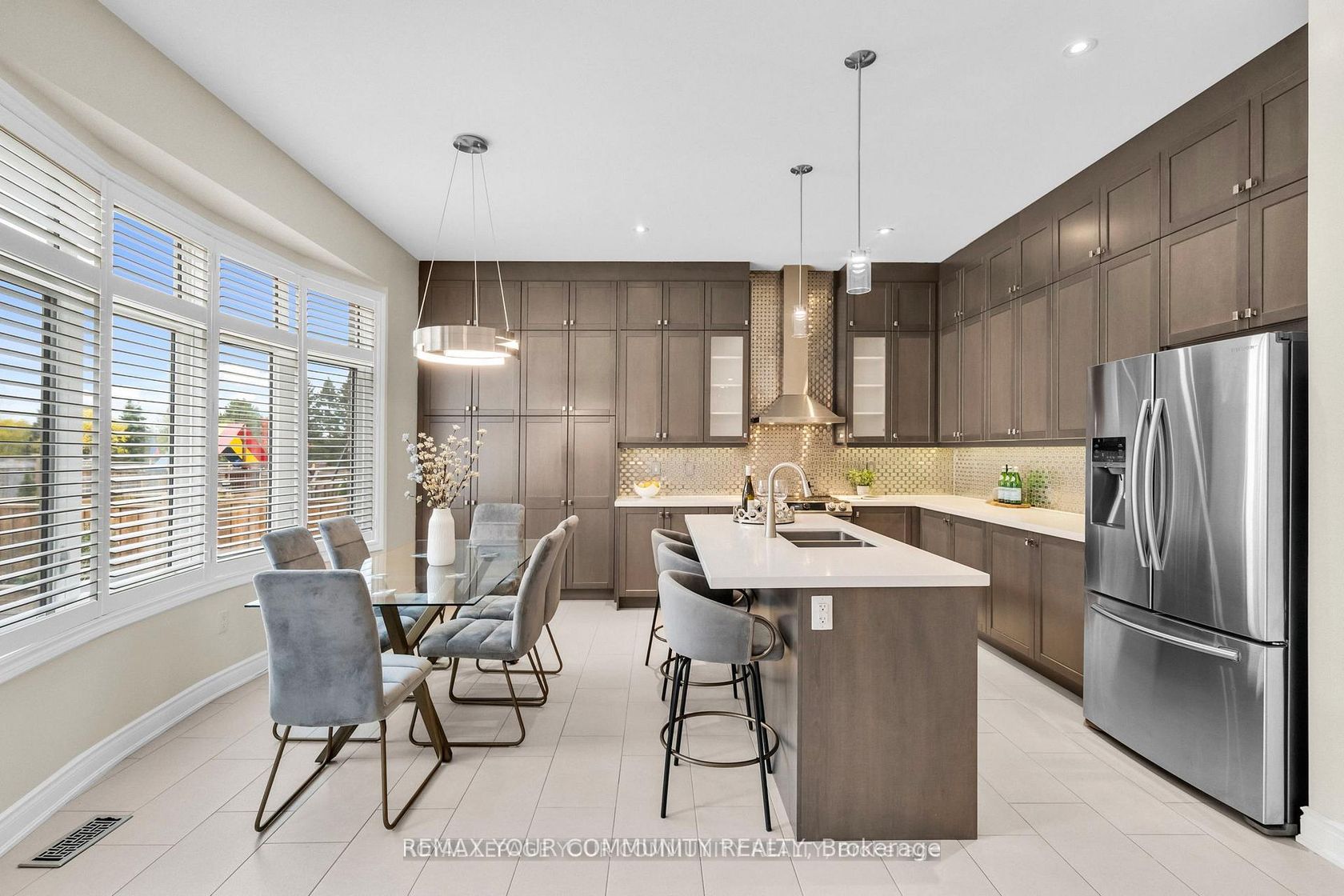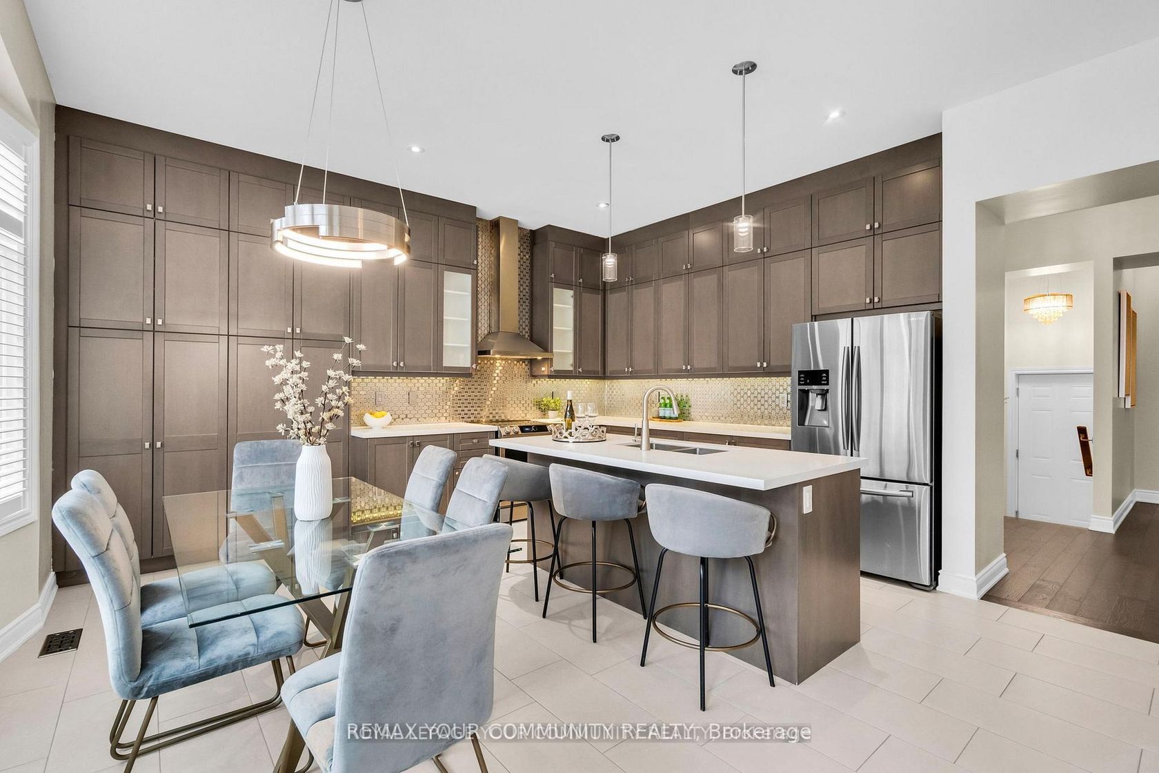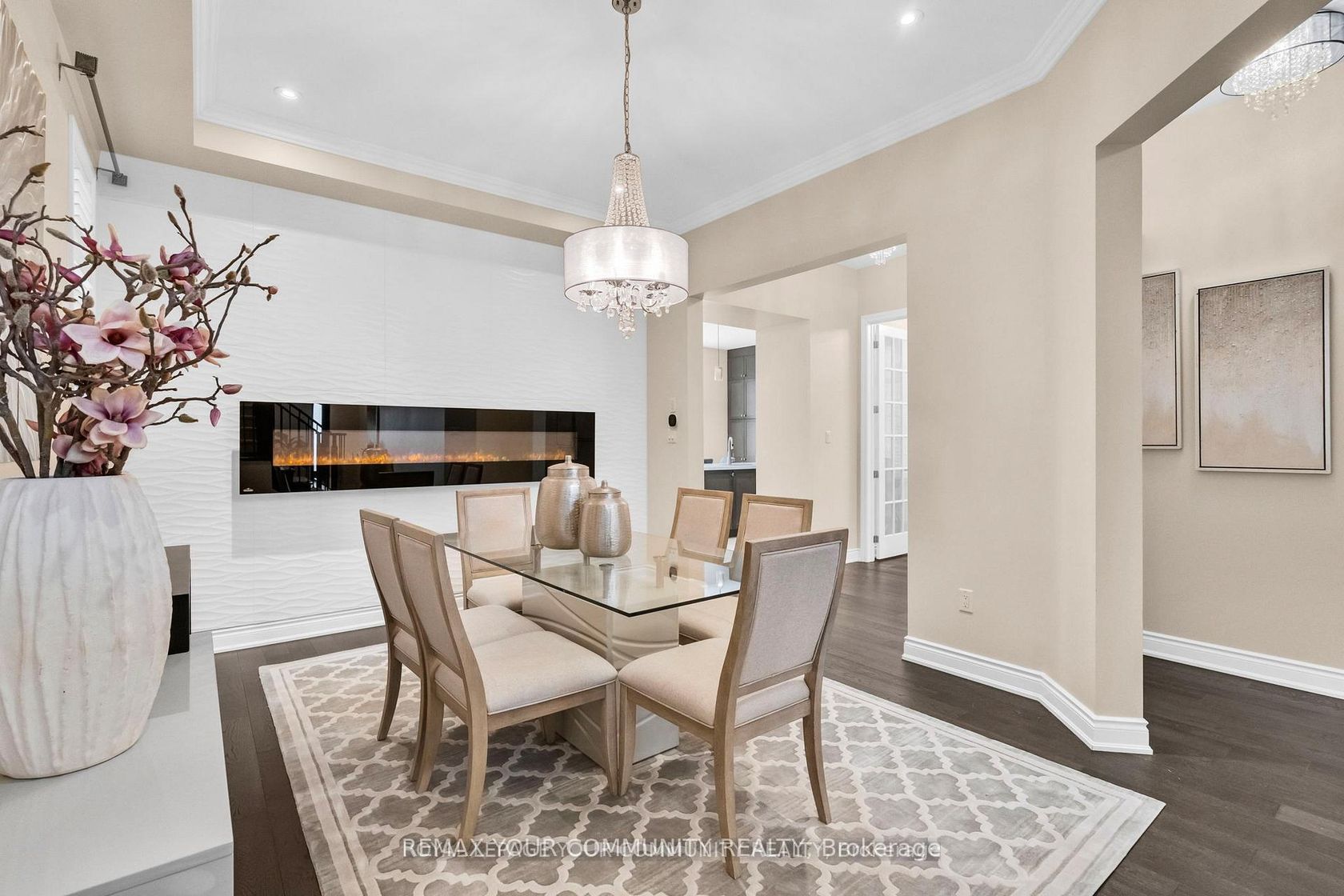 Welcome to Lucky Number 8 King Boulevard, an elegant fully renovated home in a peaceful residential pocket of King City. Perfectly positioned across from a school park with no neighbors in front, this home blends comfort and style. Step inside to soaring 10 foot ceilings, abundant natural light, and above average finishes throughout. The gourmet kitchen is a showpiece with custom cabinetry, a stylish backsplash, a large quartz countertop with a breakfast bar, and a bright bre…akfast area overlooking the backyard. The family room is warm and inviting with a gas fireplace, built in shelves, and surround sound speakers. The dining room features an electric fireplace that creates a refined setting for entertaining. A formal office with French doors adds flexibility and elegance. Upstairs, the oversized primary bedroom includes his and hers walk in closets, with one offering custom built ins and a secure safe. The second bedroom has its own 3 piece bathroom, while bedrooms three and four share a 4 piece bathroom with double sinks. An open loft and convenient laundry room complete the upper level. The finished basement offers a spacious recreation area currently set up as a home gym and media room with a projector screen and surround sound. A private bedroom and 3 piece bathroom provide space for guests or extended family. Step outside to the backyard oasis with a charming pergola, perfect for relaxing or entertaining. Families will love the quiet setting, top rated schools, nearby trails, parks, local shops, cafés, and easy access to transit and major routes. This exceptional home combines thoughtful design, quality upgrades, and an unbeatable location in the heart of King City. Double car garage, 10 ft ceilings, Custom kitchen, Main Floor Office, Gas and electric fireplaces, Loft and laundry upstairs, Finished basement with media area and gym, Pergola, 5 Minute Drive to the GO Station, 3 Minutes to The King City Arena & Community Centre.