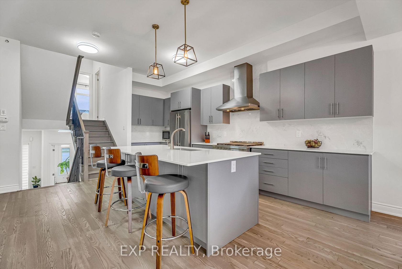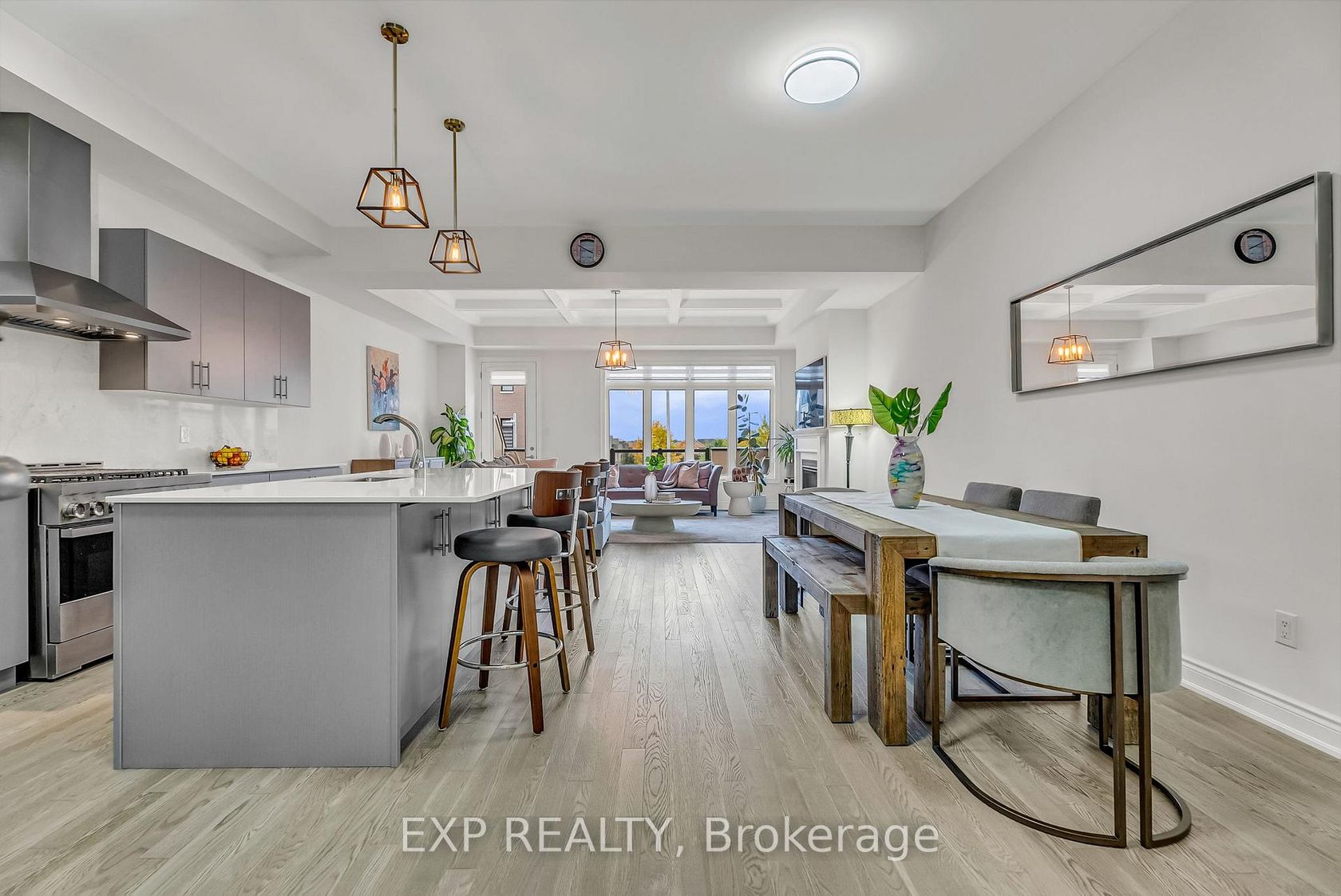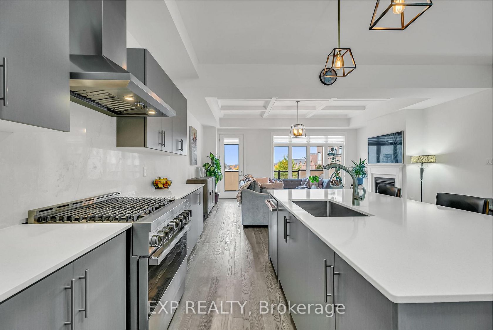 Welcome to 9548 Weston Road, an executive freehold townhome offering just over 3,000 sq ft of refined living space in Vaughan's prestigious Vellore Village. Thoughtfully designed for modern families, this upgraded home blends elegance, functionality, and premium finishes, featuring a 2-car garage, multiple outdoor walkouts, and a finished lower-level suite. The main floor boasts 10-foot smooth ceilings, an elegant waffle ceiling in the Great Room, and engineered hardwood floo…rs throughout the main and upper levels. The chef-inspired kitchen is equipped with top-of-the-line JennAir stainless steel appliances (including a gas stove), granite countertops, an extended breakfast bar, and custom cabinetry that balances form and function. The Great Room features a cozy gas fireplace and opens to a spacious 20 x 11-foot terrace - perfect for outdoor dining and entertaining. Convenient main-floor laundry and direct garage access add everyday ease. Upstairs offers 9-foot ceilings, a primary retreat with His & Hers walk-in closets, a private balcony, and a spa-inspired 5-piece ensuite featuring a freestanding soaker tub, frameless glass shower, and quartz finishes. Two additional bedrooms provide generous space - including one with its own balcony walkout - ideal for family or guests. The fully finished lower level adds versatility with pot lights throughout, a bedroom, full bath, and kitchenette - perfect for a nanny suite, in-law suite, or independent guest quarters. Tech-savvy buyers will appreciate hardwired internet in every room for seamless connectivity. Located steps from St. Jean de Brebeuf Catholic High School, minutes to Vaughan Mills, Canada's Wonderland, Highways 400 & 407, and Cortellucci Vaughan Hospital, this home offers the perfect blend of luxury, lifestyle, and location - delivering the space of a detached home with the ease of townhome living in one of Vaughan's most desirable communities.