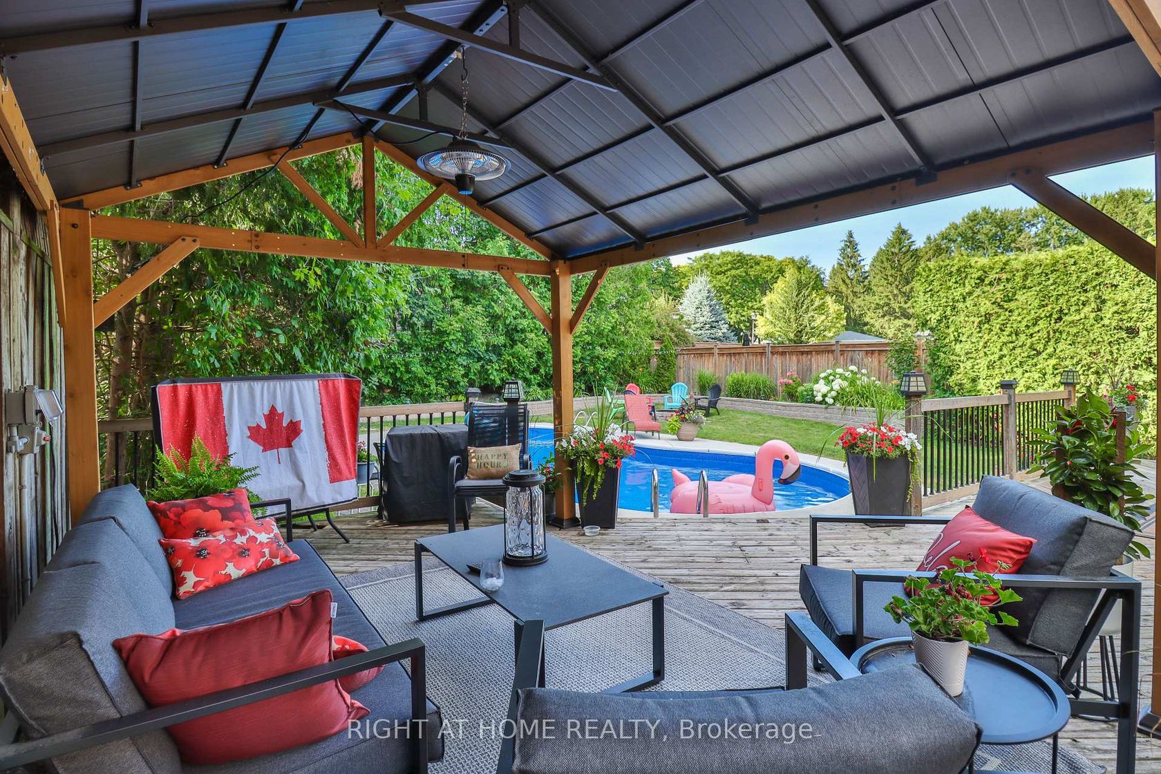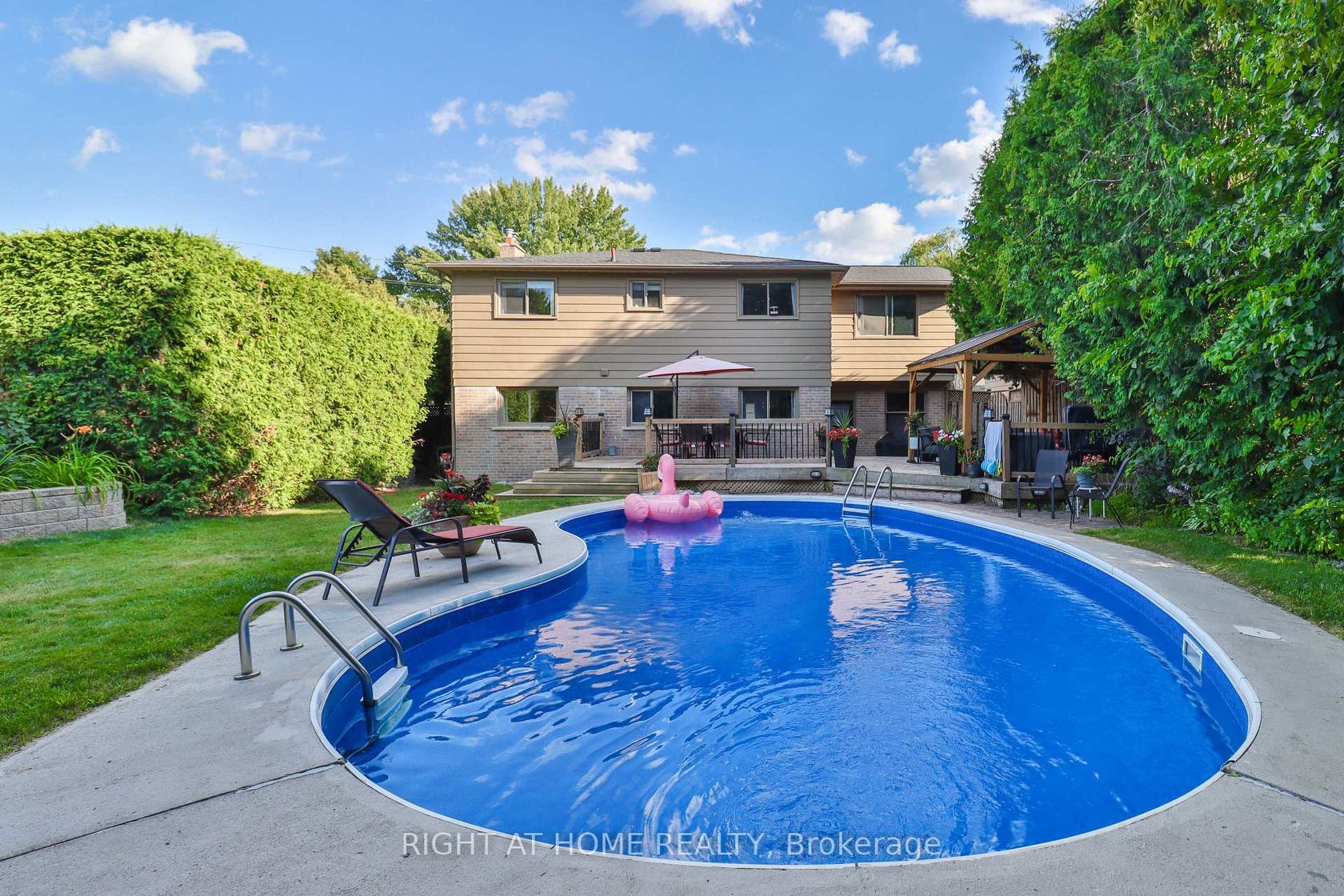 This fantastic family home is situated in a central location, just a short walk to historic Main Street, dining, shopping, schools (including Catholic secondary and French Immersion), the hospital, and with quick access to Hwy 404. Inside, the home offers a versatile layout with a bonus upstairs room that can serve as a fourth bedroom or playroom, along with a finished basement for additional living space. Recent upgrades include quartz counters in the kitchen and bathroom, updated exterior doors, fresh interior and exterior painting, a new electrical panel, and new flooring upstairs. The property has also been well maintained with pool improvements in the past three years, including a new liner, heater, and pump/filter. Additional highlights include a bright eat-in kitchen, large bay window in the living room, spacious master bedroom, and double driveway for ample parking. Step outside to enjoy the cottage-like backyard retreat, featuring a large, fully fenced, treed, and private lot complete with an in-ground pool, fire pit, and cedar gazebo on an oversized deck perfect for entertaining family and friends.