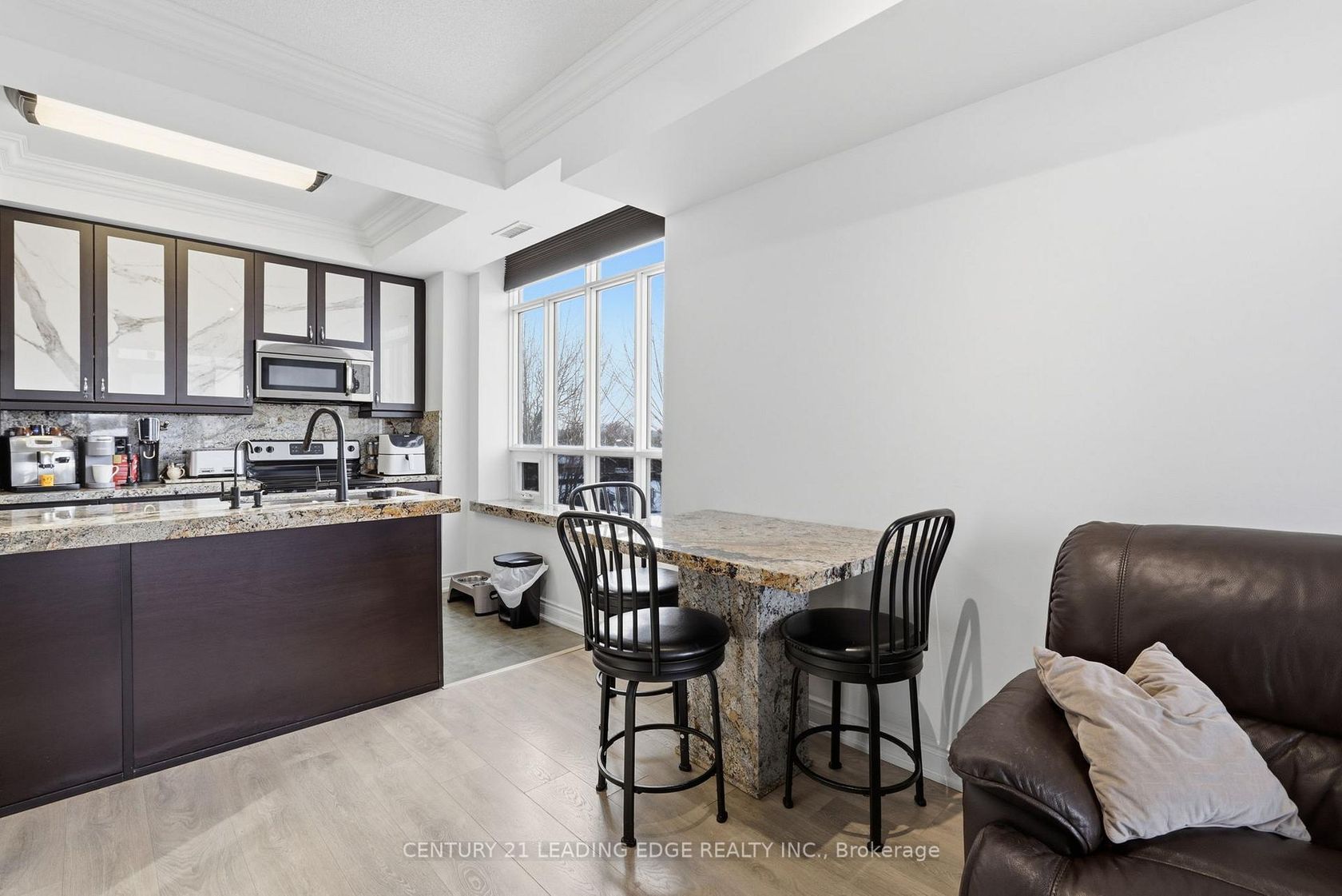 Discover refined living in this 882 sq ft European-inspired boutique corner condo, where 9 ft ceilings and warm west sunlight create a bright, inviting ambiance. The beautifully upgraded kitchen features a tray ceiling, crown moulding, premium cabinetry with marble inlays, exotic granite for the centre island, countertops, backsplash and window ledge with a matching dining table, and stainless steel appliances which is perfect for effortless entertaining. The open-concept liv…ing and dining area, enhanced with elegant crown moulding, provides a spacious and airy canvas for gatherings or quiet evenings with a great size balcony. The primary bedroom offers a serene retreat with a walk-in closet and 3-piece ensuite, while the second bedroom is ideal for children, guests, a home office, or hobbies. The additional 4-piece bathroom adds everyday convenience. Both bathrooms have upgraded Brazilian Exotic Quartzite for vanities. Rarely offered, this unit includes 2 underground parking spaces and a locker. Enjoy resort-style amenities including a landscaped courtyard with BBQ, fitness room, party room, and visitor parking, and not to forget the main floor stores! (Dental Office, Healthcare, Spa & Skin Care, Jewelry). Ideally situated just steps from Maple GO Station, Vaughan Mills, Cortellucci Hospital, Canada's Wonderland, Highway 400, parks, trails, restaurants, and a golf course. This condo truly has it all.