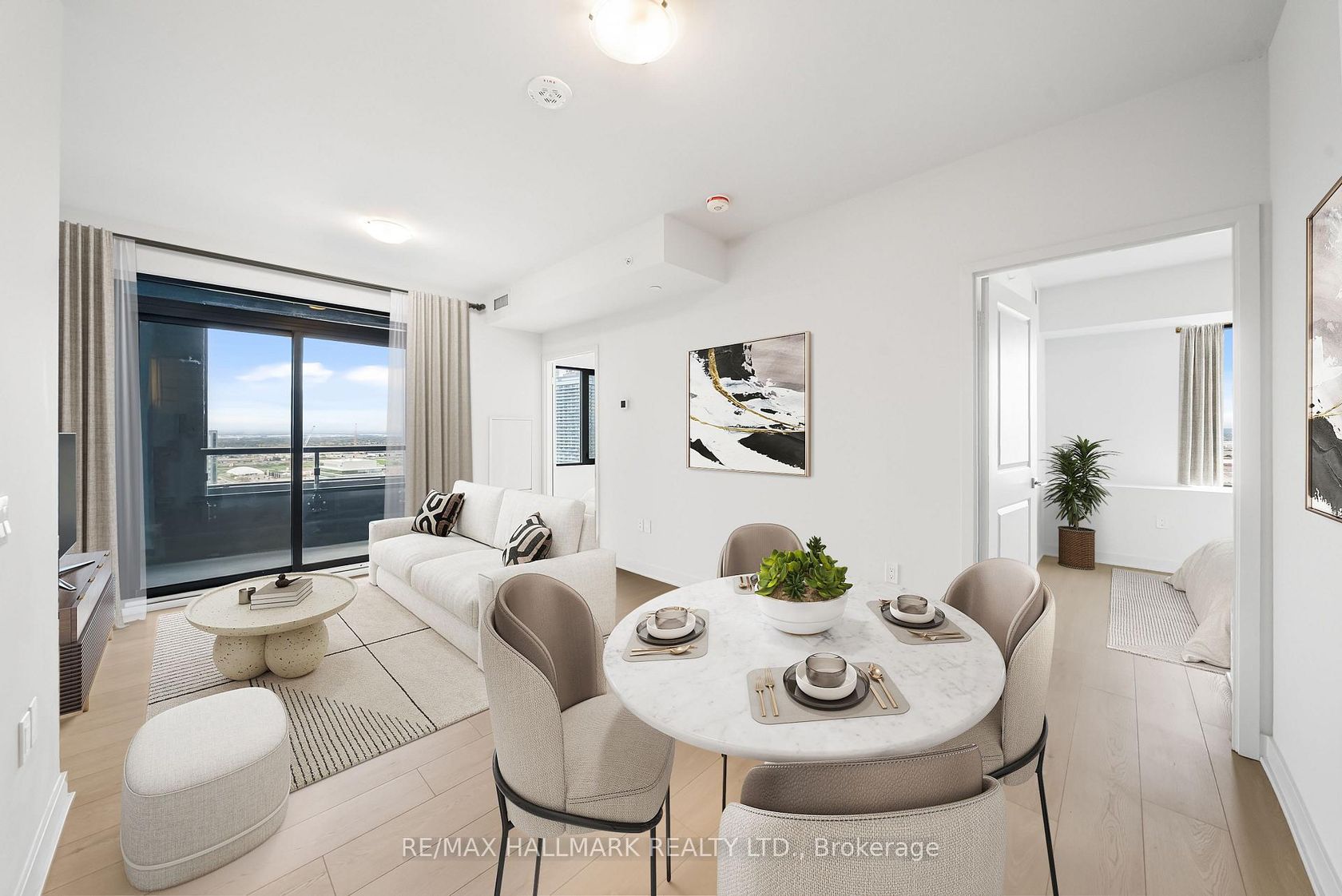 Sun-drenched with unobstructed, this 2-bedroom, 2-bath corner suite, with parking, is the opportunity you've been waiting for! Welcome to suite 2302, where contemporary style meets smart, functional design. The open-concept living and dining area offers a flexible layout with a spacious setting for relaxing or entertaining. The sleek, modern kitchen boasts full-height cabinetry (extra storage!), upgraded stone countertops with a designer edge, and integrated stainless steel a…ppliances. The bright and airy layout is enhanced by wide-plank laminate flooring throughout, creating a warm and cohesive feel from room to room. Step outside to a west-facing balcony and take in clear and soaring views, perfect for enjoying your morning coffee or winding down in the evening. The primary bedroom features both north and west-facing windows for maximum natural light, along with a walk-in closet and a private 3-piece ensuite. The second bedroom is spacious with large windows and a double closet. A stylish 4-piece main bathroom with a deep soaker tub and vanity storage. Residents enjoy an impressive range of amenities, including a 24-hour concierge, a fully equipped fitness centre, yoga studio, party and media rooms, a library, rooftop terrace, pet spa, and more. Situated just steps from the VMC Subway Station, with quick access to Highways 400 and 407, Vaughan Mills, and surrounded by shops, restaurants, parks, and entertainment, this is urban living at its most convenient.
