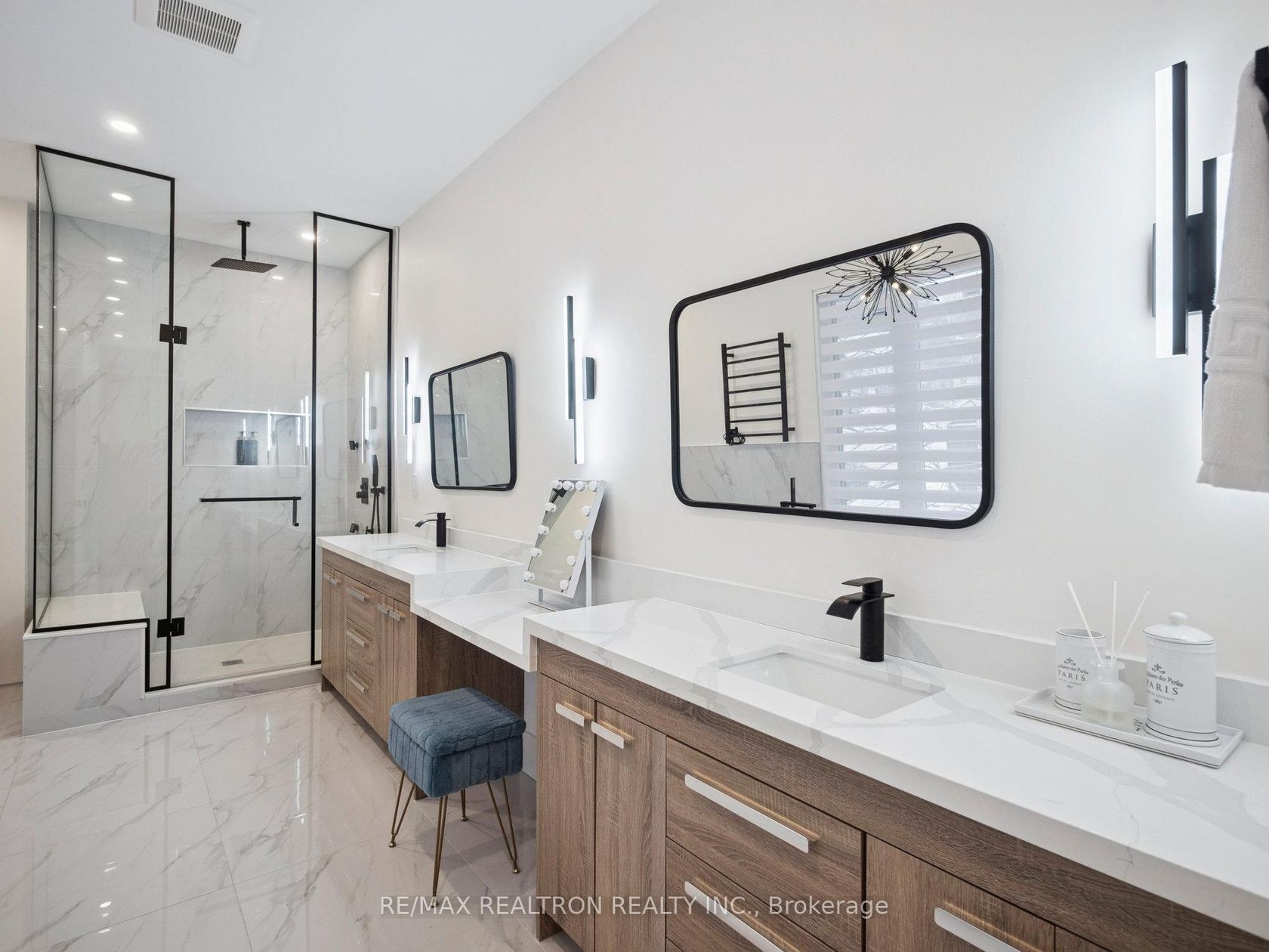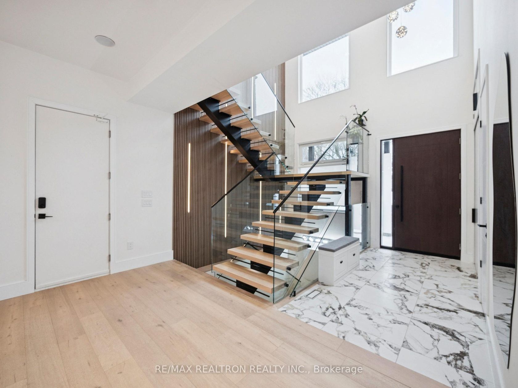 Experience pure luxury at this one-of-a-kind custom home, where no detail has been overlooked. Walking distance to Pickering College & Newmarket's Main St. Approximately 4800 total sqft of modern elegance, with oversized windows 6' & 6.5', this home is filled with natural light and boasts Standoff glass railings, solid oak treads, remote control blinds in the stairwell, 8' interior solid doors, a Danalock front entrance door, and built-in speakers on two levels. This home is also a smart haven with lights in the garage & front entrance, cameras, speakers, and appliances that can all be controlled from a smartphone. The high-end custom kitchen features a quartz backsplash and countertops, modern built-in magnetic track ceiling lights, Miele kitchen appliances, a Jenn-Air induction stove, a Miele gas stove top, and a Dacor fridge. The open-concept main floor features 10' ceilings, a Smart toilet in the powder room, heated floors in the entrance, engineered hardwood floors throughout (7.5" wide planks), and modern decorative flute panels, setting the tone for the exceptional design. The upper level features 9-foot ceilings, 4 spacious bedrooms, 3 bathrooms, and a second-floor laundry for ease of living. The master suite is your private retreat, with a custom walk-in closet, a luxurious 5-piece ensuite with custom cabinets, a glass-enclosed shower, a standalone tub and a large walk-in closet. The wired cameras (Lorex) offer added security, while the basement features 9' ceilings, offers a side door entrance, Hydronic heated floors, built-in speakers, a Sauna (A+ grade cedar), and a 3-piece bath, making this an ideal space for a home business, extra room for family & guests or a possible in-law suite. Outside features include Interlock walkways, garden beds, glass railings on the porch, a natural-gas BBQ valve, a metal roof, 3-car drive parking, a 2-car garage, and 8-foot privacy fencing. This home isn't just a place to live; it's a lifestyle, you can move in & enjoy!