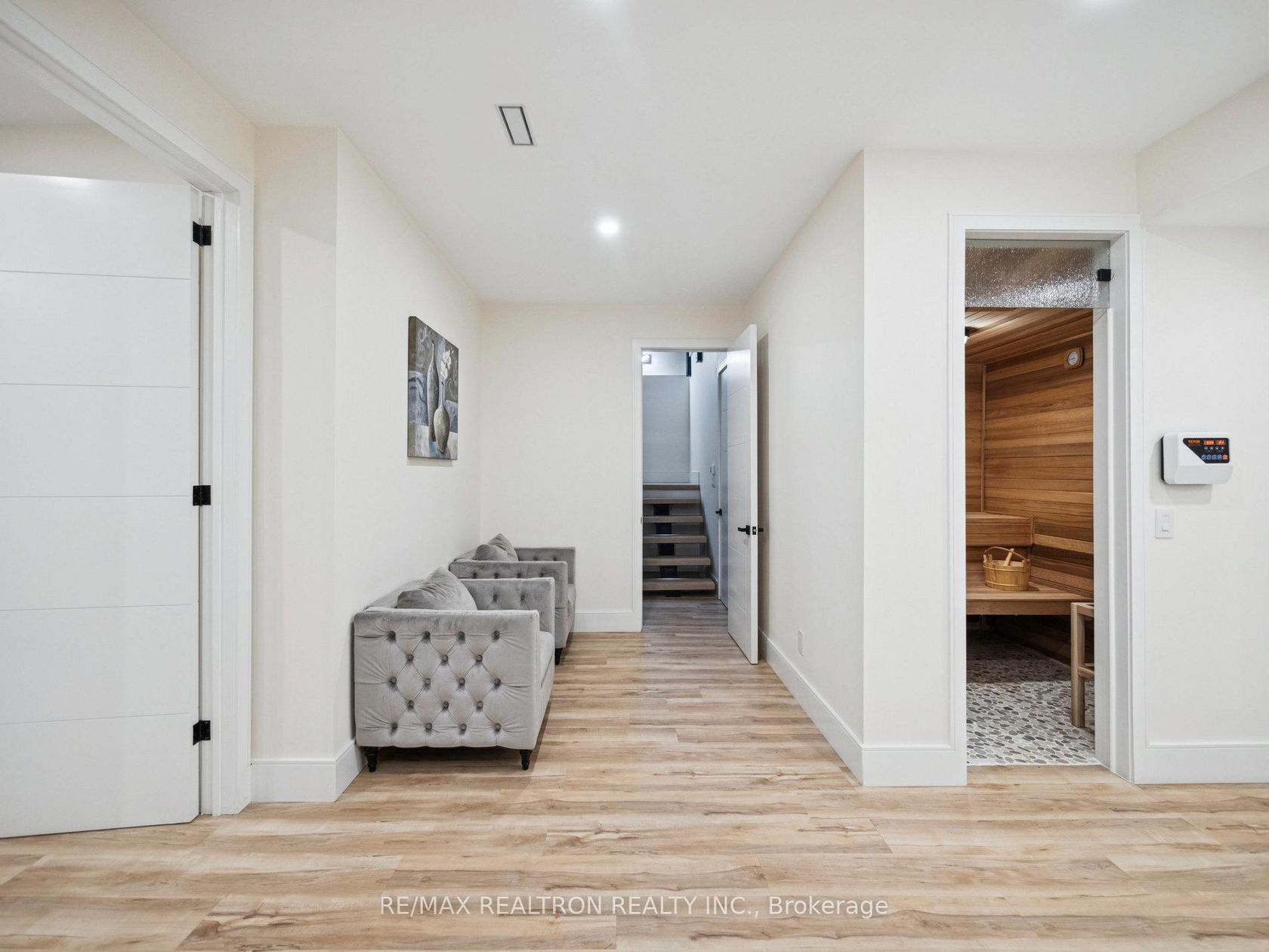 Experience pure luxury at this one-of-a-kind custom home, where no detail has been overlooked. Walking distance to Pickering College & Newmarket's Main St. Approximately 4800 total sqft of modern elegance, with oversized windows 6' & 6.5', this home is filled with natural light and boasts Standoff glass railings, solid oak treads, remote control blinds in the stairwell, 8' interior solid doors, a Danalock front entrance door, and built-in speakers on two levels. This home is …also a smart haven with lights in the garage & front entrance, cameras, speakers, and appliances that can all be controlled from a smartphone. The high-end custom kitchen features a quartz backsplash and countertops, modern built-in magnetic track ceiling lights, Miele kitchen appliances, a Jenn-Air induction stove, a Miele gas stove top, and a Dacor fridge. The open-concept main floor features 10' ceilings, a Smart toilet in the powder room, heated floors in the entrance, engineered hardwood floors throughout (7.5" wide planks), and modern decorative flute panels, setting the tone for the exceptional design. The upper level features 9-foot ceilings, 4 spacious bedrooms, 3 bathrooms, and a second-floor laundry for ease of living. The master suite is your private retreat, with a custom walk-in closet, a luxurious 5-piece ensuite with custom cabinets, a glass-enclosed shower, a standalone tub and a large walk-in closet. The wired cameras (Lorex) offer added security, while the basement features 9' ceilings, offers a side door entrance, Hydronic heated floors, built-in speakers, a Sauna (A+ grade cedar), and a 3-piece bath, making this an ideal space for a home business, extra room for family & guests or a possible in-law suite. Outside features include Interlock walkways, garden beds, glass railings on the porch, a natural-gas BBQ valve, a metal roof, 3-car drive parking, a 2-car garage, and 8-foot privacy fencing. This home isn't just a place to live; it's a lifestyle, you can move in & enjoy!