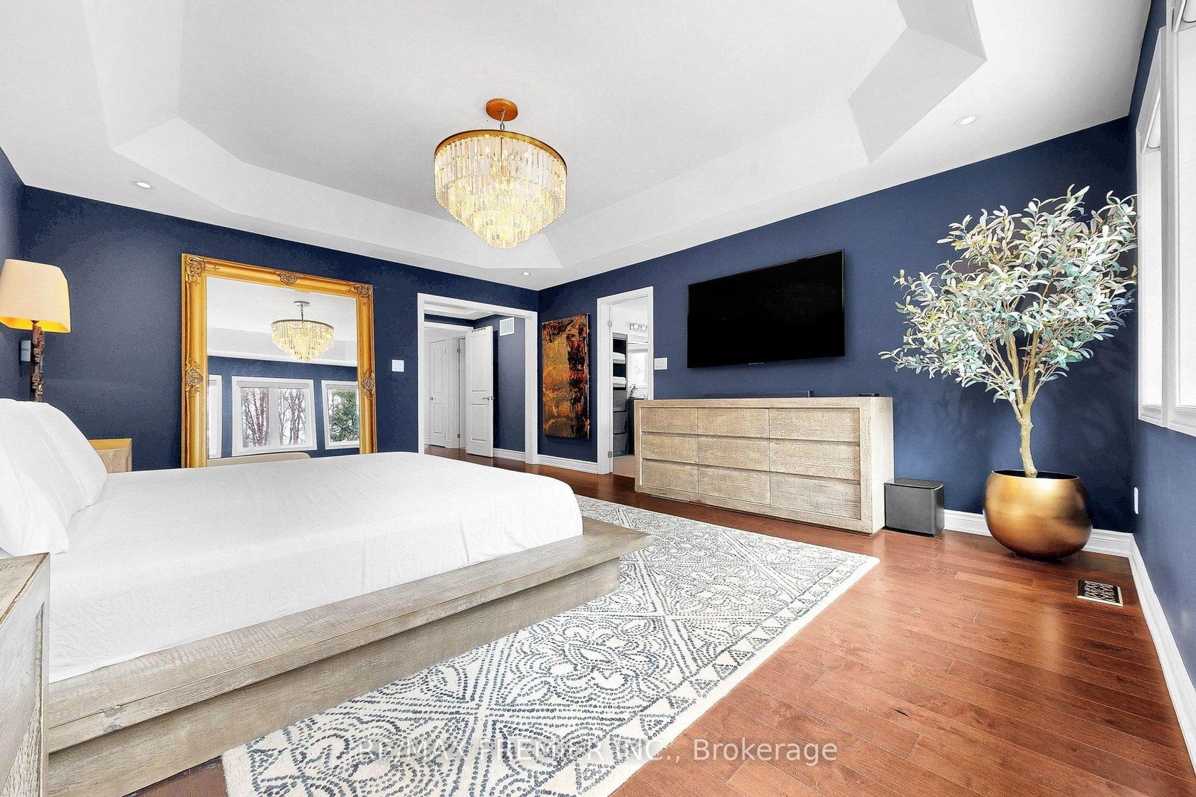 Stunning Luxury Home on a Premium Ravine Lot in Prestigious Cold Creek Estates! Nestled on a quiet, family-friendly street backing onto a breathtaking ravine and lush woodlot, representing one of the most exclusive and substantial lot upgrades in the community - a premium setting that reflects a significant six-figure added value. The main level features expansive principal rooms, a private study, and a designer chef's kitchen equipped with premium Wolf & Sub-Zero appliances,… beverage/wine fridge, and built-in Miele coffee system. Walk out to the upgraded modern deck with glass panels and pot lights - perfect for entertaining. Elegant hardwood floors, Restoration Hardware chandeliers, motorized shades, and a custom designer brick feature wall elevate every space. Upstairs, the luxurious primary retreat offers a spa-inspired ensuite with standalone tub and rain shower. Generously sized bedrooms and a second-floor recreation room with walkout balcony provide comfort and flexibility for the entire family. The fully finished walk-out basement adds incredible versatility, featuring a large recreation area, designer gas fireplace, full chef's kitchen, bedroom/gym, and spa-like bath with steam shower - ideal for extended family or potential income. Step outside to your private resort-style backyard oasis complete with an in-ground pool, spillover spa, waterfall feature, full lighting and cleaning systems, luxury porcelain tile throughout, upgraded fencing and illuminated hedges, interlocking side steps, and extensive outdoor pot lights. Advanced security system with 8 exterior cameras and alarm siren connects directly to mobile. Additional upgrades include a paneled epoxy double garage. Close to Highways 400, 427 & 407, TTC subway, GO Train, Vaughan Mills, Canada's Wonderland, hospital, banks, restaurants, Walmart & Home Depot. Upgraded top to bottom with exceptional craftsmanship - true pride of ownership throughout.