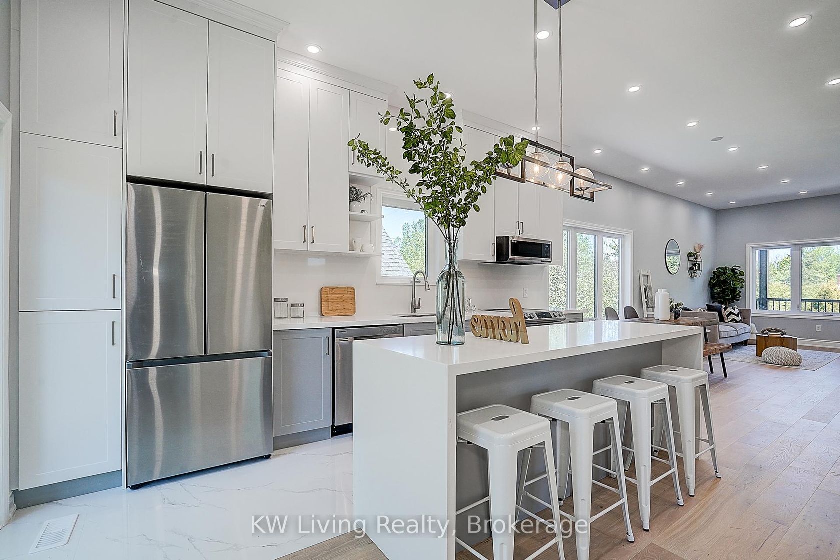 Brand New, Never Lived In Custom Built Home With 10 Ft Ceilings On The Main Floor, 9 Ft Ceilings Below, And Oversized Above Grade Windows, Offering Over 2,400 Sq.Ft. Of Total Living Space. Featuring 2 Full Modern Kitchens And Laundry Hookups On Both Levels, This Home Offers Endless Potentials. Over $100K In Upgrades Include Quartz Countertops, A Waterfall Edge Island, Two-tone Cabinetry, Brand-Name Stainless Steel Appliances, Engineered Hardwood, And Potlights Throughout. The… Primary Bedroom Boasts A 3-Piece Ensuite, While The Basement Bedroom Has Direct Access To Another 3-Piece Bath, With All Bathrooms Featuring Quartz Vanities And LED Backlit Mirrors. The Exterior Blends Metal, Stone, And Vinyl Finishes, Complemented By An Upgraded Composite Front Deck With Covered Roof, Recessed Potlights, And Under-Deck Storage, Plus A Freshly Painted Rear Deck. A 90 Ft Driveway Provides Ample Space For A Boat Or RV, And The Detached Garage Includes A Remote Opener. Just Steps From Private Beach Access, This Move In-Ready Home Perfectly Combines Modern Style, Comfort, And Functionality.