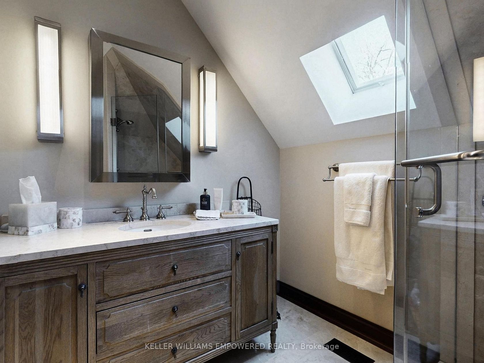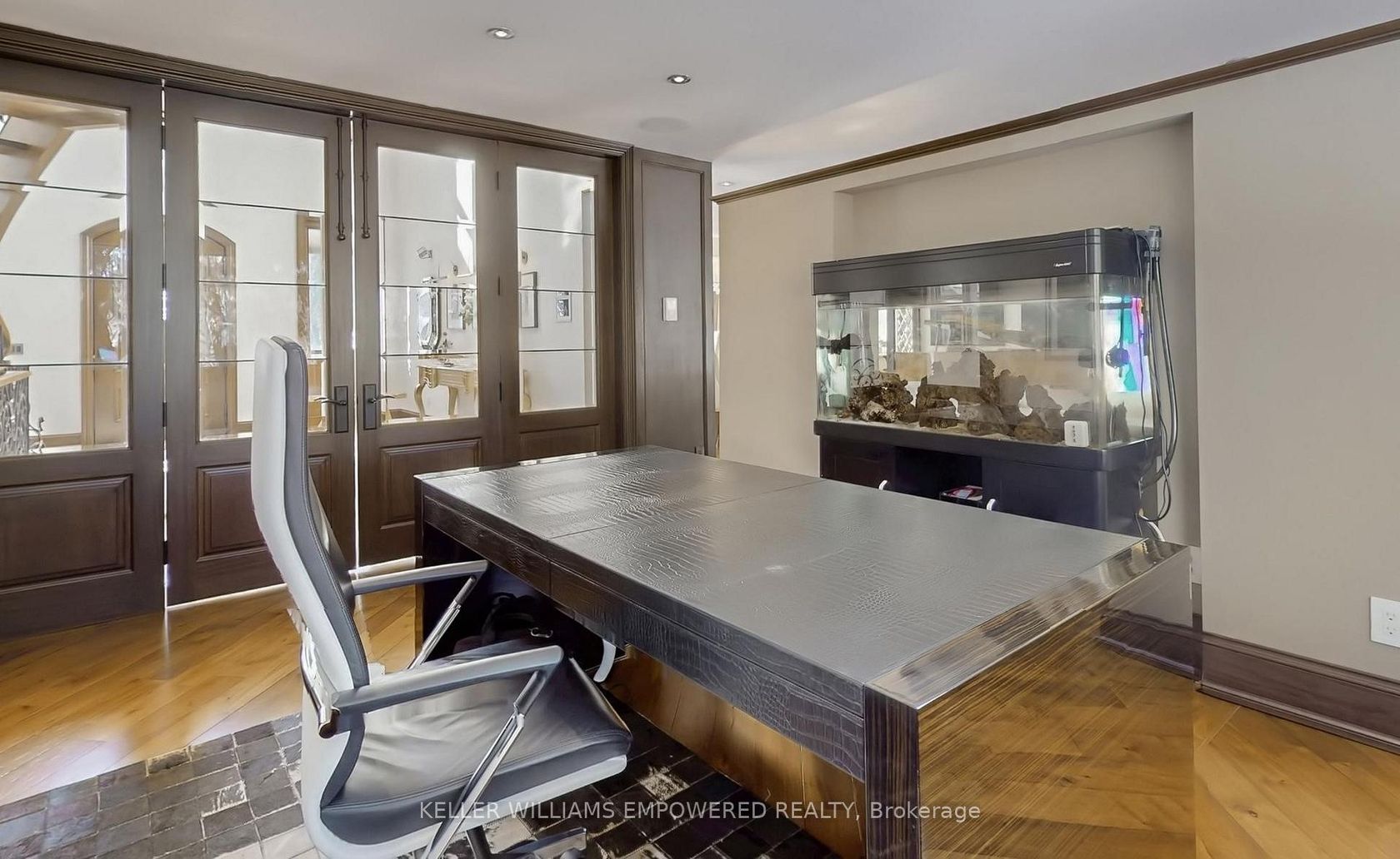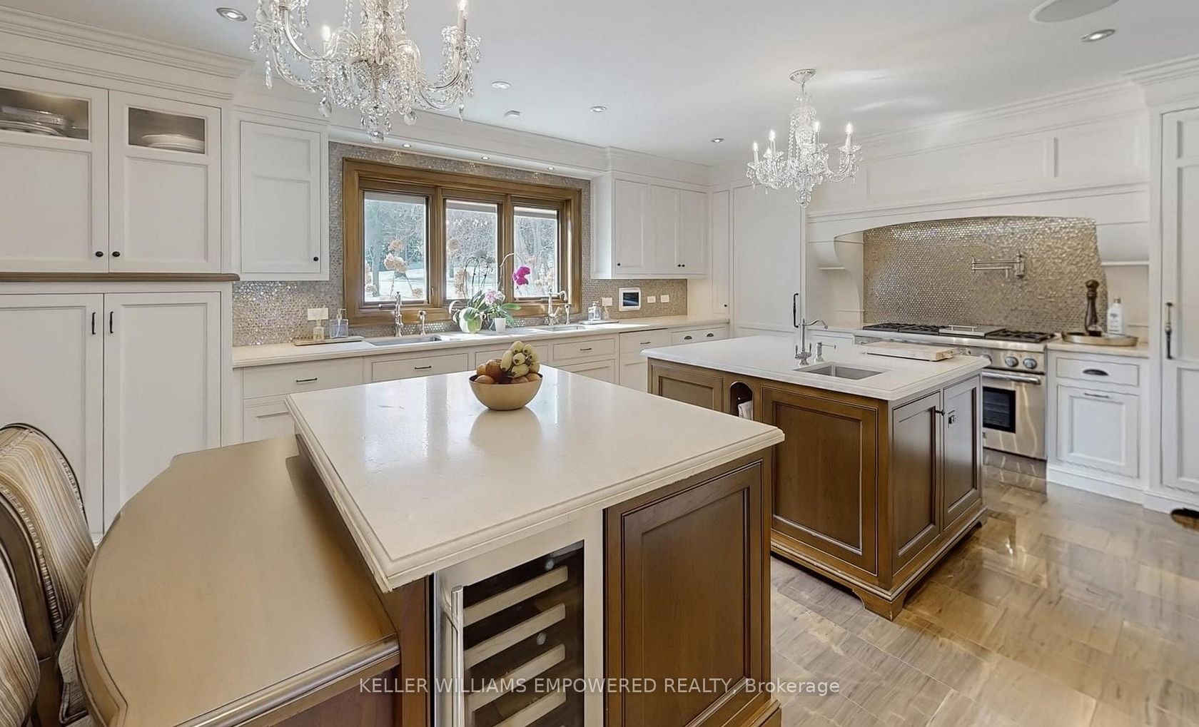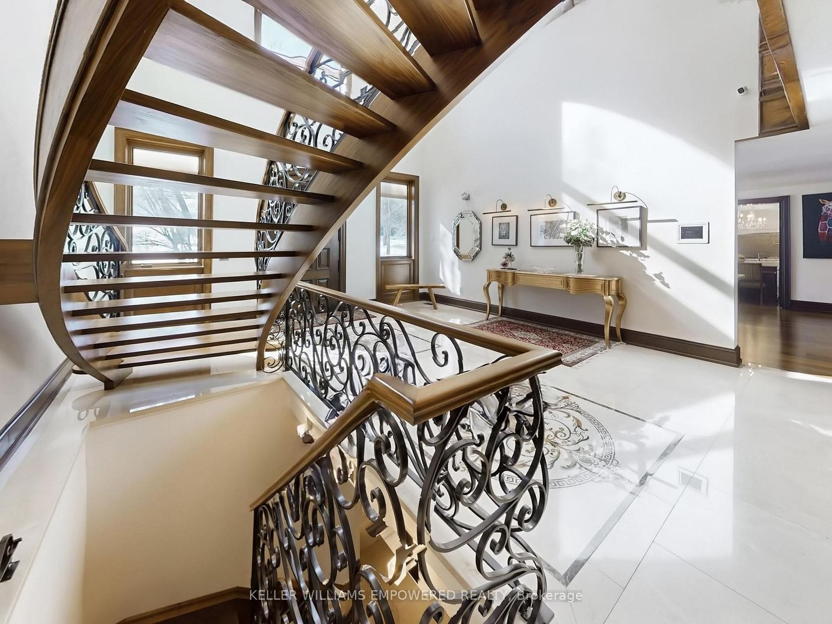 Set behind an automated custom wrought iron gate and framed by towering trees, this estate offers resort-style outdoor living and exquisite interior finishes. The front grounds feature a cobblestone driveway with snow-melt, basketball court, courtyard w/ fountain and granite bench. The rear grounds include an infinity saltwater pool w/ waterfall and in-pool seating, flagstone dining area , covered cedar lounge w/ seamless access from the family room, plus a wooded entertainme…nt area w/ fire pit and an upper deck overlooking the property, all backing onto conservation. Inside, a dramatic foyer with 25' cathedral ceiling, four skylights, crystal chandelier, curved walnut staircase, and Crema Marfil marble floors. Walnut floors, custom mahogany doors, and designer lighting flow through the dining and living rooms, the latter w/ deck access. The chef's kitchen offers heated marble floors, Bloomsbury cabinetry, marble counters, Thermador appliances, dual islands, and a built-in Miele coffee station, connecting to the family room w/ floor-to-ceiling fireplace and rear grounds views. Upstairs, the luxurious primary suite features nearly 13' ceilings, a sitting area, fireplace, Juliet balcony, walk-in closet, and 7-piece spa-inspired ensuite with heated floors, freestanding air-jet tub, dual water closets, and glass shower. A secondary primary bedroom w/ cathedral ceilings. Remaining bedrooms include vaulted ceilings ranging approximately from 10' to 12'9". The finished lower level has walk-up access to the yard, recreation room, games room, in-law quarters, , gym/guest suite, secondary laundry Additional highlights: 3.5-car heated garage with workshop and storage closet, Indiana limestone façade, cedar roof with copper accents, Pella windows with built-in blinds, home automation, security system, and indoor/outdoor lighting and audio throughout. Walk to top-ranked St. Theresa CHS and drive to SAC, SAS, HTS, Lauremont, CDS & Villanova.