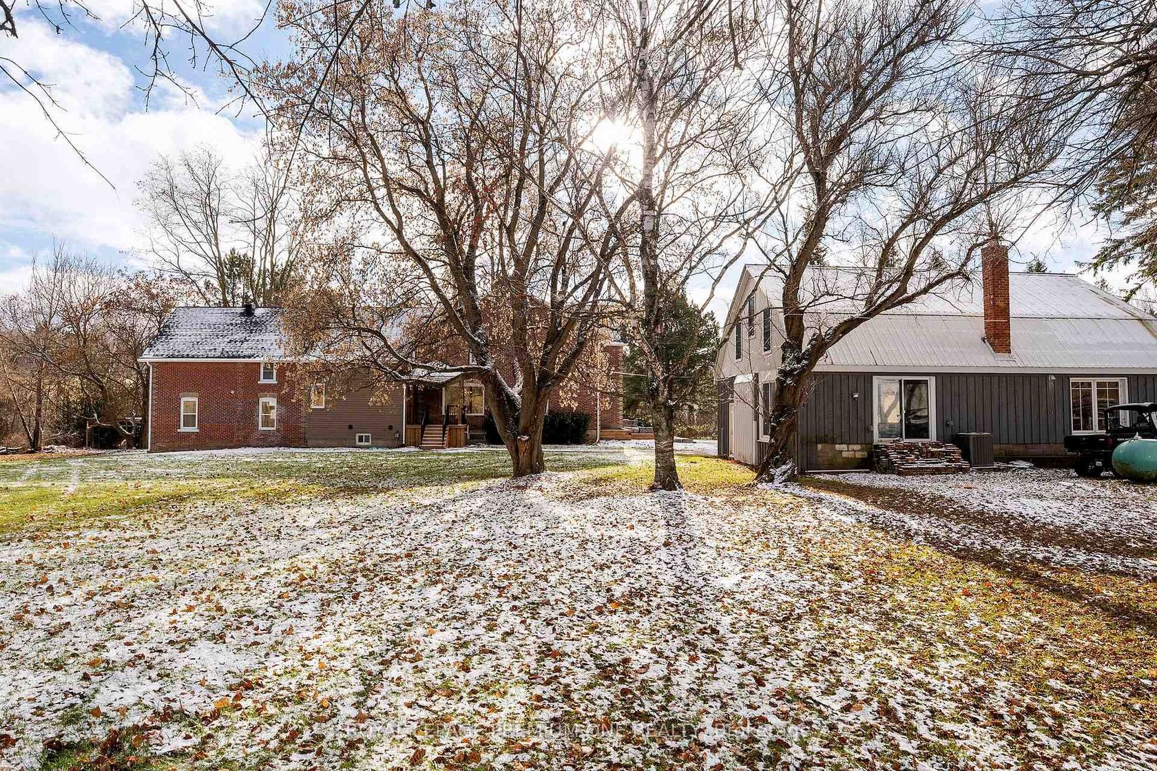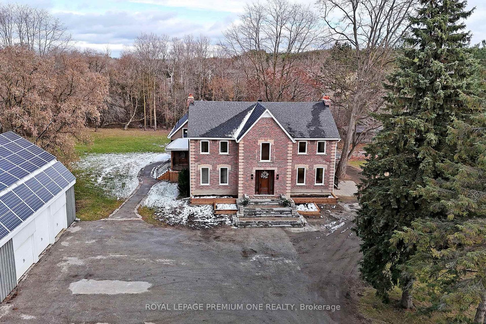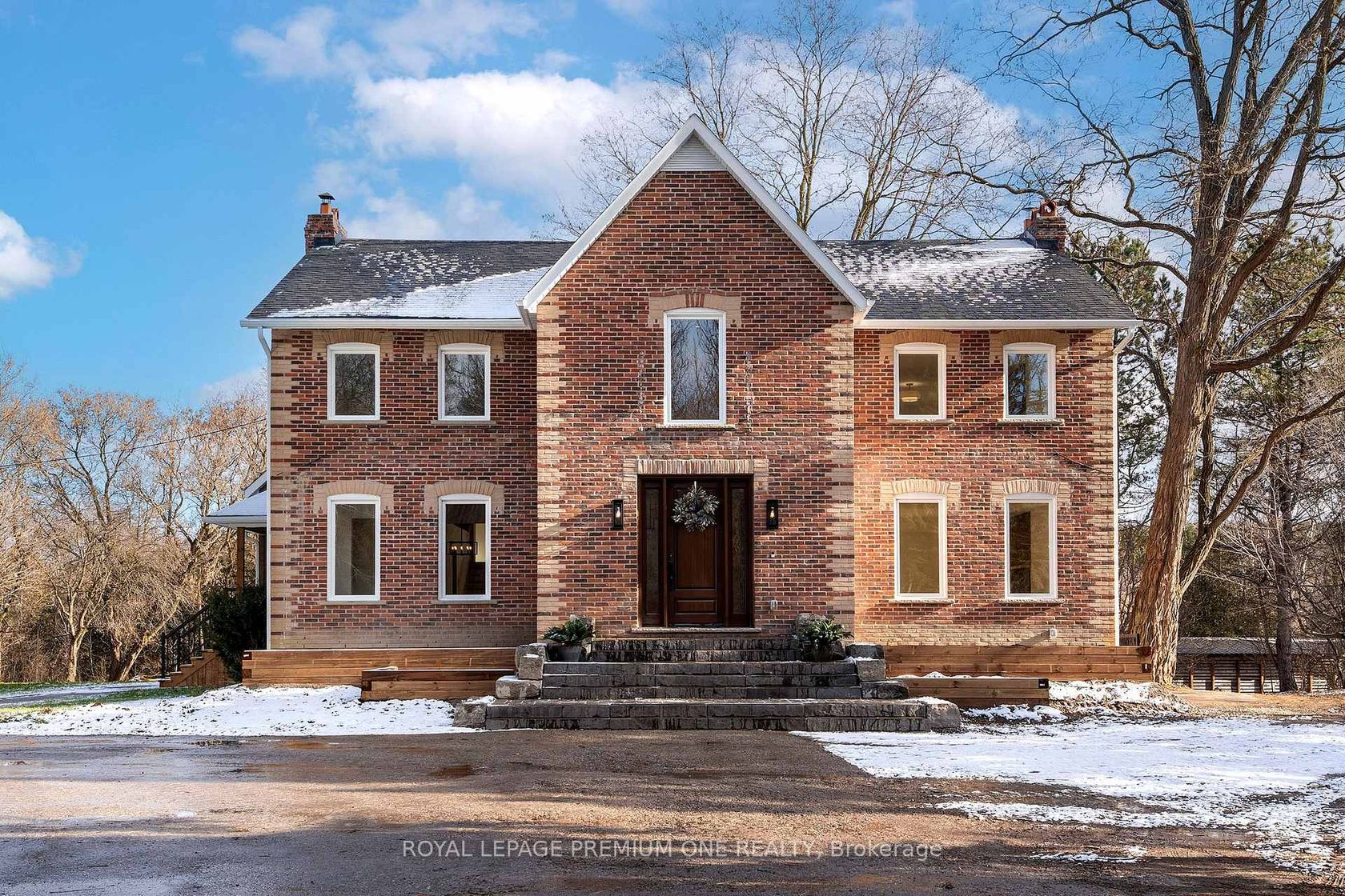 Century farmhouse charm meets modern luxury - enter through a private, winding tree-lined driveway loading to this breathtaking 12-acre property of rolling hills and tranquil ponds, minutes from Highways 400 and 27 in prestigious King Township. Offering over 7,000 sqft of finished living space, this fully renovated home was taken to the studs and rebuilt with exceptional craftsmanship. Soaring ceilings and expansive windows frame picturesque views, while the open-concept layo…ut delivers bright, functional living without compromising comfort. The chef's kitchen showcases premium Thermador appliances, custom cabinetry by Povey Custom Woodworking, and a large island made for gathering. Thoughtfully upgraded throughout with imported European tile, designer finishes, new plumbing, electrical, HVAC, geothermal-ready systems, and solar power income for added efficiency and value. Leathered granite fireplaces, smart lighting, high-end fixtures, and a restored sauna elevate the experience. Outdoors, enjoy a new covered deck and professionally landscaped grounds. A carriage house offers parking for 3+ vehicles with a private 2-bedroom apartment above, complemented by an original 1800s barn. A separate home office with bedroom and ensuite ideal as an in-law or nanny suite includes additional lower-level walkout space. Crafted by award-winning Gatti Brother Renovations, this is more than a renovation it's a legacy home, reimagined. See attached full list of renos and features. A carriage house includes second floor living quarters. Private trails lead to the meandering Schomberg Creek and across a charming bridge to a serene pond - perfect for summer swims or winter hockey games. This is a property for those in search of something truly special.