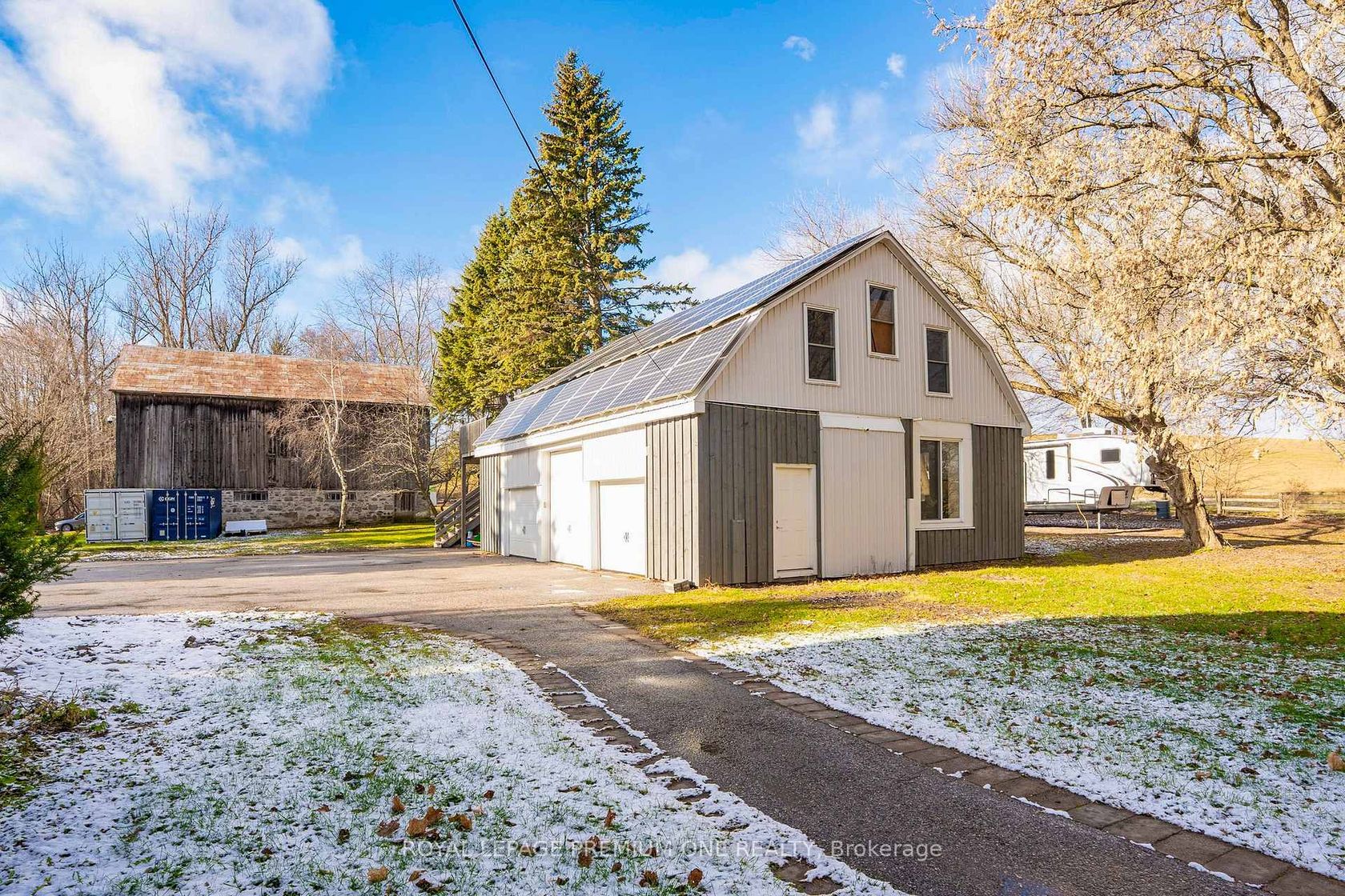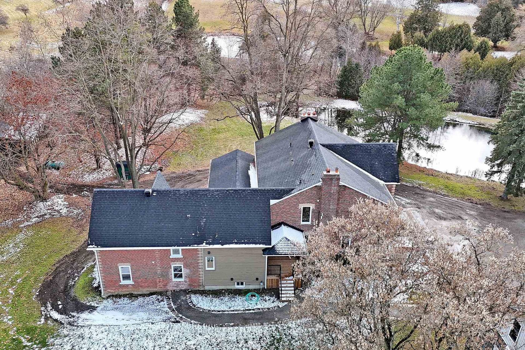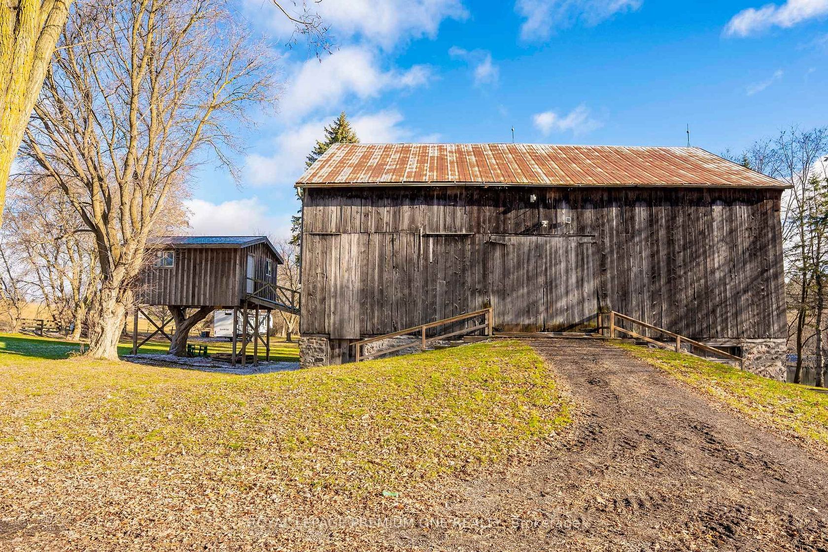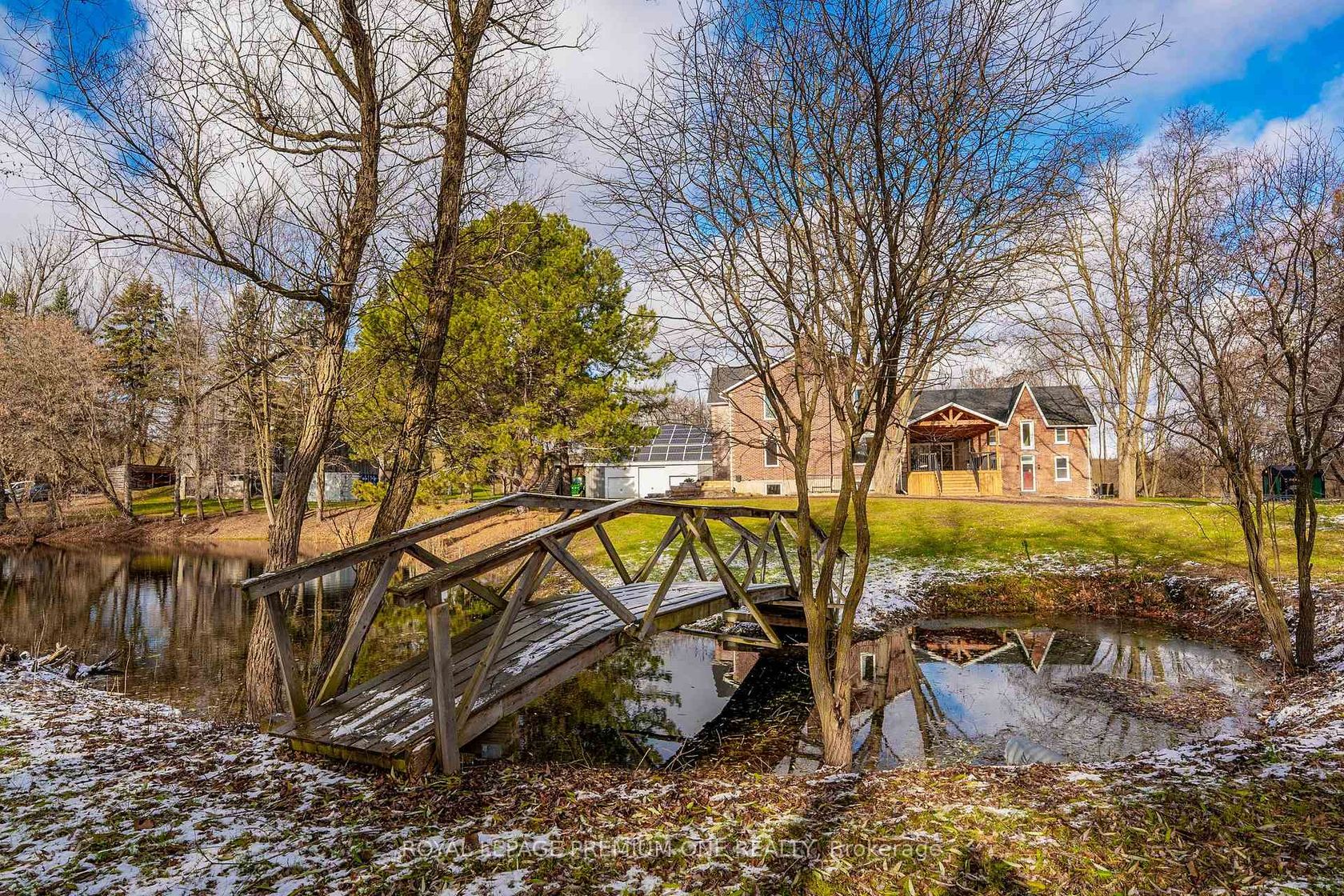Century farmhouse charm meets modern luxury - enter through a private, winding tree-lined driveway loading to this breathtaking 12-acre property of rolling hills and tranquil ponds, minutes from Highways 400 and 27 in prestigious King Township. Offering over 7,000 sqft of finished living space, this fully renovated home was taken to the studs and rebuilt with exceptional craftsmanship. Soaring ceilings and expansive windows frame picturesque views, while the open-concept layo…ut delivers bright, functional living without compromising comfort. The chef's kitchen showcases premium Thermador appliances, custom cabinetry by Povey Custom Woodworking, and a large island made for gathering. Thoughtfully upgraded throughout with imported European tile, designer finishes, new plumbing, electrical, HVAC, geothermal-ready systems, and solar power income for added efficiency and value. Leathered granite fireplaces, smart lighting, high-end fixtures, and a restored sauna elevate the experience. Outdoors, enjoy a new covered deck and professionally landscaped grounds. A carriage house offers parking for 3+ vehicles with a private 2-bedroom apartment above, complemented by an original 1800s barn. A separate home office with bedroom and ensuite ideal as an in-law or nanny suite includes additional lower-level walkout space. Crafted by award-winning Gatti Brother Renovations, this is more than a renovation it's a legacy home, reimagined. See attached full list of renos and features. A carriage house includes second floor living quarters. Private trails lead to the meandering Schomberg Creek and across a charming bridge to a serene pond - perfect for summer swims or winter hockey games. This is a property for those in search of something truly special.