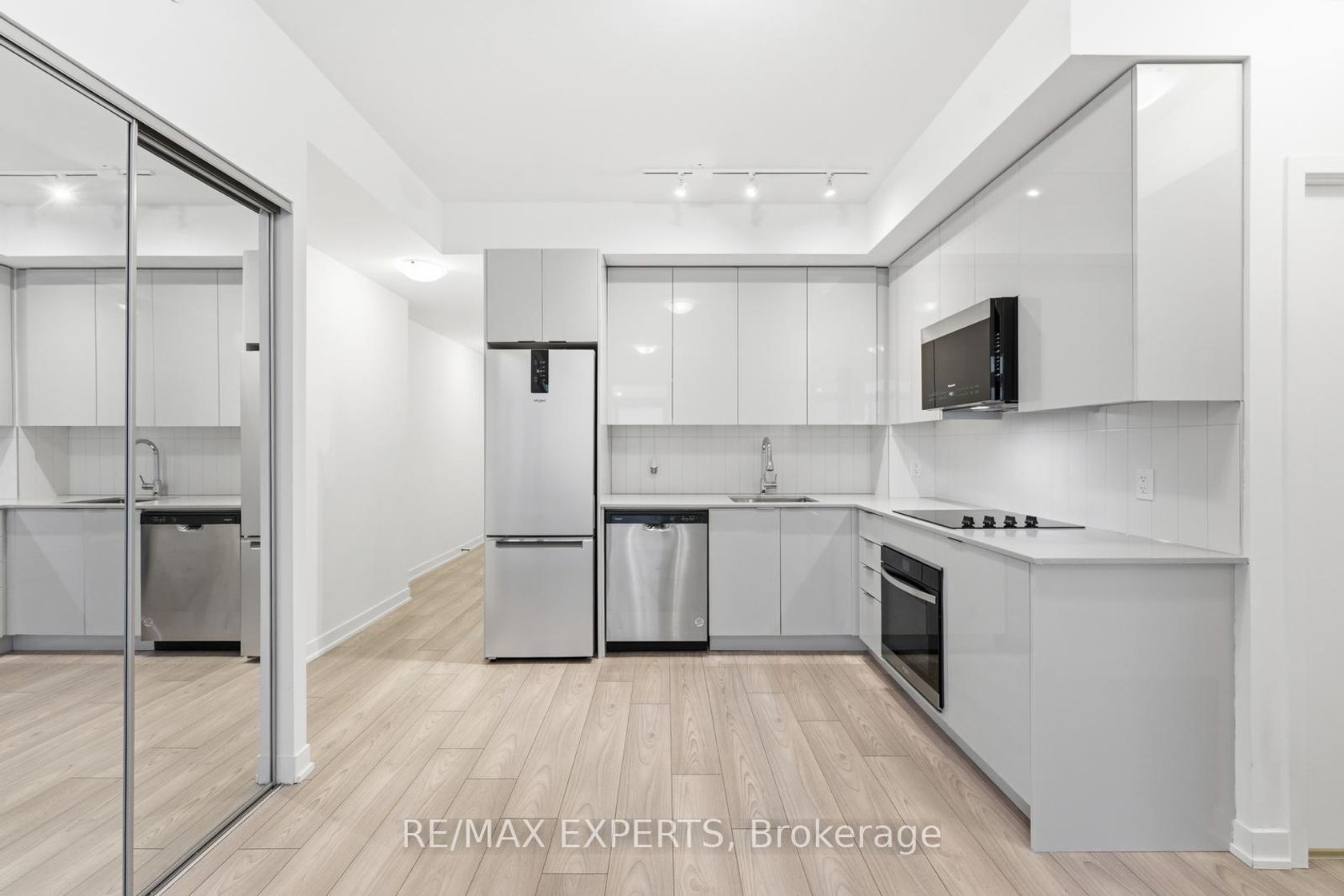 Rarely available! One of the largest 1-bedroom units with a balcony . This bright, West-facing layout offers clear views and large windows that flood the space with natural light. Featuring 575 sq. ft. of interior living space plus a 53 sq. ft. balcony, the unit includes a modern kitchen and a generously sized living area that fits more than just a love seat. An excellent opportunity in a prime location-steps to Vaughan Mills Shopping Centre, the GO Station, and just minutes to the VMC.