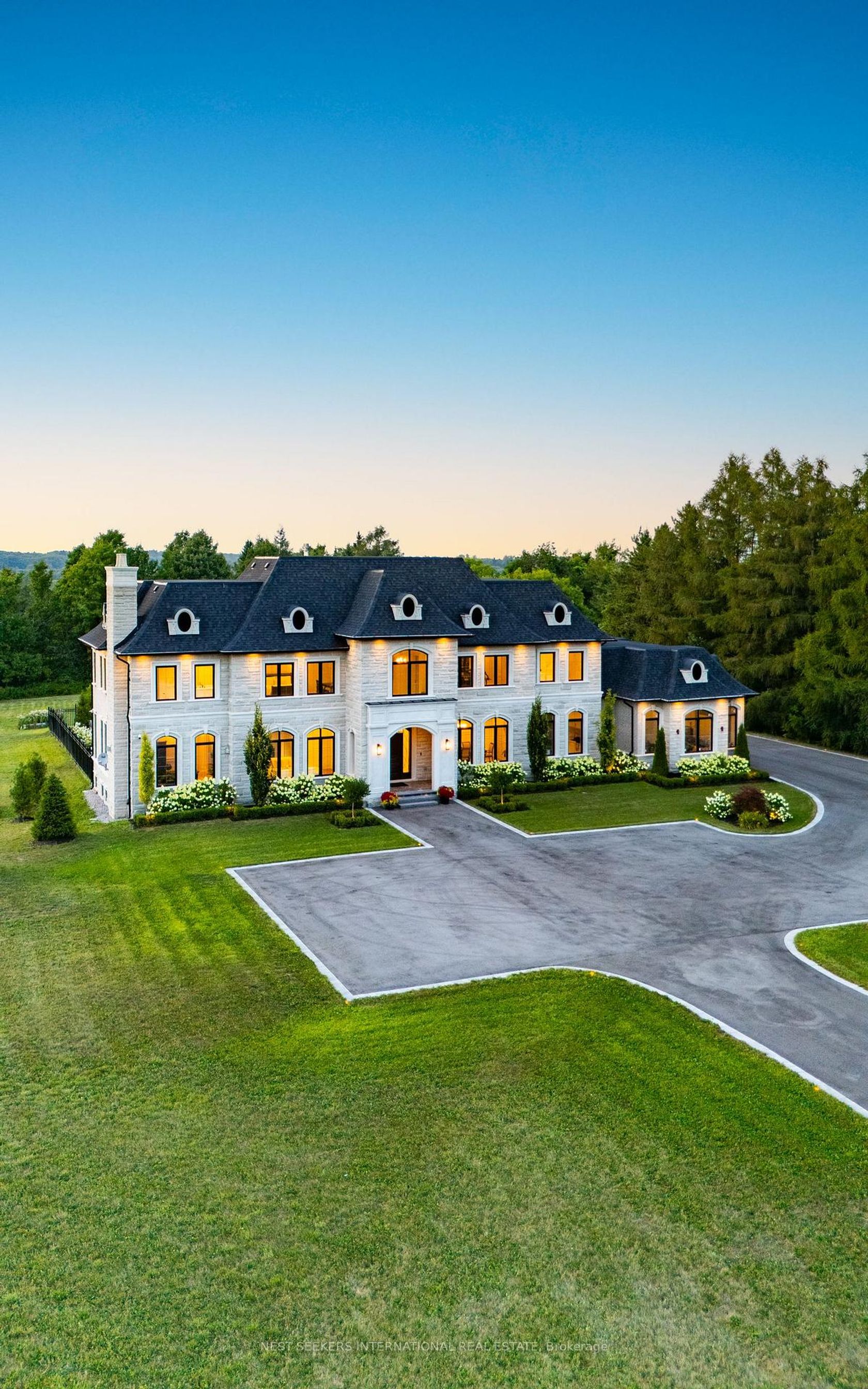 Welcome to one of King Townships most impressive newly built custom estates, offering over9,000 sq. ft. of refined living space on more than 11 pristine, flat, and private acres. Secure gates and a long, winding driveway create an unforgettable first impression, leading to an architectural masterpiece that blends timeless design with modern luxury. The residence showcases five bedrooms, including a main-floor suite ideal for guests or multi-generational living, and the option… for a private nanny suite in the lower level. Eight bathrooms are elegantly finished to evoke a spa-like atmosphere, while an elevator provides seamless access across all levels. Here you'll find a state-of-the-art theatre room, a fully equipped gym, and expansive entertainment spaces designed for both intimate gatherings and large-scale entertaining. At the heart of the home lies a showpiece gourmet kitchen featuring a walk-in pantry, a convenient servery, and top-of-the-line Sub-Zero and Wolf appliances. Custom cabinetry, detailed trim work, extensive mouldings, and coffered ceilings elevate every room with architectural depth and sophistication. Car enthusiasts will appreciate the four-car garage with potential to install lifts for up to eight vehicles. Outdoors, the estate delivers a true resort-inspired lifestyle with a pool, cabana, and sweeping grounds offering ample space for a tennis or multi-sports court. The property's scale and privacy make it equally suited for family living, entertaining, or creating your own private retreat. Every detail has been crafted with elegance, comfort, and functionality in mind, making this estate a rare offering in one of the most sought-after areas of King. Ideally located just minutes from top private schools, prestigious golf clubs, and the finest amenities of King City, this property combines acreage, luxury, and craftsmanship an estate that must be seen to be fully appreciated.
