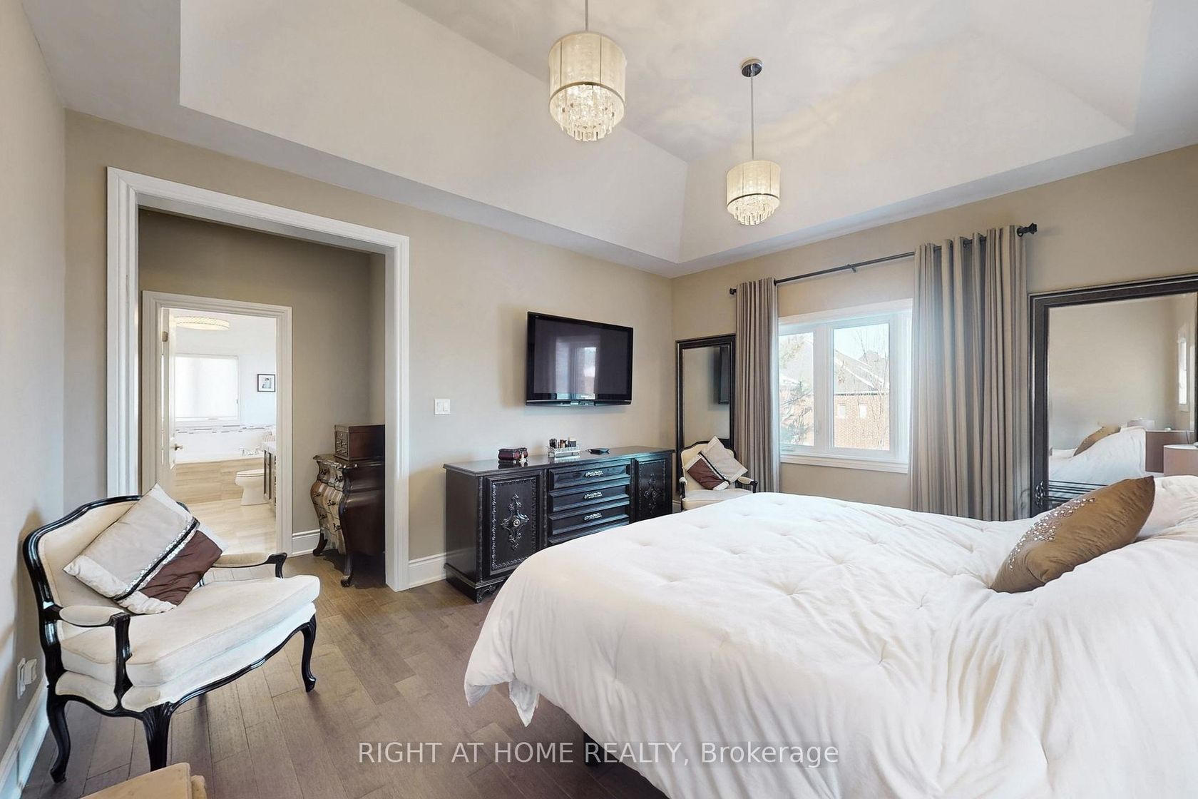 Welcome to an exceptional luxury home located on a quiet crescent in prestigious King City. This beautifully maintained 3-bedroom, 5-bathroom detached two-storey residence offers rare complete privacy with no homes directly in front or behind and a south-facing exposure that fills the home with natural light.Featuring large windows, hardwood flooring throughout, crown moulding, and a carpet-free interior, the home showcases quality craftsmanship and thoughtful customization a…t every turn. The main level offers a spacious formal dining room and a bright eat-in kitchen with high-end stainless steel appliances.The upper level features a primary retreat with a large walk-in closet and private ensuite, while each additional bedroom has its own ensuite bathroom, offering exceptional comfort with no shared bathrooms.The professionally finished basement includes custom kitchen cabinetry, a full stainless steel appliance package, and a wine fridge, ideal for entertaining or extended living. Additional highlights include custom-built storage, electric fireplaces, and an integrated home entertainment system with in-wall speakers throughout.Step outside to a private, professionally landscaped backyard surrounded by mature trees and lush greenery. Enjoy elegant stonework, a custom brick shed, and a charming backyard swing, creating a peaceful outdoor retreat. Added features include wrought iron pickets, exterior security cameras, and meticulous attention to detail throughout.A rare opportunity to own a move-in-ready luxury home in one of King City's most desirable neighbourhoods.