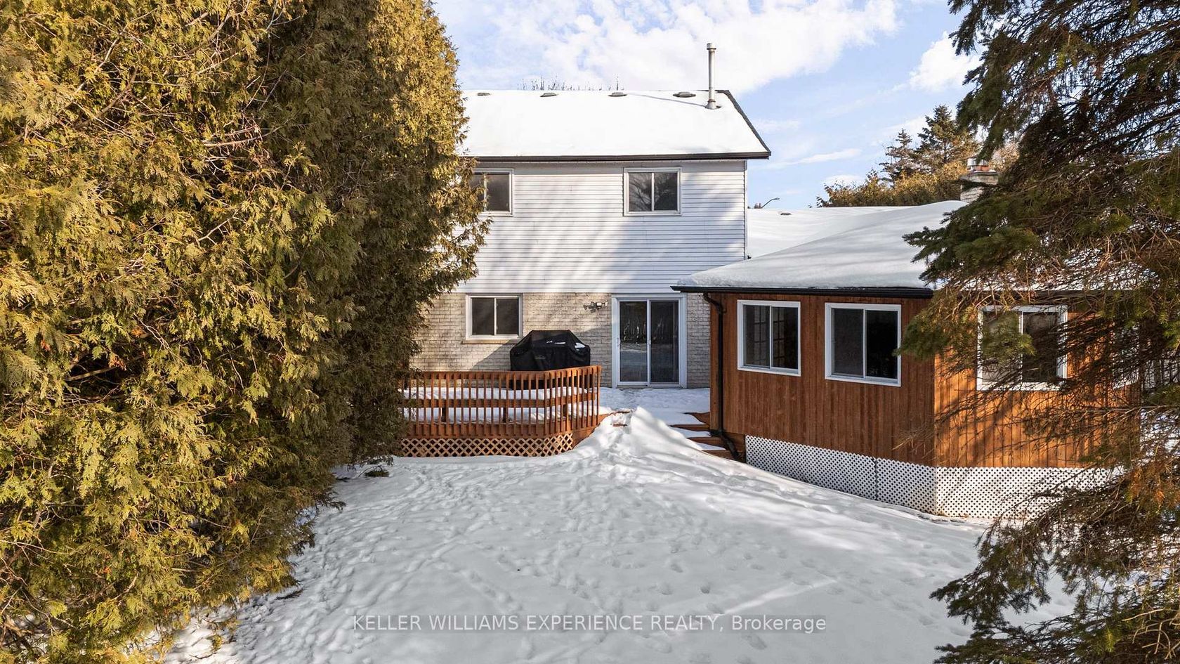Prime location. Private Backyard. Endless Possibilities. This delightful two-storey home features a charming brick and vinyl exterior with a covered front porch, perfect for warm welcomes and quiet morning coffees. Inside, the spacious kitchen, dedicated dining area, and large living room flow seamlessly into the hot tub room, while a front office and main-level bathroom provide ideal space for remote work or hosting guests. The upper level offers four generously sized bedroo…ms, including a private primary suite with a walk-in closet and ensuite, creating a peaceful personal retreat. The fully fenced backyard includes a large deck ideal for outdoor dining, direct access to the three-season room, and generous greenspace surrounded by mature trees. Located in a friendly, vibrant community with convenient access to schools, parks, shopping, dining, and major highways - and enriched by beloved local events such as the Steam Show, Music Festival, and Wing Ding - this home delivers exceptional lifestyle appeal. Offering 2,447 square feet plus an unfinished basement, this well-maintained 36-year-old home blends comfort, space, and community in one inviting package.