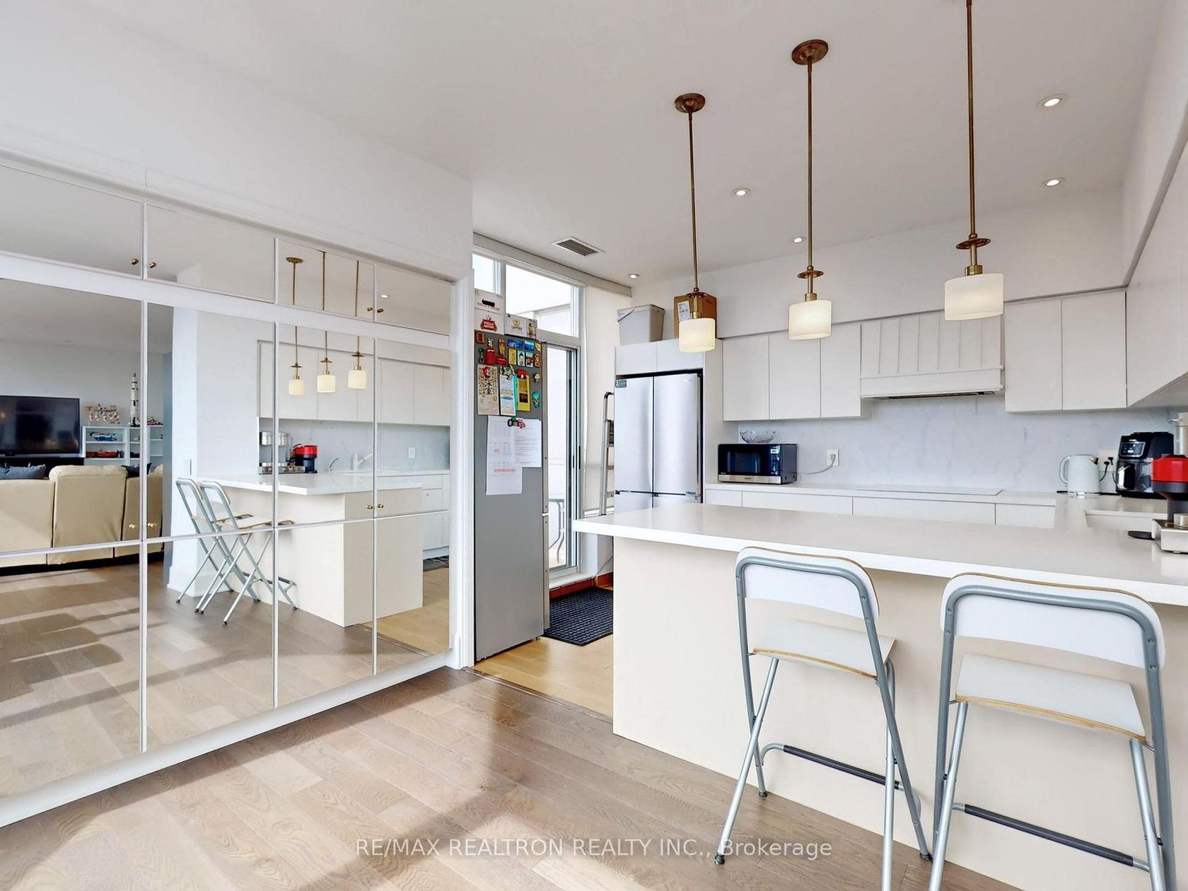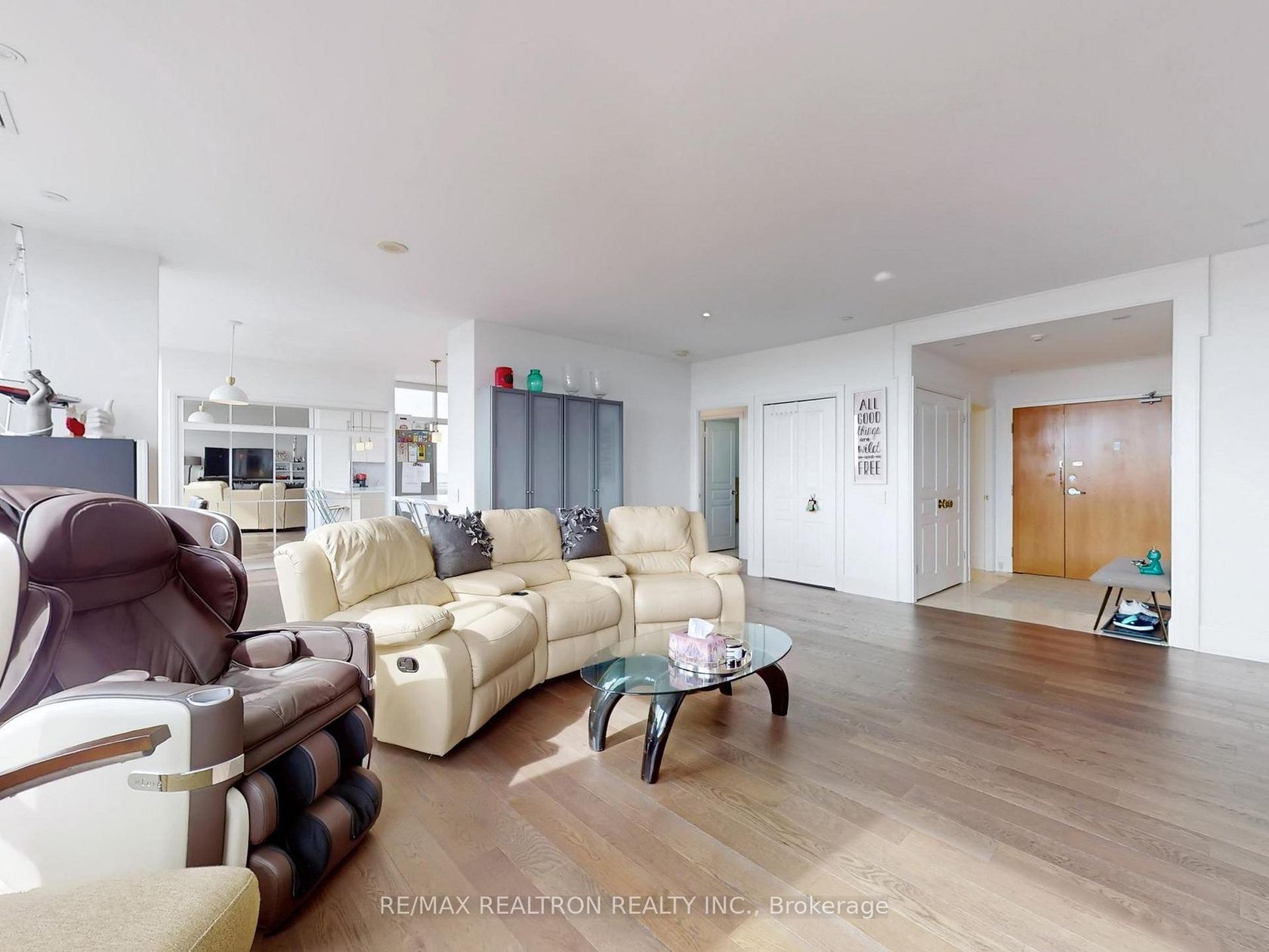 Welcome to an exceptional residence in the highly sought-after 24-hour gated community at Grand Parkway Residences. This quiet and spacious suite offers a reimagined layout, thoughtfully converted from the original 3-bedroom floor plan into an expansive 2-bedroom design, creating an impressive open living and dining space ideal for entertaining with an updated kitchen with breakfast area and a walk-out to balcony and the rare benefit of no upstairs neighbour noise, providing added comfort and privacy. This unique unit also features a secondary private entrance, a seldom-found convenience in condominium living. Residents enjoy exclusive complimentary membership to the Sheraton Parkway Hotel Fitness & Racquet Club, offering premium fitness, swimming, and racquet facilities. For electric vehicle owners, a free public EV charger provided by the City of Richmond Hill is just a one-minute walk away. Impressive grand foyer entry complete with a powder room for guests and new flooring that elevates the space with a contemporary look. Large picture windows and the 9' smooth ceilings through out fill the home with abundant natural light creating a bright and airy living space, A truly inviting unit that you'll be proud to call home.