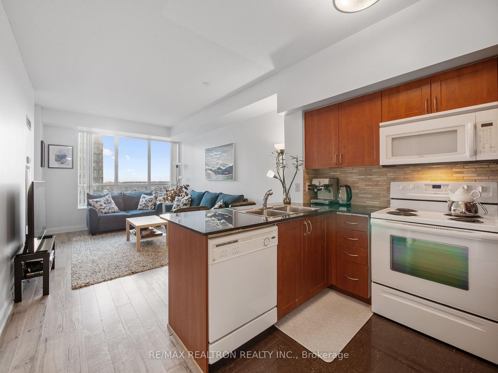 Welcome to Centre Park Condos - this bright and stylish 11th-floor suite checks all the right boxes. This beautifully designed 1-bedroom + den,2-bath unit comes with parking and a spacious den that easily works as a second bedroom, home office, or flex space. The kitchen is both sleek and functional, featuring extended cabinetry, granite countertops, and a large breakfast bar, all opening into a sun-filled living area that feels warm and inviting. You'll also appreciate the convenience of a full-size washer and dryer. The building offers fantastic amenities, including 24/7 security, an indoor pool, sauna, fitness centre, party room, rooftop deck, guest suites, and more. Location-wise, it's hard to beat - walk to Promenade Mall, Walmart, the VIVA Transit Terminal, and countless shops, with parks, schools, and Highway 407 just minutes away. Condo living made easy in a location that truly delivers.