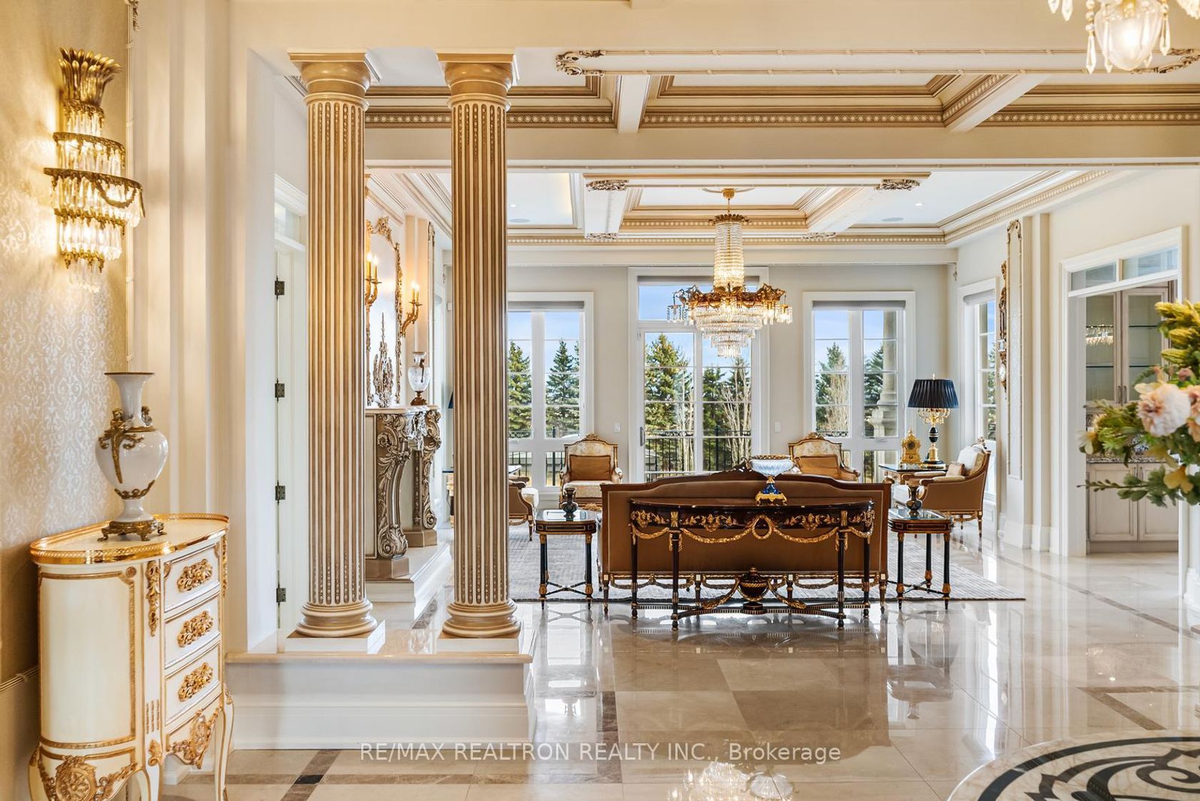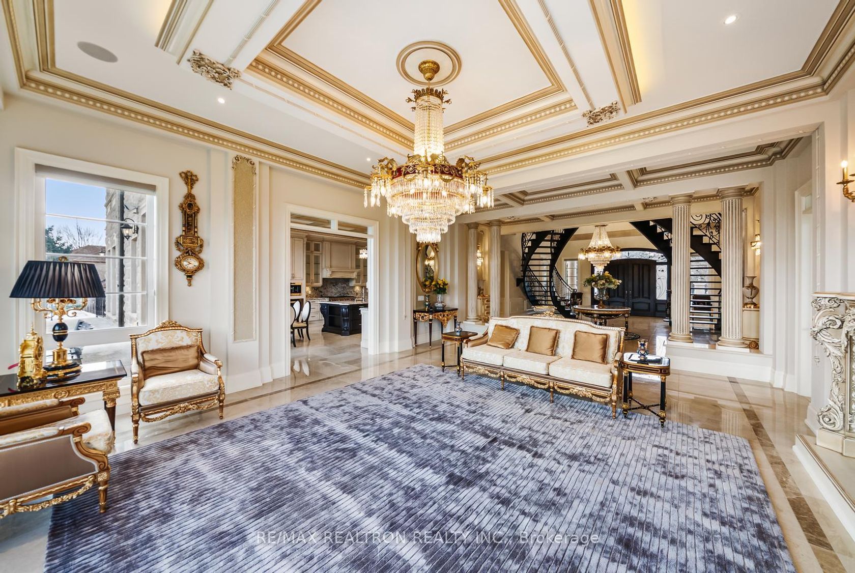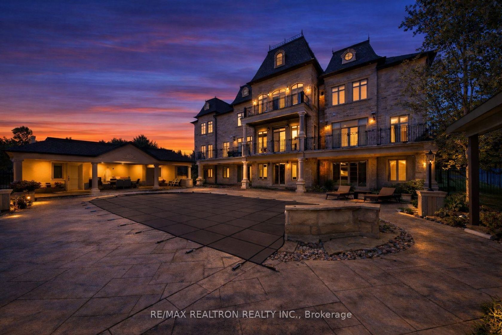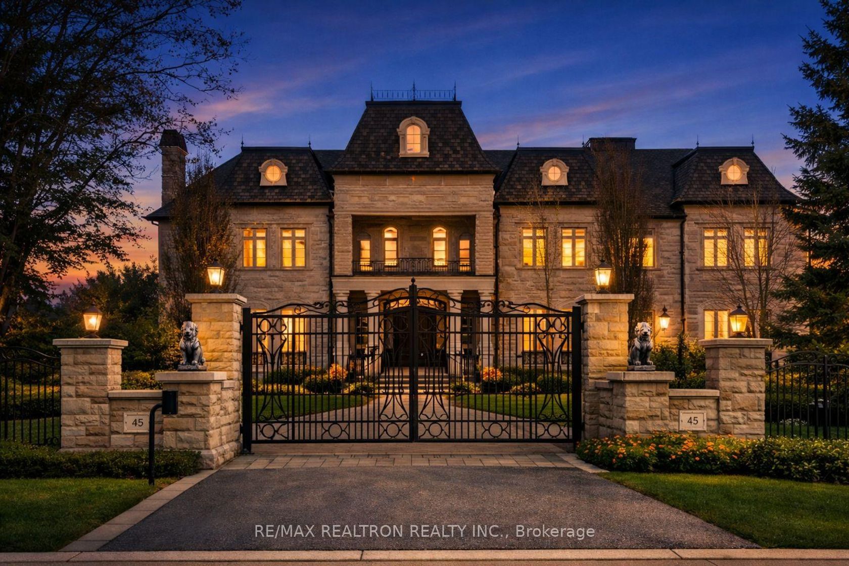 An extraordinary French Château-inspired estate, set on a prestigious 1.5-acre south-facing lot with breathtaking panoramic views of the CN Tower. Privately gated and surrounded by impeccably manicured grounds, this remarkable residence blends timeless European elegance with modern luxury living. Offering approximately 15,000 sq ft of total living space, the home showcases a striking natural stone exterior and a meticulously designed interior with exceptional craftsmanship t…hroughout. A dramatic 25-ft grand foyer with a sweeping double staircase and designer railings creates a stunning first impression, while soaring ceilings-including 11'8" on the main level-enhance the sense of space and grandeur. Thoughtfully designed for both entertaining and everyday comfort, the home features 5+2 bedrooms and 11 luxurious bathrooms with heated ensuites. The gourmet chef's kitchen is complemented by a separate catering kitchen and oversized pantry, seamlessly connecting to elegant principal rooms and a sun-filled family room overlooking a private courtyard terrace. The upper level continues the home's refined elegance, highlighted by architectural ceilings and a spectacular primary suite with a spacious lounge area and spa-inspired ensuite. A private elevator provides convenient access to all levels. The fully finished lower level offers an exceptional lifestyle experience with a home theatre, gym, and an exquisite wine tasting room with custom cellar. Outdoors, enjoy a resort-style setting complete with a pool, waterfall, cabana, and outdoor kitchen-perfect for entertaining or relaxing in total privacy. A rare and prestigious offering that defines luxury château living at its finest.