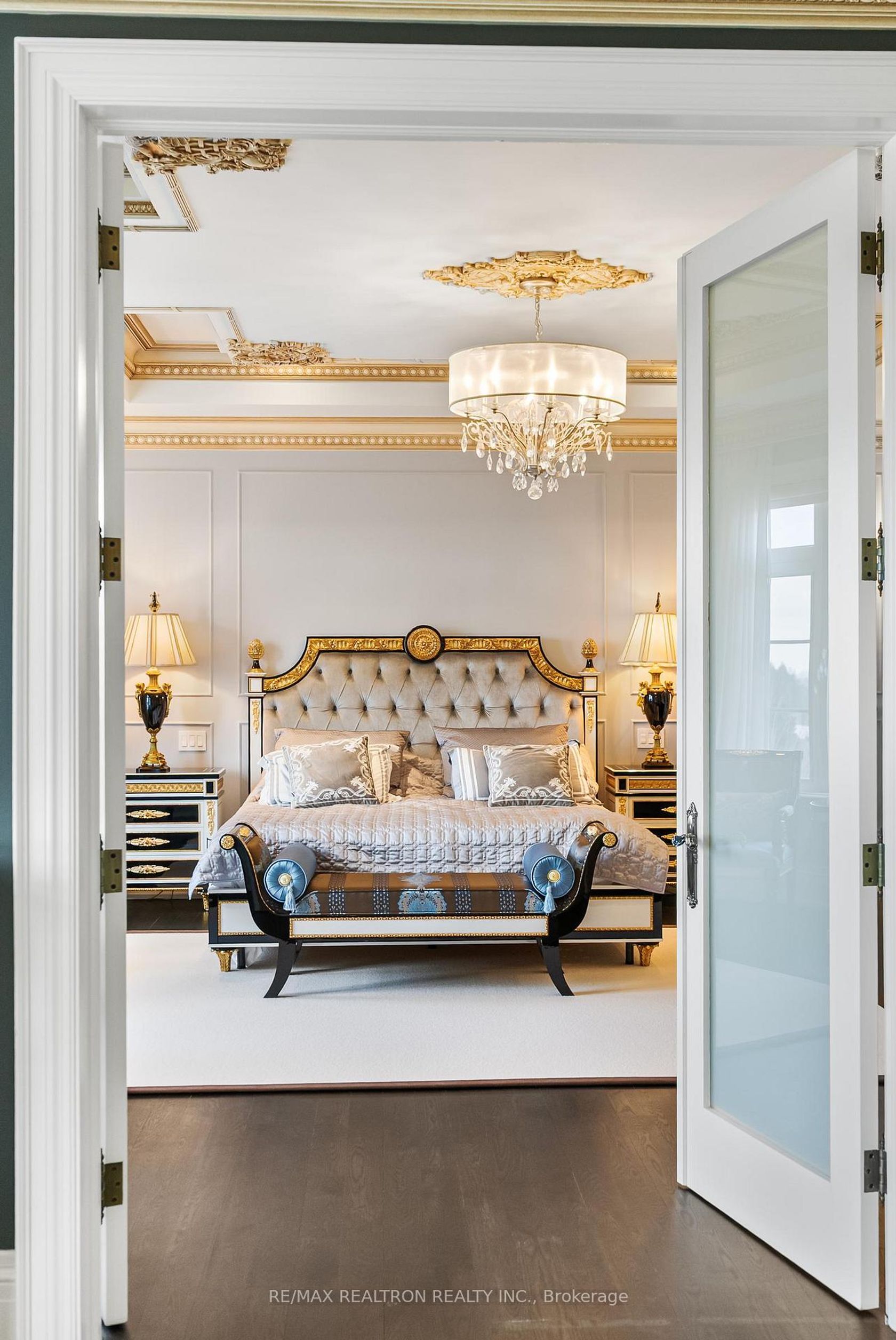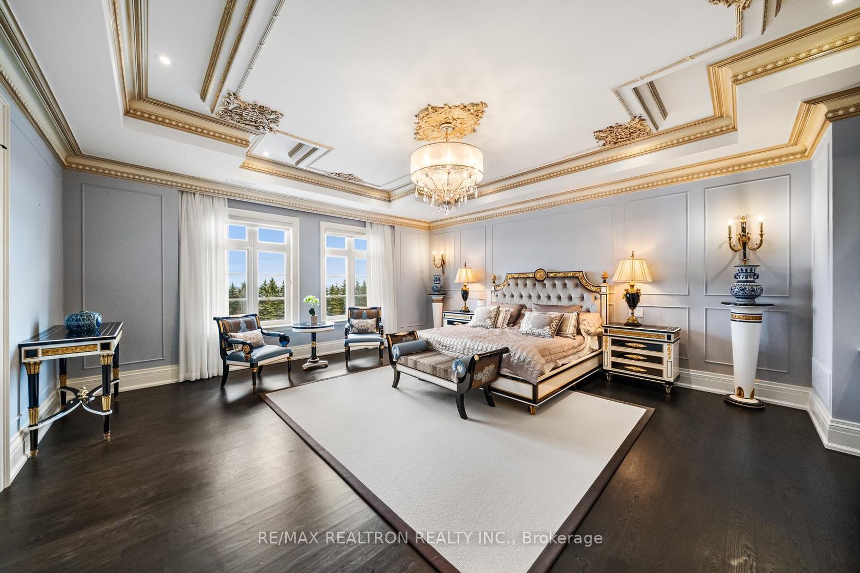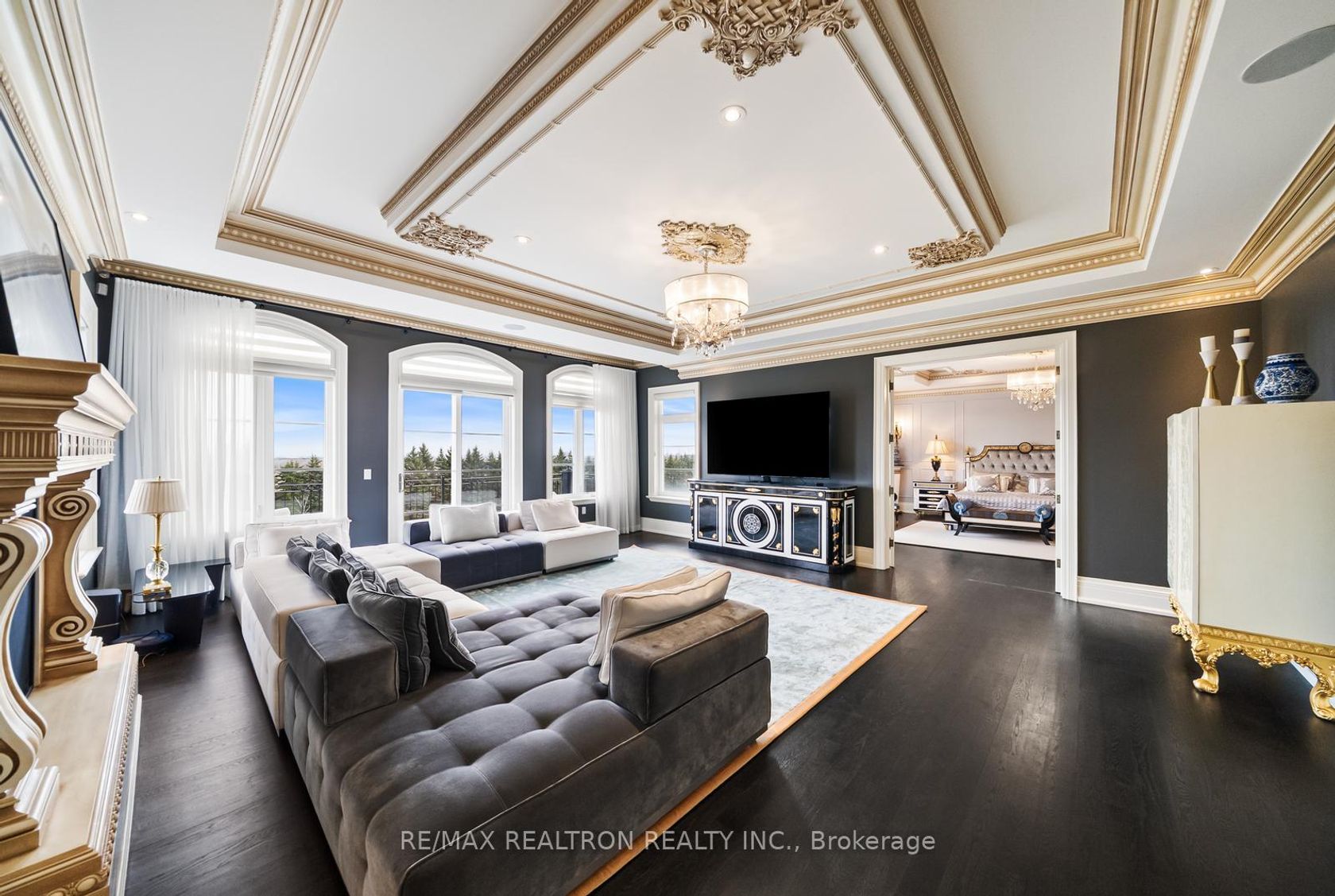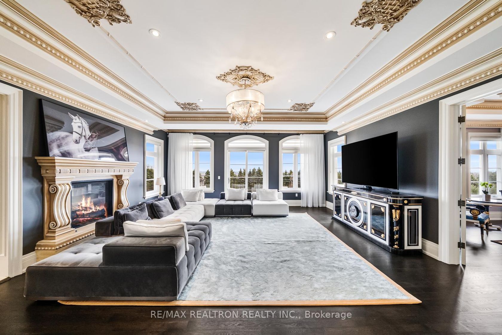 An extraordinary French Château-inspired estate, set on a prestigious 1.5-acre south-facing lot with breathtaking panoramic views of the CN Tower. Privately gated and surrounded by impeccably manicured grounds, this remarkable residence blends timeless European elegance with modern luxury living. Offering approximately 15,000 sq ft of total living space, the home showcases a striking natural stone exterior and a meticulously designed interior with exceptional craftsmanship t…hroughout. A dramatic 25-ft grand foyer with a sweeping double staircase and designer railings creates a stunning first impression, while soaring ceilings-including 11'8" on the main level-enhance the sense of space and grandeur. Thoughtfully designed for both entertaining and everyday comfort, the home features 5+2 bedrooms and 11 luxurious bathrooms with heated ensuites. The gourmet chef's kitchen is complemented by a separate catering kitchen and oversized pantry, seamlessly connecting to elegant principal rooms and a sun-filled family room overlooking a private courtyard terrace. The upper level continues the home's refined elegance, highlighted by architectural ceilings and a spectacular primary suite with a spacious lounge area and spa-inspired ensuite. A private elevator provides convenient access to all levels. The fully finished lower level offers an exceptional lifestyle experience with a home theatre, gym, and an exquisite wine tasting room with custom cellar. Outdoors, enjoy a resort-style setting complete with a pool, waterfall, cabana, and outdoor kitchen-perfect for entertaining or relaxing in total privacy. A rare and prestigious offering that defines luxury château living at its finest.