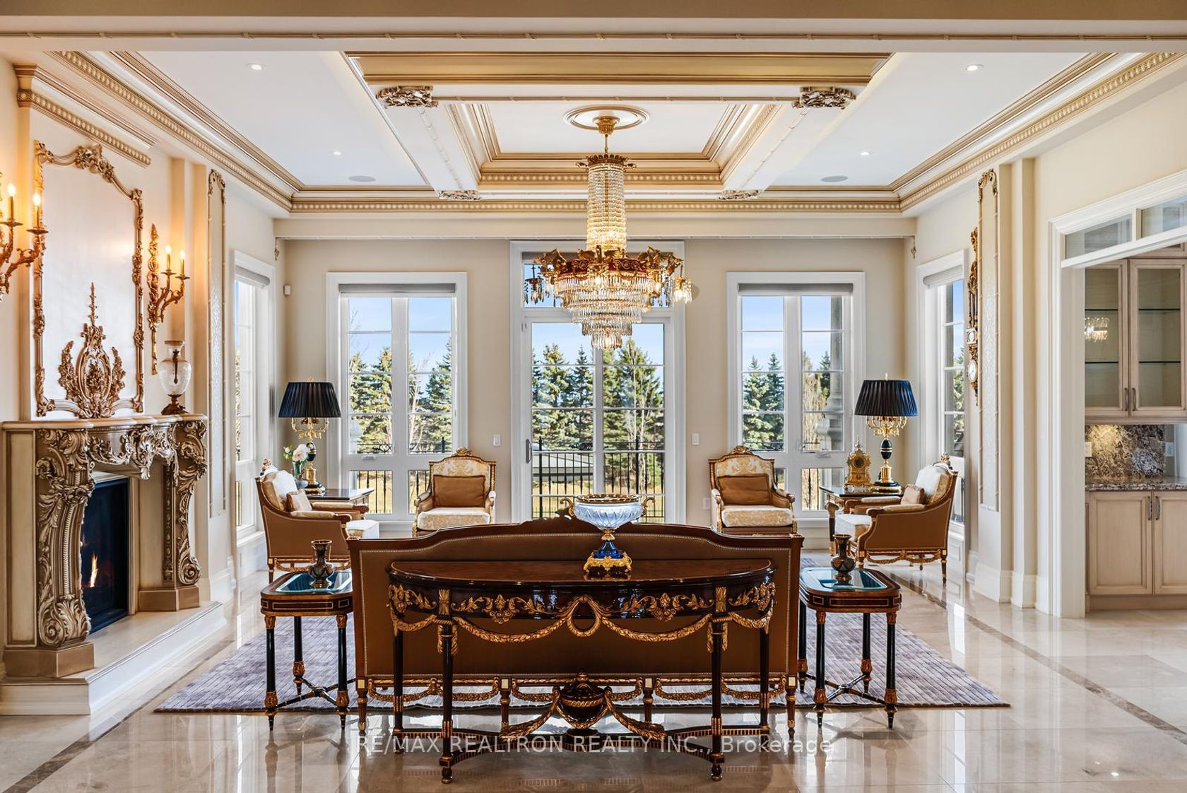 An extraordinary French Château-inspired estate, set on a prestigious 1.5-acre south-facing lot with breathtaking panoramic views of the CN Tower. Privately gated and surrounded by impeccably manicured grounds, this remarkable residence blends timeless European elegance with modern luxury living. Offering approximately 15,000 sq ft of total living space, the home showcases a striking natural stone exterior and a meticulously designed interior with exceptional craftsmanship throughout. A dramatic 25-ft grand foyer with a sweeping double staircase and designer railings creates a stunning first impression, while soaring ceilings-including 11'8" on the main level-enhance the sense of space and grandeur. Thoughtfully designed for both entertaining and everyday comfort, the home features 5+2 bedrooms and 11 luxurious bathrooms with heated ensuites. The gourmet chef's kitchen is complemented by a separate catering kitchen and oversized pantry, seamlessly connecting to elegant principal rooms and a sun-filled family room overlooking a private courtyard terrace. The upper level continues the home's refined elegance, highlighted by architectural ceilings and a spectacular primary suite with a spacious lounge area and spa-inspired ensuite. A private elevator provides convenient access to all levels. The fully finished lower level offers an exceptional lifestyle experience with a home theatre, gym, and an exquisite wine tasting room with custom cellar. Outdoors, enjoy a resort-style setting complete with a pool, waterfall, cabana, and outdoor kitchen-perfect for entertaining or relaxing in total privacy. A rare and prestigious offering that defines luxury château living at its finest.