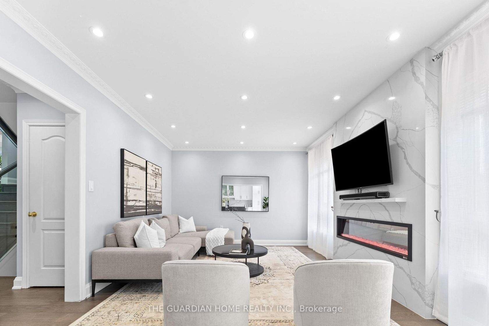 Extensively renovated in 2021 with over $110,000 in upgrades. Features include new hardwood flooring throughout, modern glass railings, fully renovated bathrooms, and a custom fireplace with quartz surround and feature wall. The kitchen has been completely updated, and pot lights have been installed throughout the home, including the garage. Additional upgrades include a garage epoxy finish and conversion from electric to gas stove.