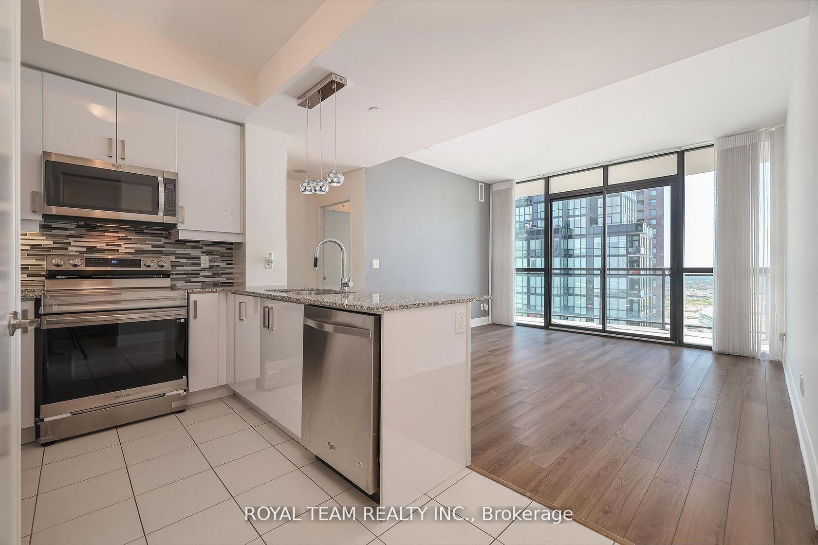 Excellent Location! Sun-Filled High-Floor 1 Bedroom + Den 2 Bathroom Condo in Coveted Expo City! Welcome to this stunning, well-maintained unit in the highly coveted Expo City, located in the vibrant Vaughan Metropolitan Centre! This spacious, open-concept condo features floor-to-ceiling west-facing windows, a large balcony, and 9-foot smooth ceilings that fill the space with natural light and create a bright, airy atmosphere. The freshly painted suite is move-in ready and bo…asts several modern upgrades including a sleek white glossy kitchen with under-cabinet lighting, granite tile flooring at the entrance, and matching cabinet doors. Additional features include remote-controlled tulle blinds, a brand-new electric stove, and a 2024 refrigerator. The generous-sized bedroom includes a four-piece ensuite bathroom, and the separate den offers the perfect space for a home office or guest area. Residents of Expo City enjoy access to an impressive array of amenities. These include an indoor swimming pool, sauna, and steam showers, as well as change rooms and a fully equipped fitness centre with a yoga and pilates studio. The building also offers a media room, games and multi-purpose rooms, a party room with a full kitchen, a furnished guest suite, and a rooftop terrace with BBQ facilities. Additional conveniences include 24-hour concierge service, high-speed elevators, secure indoor and visitor parking, and pet-friendly, fully accessible common areas. Locker facilities and a tri-sort recycling system are also available. Ideally located near major highways including Highway 400 and 407, this condo is just steps from the Vaughan Metropolitan Centre TTC subway station and Viva rapidway. It is also close to York University, shopping, dining, entertainment, and all essential amenities, making it the perfect combination of luxury living and unbeatable convenience!