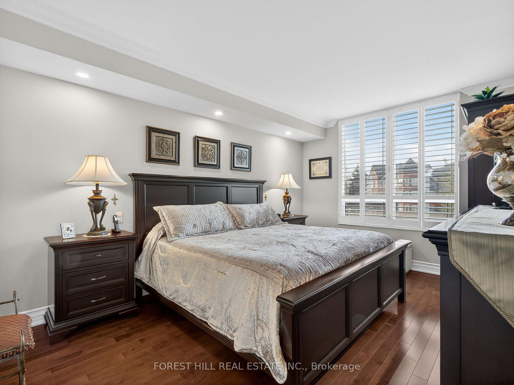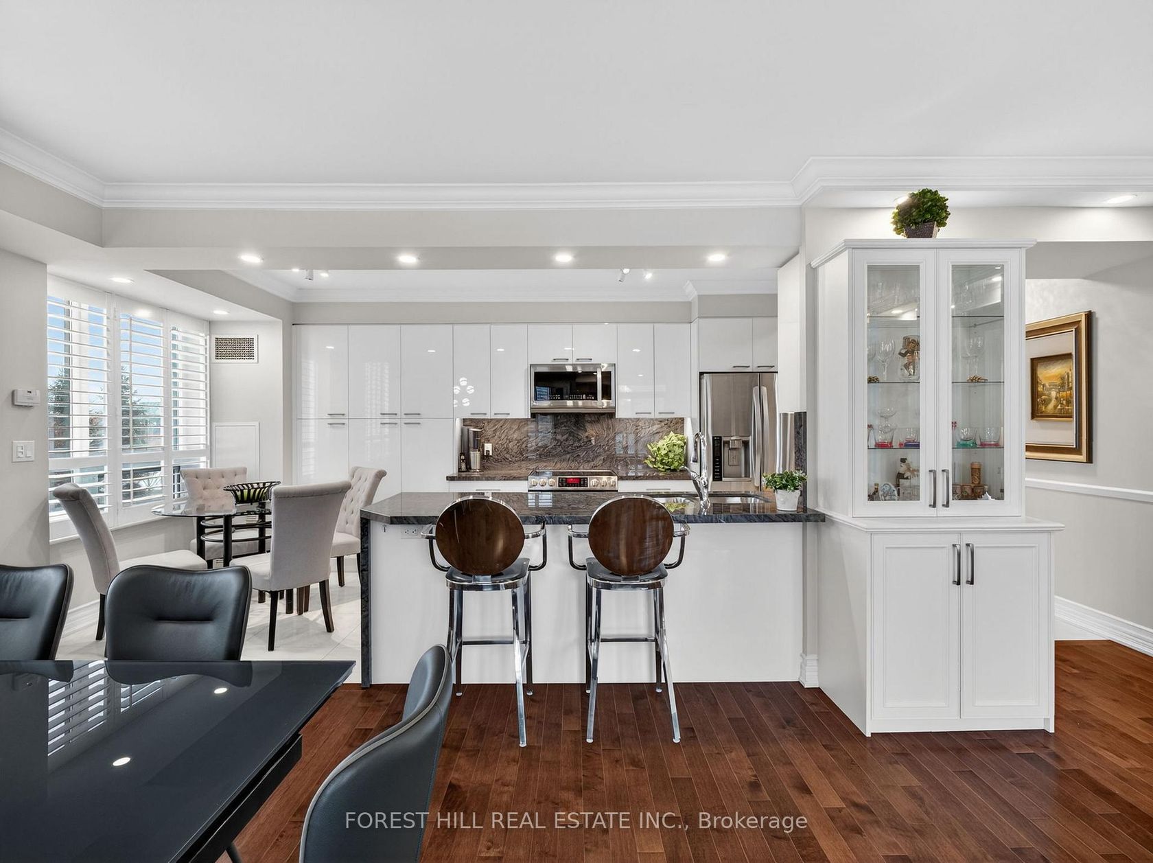 Welcome to this thoughtfully renovated 1,300 sq. ft. corner suite offering the perfect blend of style, space, and functionality. This bright 2-bedroom + office (easily a 3rd bedroom), 2-bathroom split-bedroom layout is flooded with natural light and features a private balcony for relaxing and entertaining. Step inside to beautiful hardwood floors and a stunning, custom-designed chef's kitchen complete with stainless steel appliances, granite countertops that seamlessly flow i…nto the backsplash and waterfall edge, 24" porcelain tile, deep pantry, breakfast bar, and sleek pot lighting. The open-concept design connects effortlessly to the breakfast area and dining space, highlighted by elegant built-in cabinetry, crown moulding, pots lights and additional custom storage throughout the home. The spacious primary bedroom easily accommodates a king-size bed with room to spare, featuring two closets, including a walk-in. The luxurious ensuite offers double sinks and a large glass-enclosed walk-in shower. The second bedroom is thoughtfully designed with 2 Twin Murphy beds and wall-to-wall built-ins, maximizing both comfort and versatility. This redesigned suite also includes a dedicated laundry space with full size laundry tub, central vacuum system, and exceptional attention to detail throughout.Perfectly suited for those downsizing from a house, starting a family, or just seeking space and comfort, this exceptional suite offers both practicality and elegance. Enjoy unbeatable amenities including an indoor pool, hot tub & sauna, exercise, media and movie theatre rooms. All convenience just steps away including Promenade Mall, transit, restaurants, cafes, grocery stores, medical services & Walmart, Pickleplex, Bowling, library. For your added value, the maintenance fees include internet and cable. A truly exceptional home offering comfort, craftsmanship, and location-perfect for modern living.