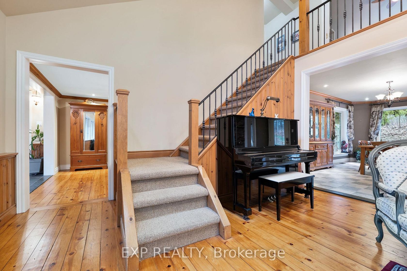 The Painters Hollow: A Mid-Century Masterpiece in the Heart of King Nestled on a prestigious cul-de-sac within the rolling hills of King City, this one of a kind 4 bedroom estate offers a rare blend of Canadian artistic legacy & sophisticated luxury. Originally the sanctuary of Painters Eleven founder Oscar Cahén, this hidden oasis provides a tranquil lifestyle surrounded by mature forests, 30 minutes from the city. This sprawling 5 acre rural estate with 250+ foot frontage offers unparalleled privacy and a true retreat experience. Inside, 4,456 square feet of finished living space is bathed in natural light, featuring a spectacular great room18 foot vaulted ceilings, a massive stone fireplace, & a premium Valor gas insert. Meticulously updated, the home features spray foam insulation, lifetime warranty aluminum roof, & high efficient mechanicals 2022 furnace & 2020 A/C. Designed for multi-generational living, the layout boasts a primary main-floor wing serving as a private sanctuary with a walk-in closet, 4-pc ensuite with standalone tub, & a private living area with its own fireplace. Step out to a screened-in Muskoka room with western exposure, complete with a hot tub rough-in, to enjoy serene sunsets. The main level also features a dedicated office/studio, formal dining, a sunroom with a wood-burning stove, 10 W/Os leading to enchanting forest paths. The finished walk-out basement, double garage, & separate studio offer the perfect footprint for professional home offices. Modern comforts include a tankless water heater, UV filtration, & whole-home softener. Situated among multi-million dollar custom homes in an elite York Region enclave, this property is mins from Villanova College, Country Day School, & the King City GO Station. An extraordinary opportunity to own a piece of Canadian history on a premier lot, ready to complement your next chapter in one of the GTA's most desirable communities.