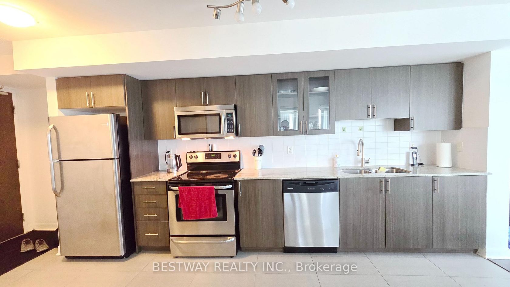 Bright, Move-In Ready Condo In The Heart Of Richmond Hill! This Desirable Diamond-Shaped Layout Is Filled With Natural Light Thanks To Its Sun-Drenched East/Southeast Exposure. The Open-Concept Living Area Flows Into A Practical Kitchen Equipped With Quality Stainless Steel Appliances, Making It Perfect For Everyday Living And Entertaining. The Spacious Bedroom Offers A Comfortable Retreat, Featuring A Walk-Through Closet And Convenient Direct Access To A Semi-Ensuite Bathroom. The Bathroom Itself Has Been Upgraded With A Sleek Standing Shower, Replacing The Traditional Bathtub For A More Modern Feel. Residents Enjoy Access To Premium Building Amenities Including An Indoor Pool, Fitness Centre, Sauna, Party Room, And Underground Parking With EV Charging. Step Outside To A Highly Walkable Neighbourhood With Shops, Cafes, And Restaurants Just Moments Away, Along With Easy Access To Hwy 404, Hwy 7, And Public Transit For Seamless Commuting. An Excellent Low-Maintenance Opportunity For Professionals, First-Time Buyers, Or Investors. Tenant Can Move Out Any Time.