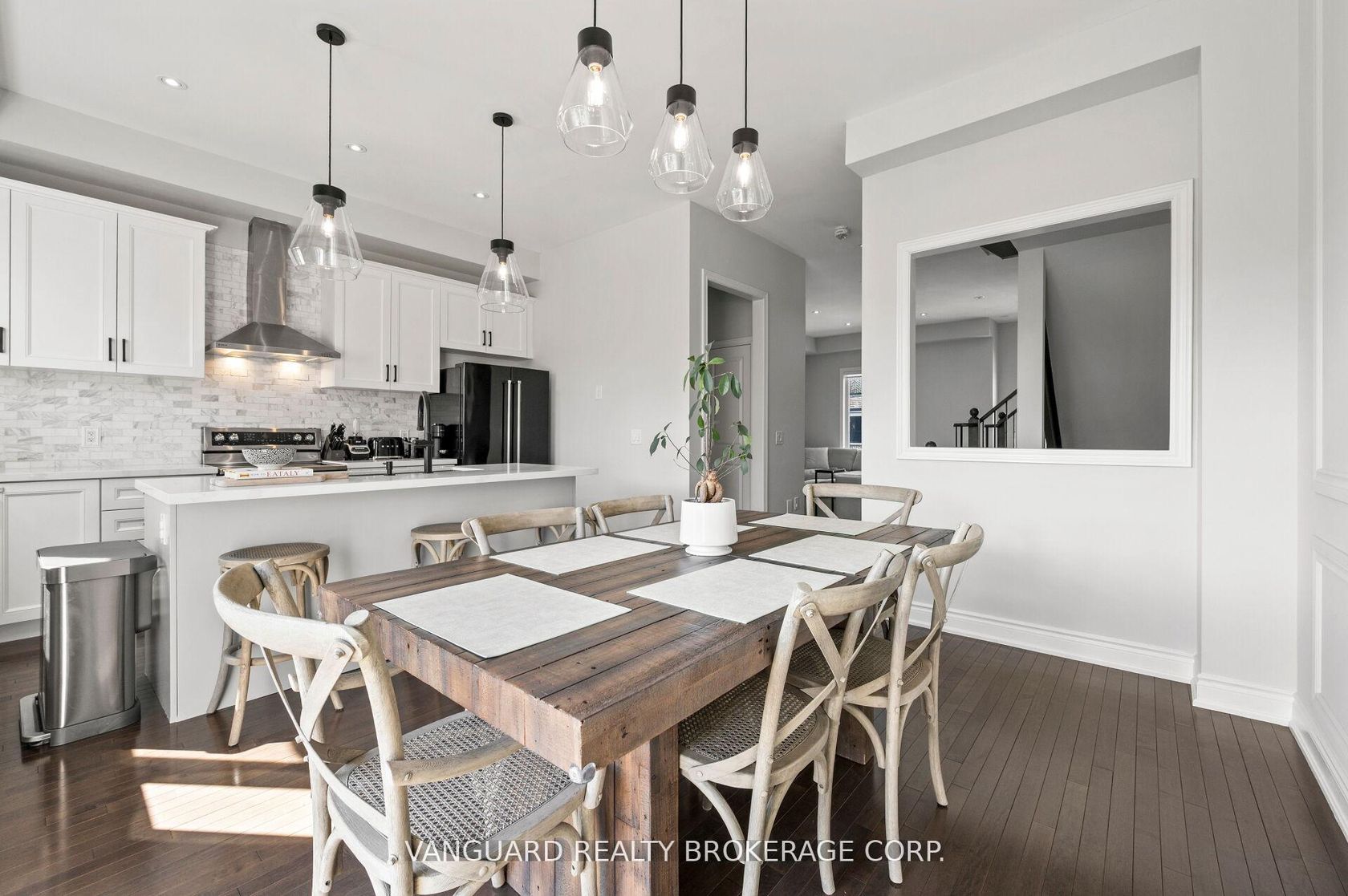 Welcome to 8331 Islington Ave, located in sought-after Islington Woods. Situated on a rare ravine lot, this beautifully maintained 3-bedroom, 5-bathroom townhome offers 1,503 sq ft of elegant living space with impressive 10-ft ceilings on the main floor and 9-ft ceilings on the second.The gourmet kitchen features quartz countertops, a marble backsplash, extended upper cabinetry, and stainless steel appliances, seamlessly flowing into the open-concept dining area with a walk-o…ut to a private balcony. Hardwood flooring, pot lights, and custom millwork add warmth and sophistication throughout.The spacious primary bedroom offers hardwood floors, a 4-piece ensuite, and its own walk-out balcony. Additional bedrooms are bright and generously sized. The walk-out basement provides added living space and flexibility, leading to a fully fenced yard, with convenient access to the garage from inside the home.Ideally located just minutes from the amenities of Vaughan downtown, this exceptional home is perfect for buyers seeking style, comfort, and location.