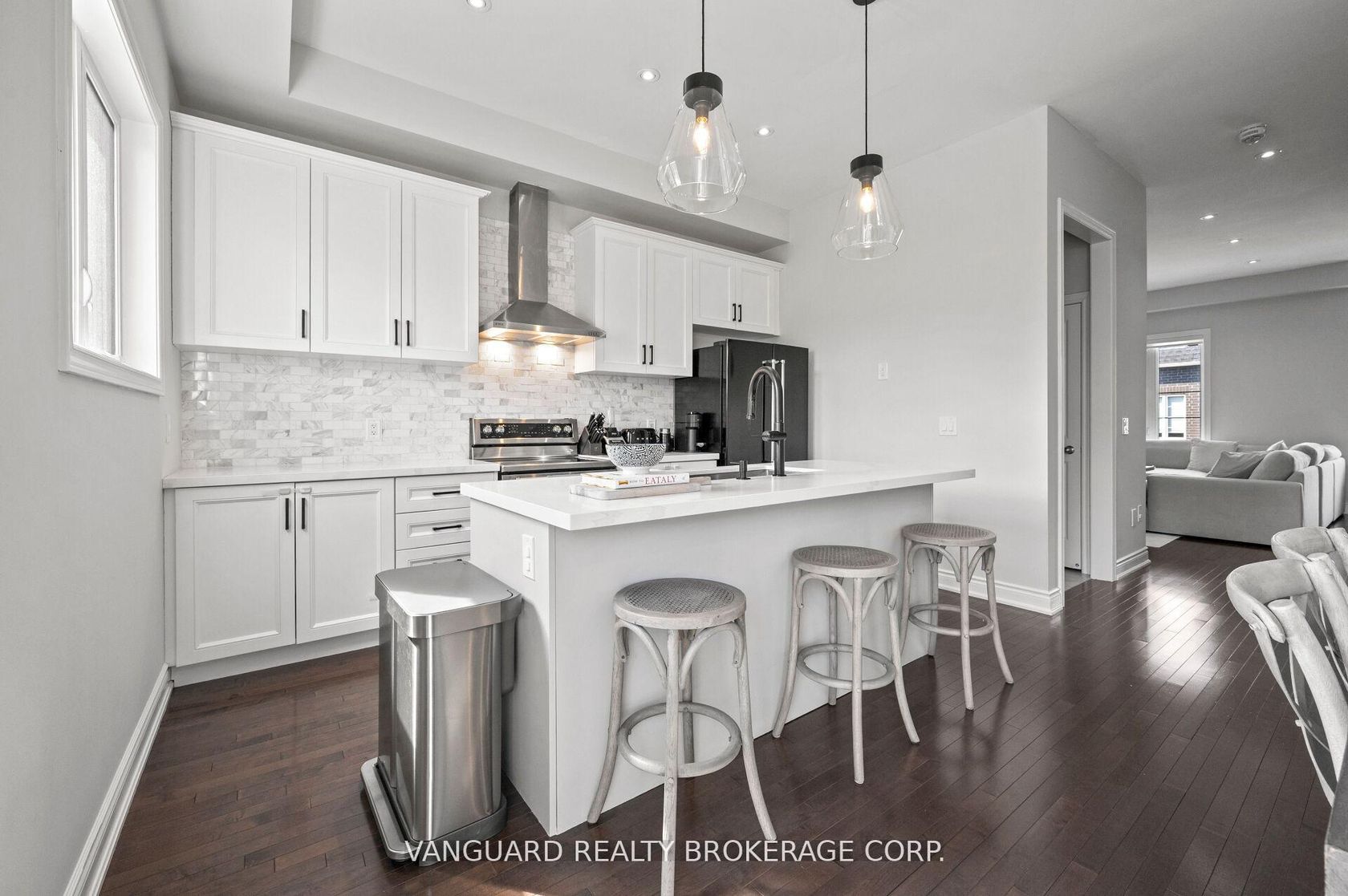 Welcome to 8331 Islington Ave, located in sought-after Islington Woods. Situated on a rare ravine lot, this beautifully maintained 3-bedroom, 5-bathroom townhome offers 1,503 sq ft of elegant living space with impressive 10-ft ceilings on the main floor and 9-ft ceilings on the second.The gourmet kitchen features quartz countertops, a marble backsplash, extended upper cabinetry, and stainless steel appliances, seamlessly flowing into the open-concept dining area with a walk-out to a private balcony. Hardwood flooring, pot lights, and custom millwork add warmth and sophistication throughout.The spacious primary bedroom offers hardwood floors, a 4-piece ensuite, and its own walk-out balcony. Additional bedrooms are bright and generously sized. The walk-out basement provides added living space and flexibility, leading to a fully fenced yard, with convenient access to the garage from inside the home.Ideally located just minutes from the amenities of Vaughan downtown, this exceptional home is perfect for buyers seeking style, comfort, and location.