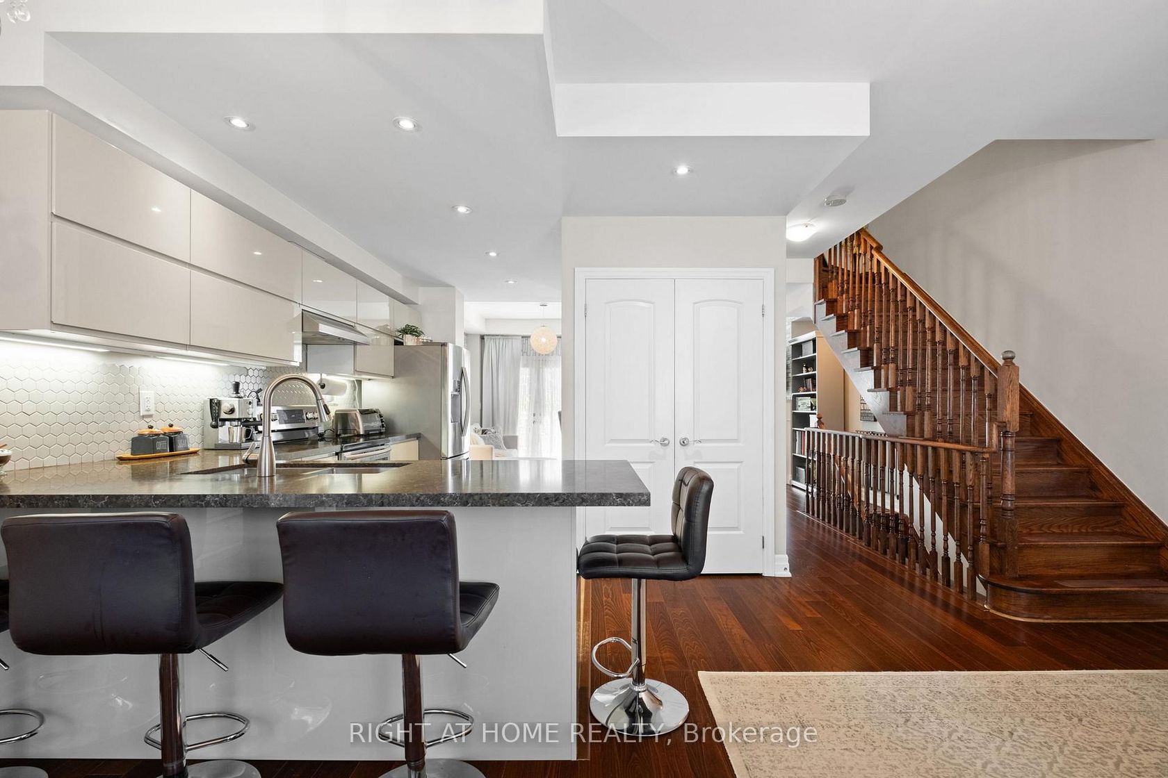 Welcome to 873 New Westminster Drive, a stunningly top-to-bottom renovated townhome in the heart of Thornhill! This spacious 4 bedroom, 3 bathroom home offers a functional layout perfect for young professionals, growing households and established families. 9' ceilings, an open concept layout with a gas fireplace in the Living Area and a walkout to the outdoor patio w/BBQ Connection makes this home perfect for entertaining or to treat as your own personal oasis. The gourmet ki…tchen recently renovated in 2022 is a chef's dream with the beautifully updated finishes, built-in s/s appliances and a Pantry + Breakfast Bar. The dining room with enough space for the large dining table provides the perfect place to enjoy beautiful moments with loved ones. As you reach the top level, you will find 3 generously-sized bedrooms with the primary bedroom having its own modern marble ensuite and walk-in closet! Enjoy being only minutes away from Promenade Shopping Centre, Walmart Supercenter, shops, banks, top-rated schools, library, parks, a community center, places of worship, public transit, Viva bus, easy access to major highways and all the conveniences this vibrant neighborhood has to offer! You don't want to miss the opportunity to call this show-stopper your next home! A very low maintenance fee that include building insurance, snow removal (including the driveway and salt applying), landscaping, replacement of all exterior components (roof, shingles, windows, garage doors and balconies). For an additional $30, you will have full access to nearby condo amenities, including an indoor pool, sauna, gym, and party room.