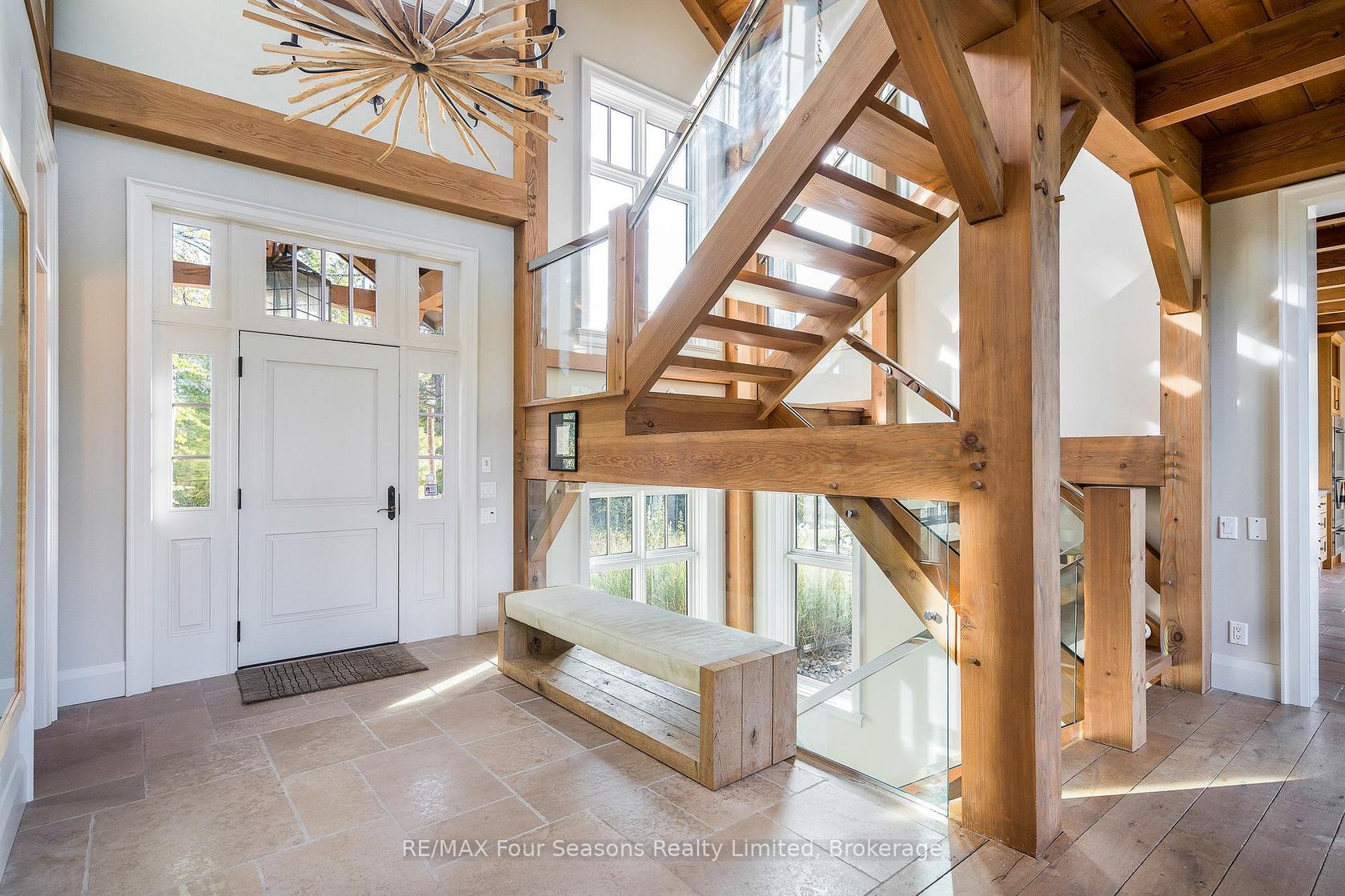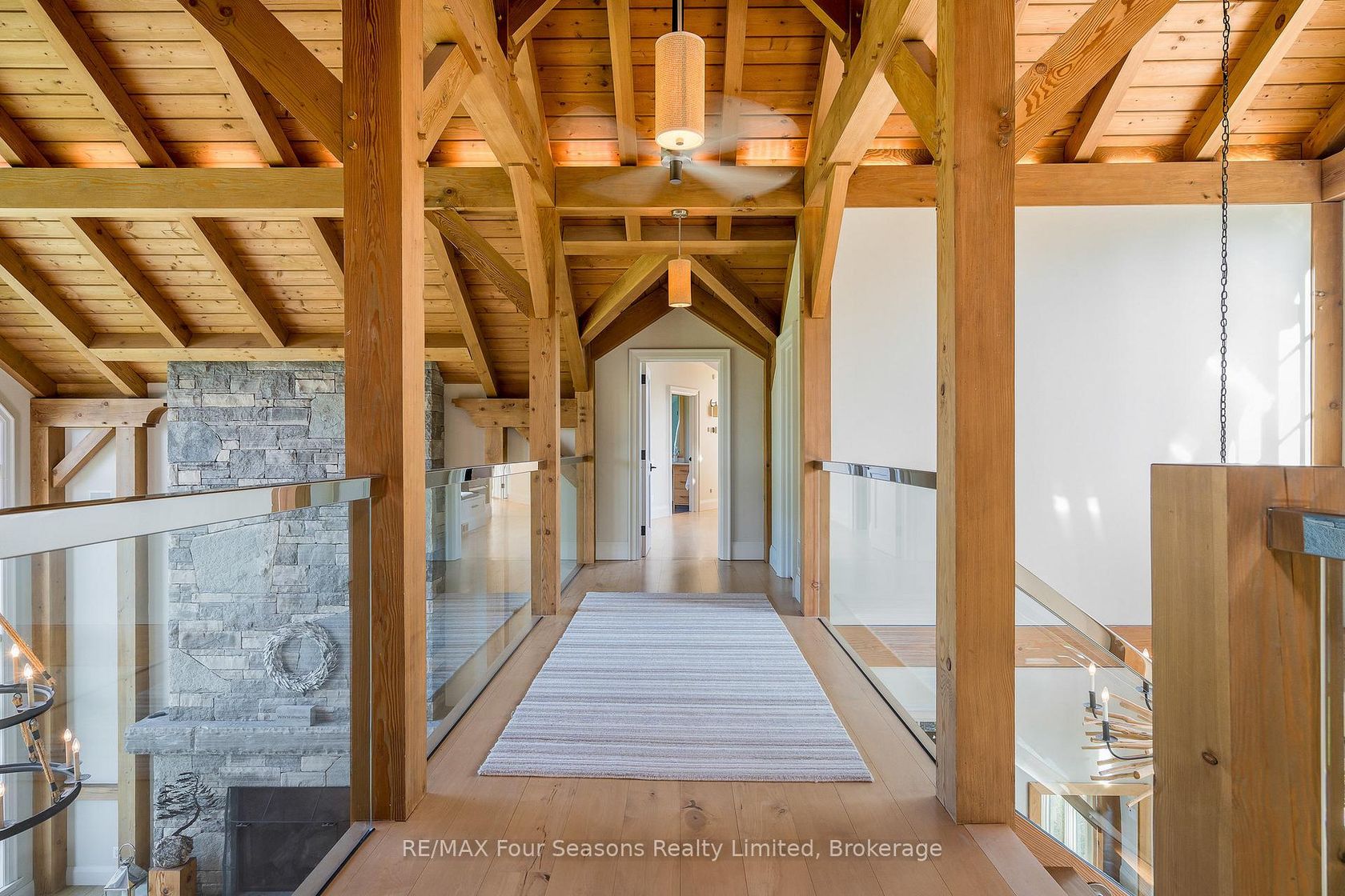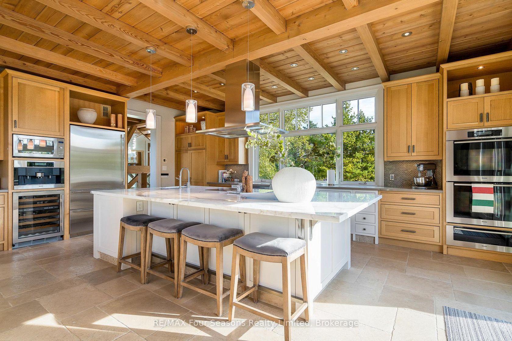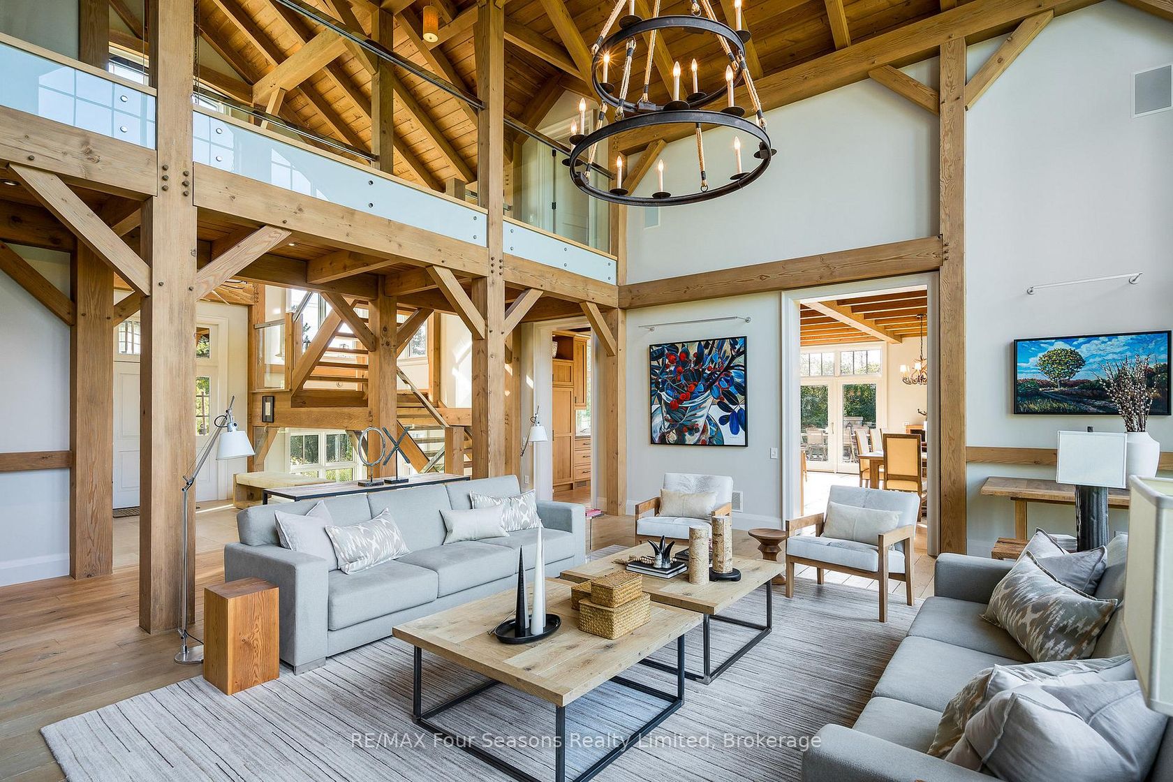 Introducing Winterbrook, a luxurious custom estate home masterfully crafted by Dalton Beachli. Nestled on just under two acres of beautifully landscaped grounds, this extraordinary residence is surrounded by panoramic views of the escarpment, Osler Brook Golf Course, and Osler Bluff Ski Club, and backs onto 98 acres of peaceful forest/farmland. Being offered fully furnished, this home is both a refined gathering place and a serene private retreat, perfectly balancing sophisti…cation, comfort, and connection to nature. Encompassing 5,321 square feet of exquisitely finished living space, Winterbrook features six bedrooms, five bathrooms, and a curated selection of high-end finishes and upgrades. The main level showcases imported Belgian quarter-sawn white oak floors, while the kitchen is enhanced with reclaimed Belgian limestone and high end appliances. At the heart of the home, an Eramosa stone fireplace from Owen Sound creates a striking focal point anchoring the open-concept living space with timeless natural beauty, along with the 26-foot ceilings and floor-to-ceiling windows that capture sweeping views from every angle. Designed equally for entertaining and unwinding, the home offers a commercial-grade gym, three fireplaces, and a custom mudroom to complement an active, four-season lifestyle. Outside, a spectacular outdoor oasis extends the living space across the full width of the home. Enjoy dining, lounging, and hot-tub areas that invite relaxation and connection. Begin your day with sunrises over the terrace, and end with evenings by the fire pit, as cotton candy skies fade into starlit nights. Whether hosting a summer soiree or an intimate winter gathering, every moment here is framed by natural beauty. Ideally located just minutes from Osler Bluff Ski Club, Blue Mountain, and downtown Collingwood, Winterbrook is a true four-season paradise and is a celebration of craftsmanship, design, and modern luxury that defines extraordinary living.