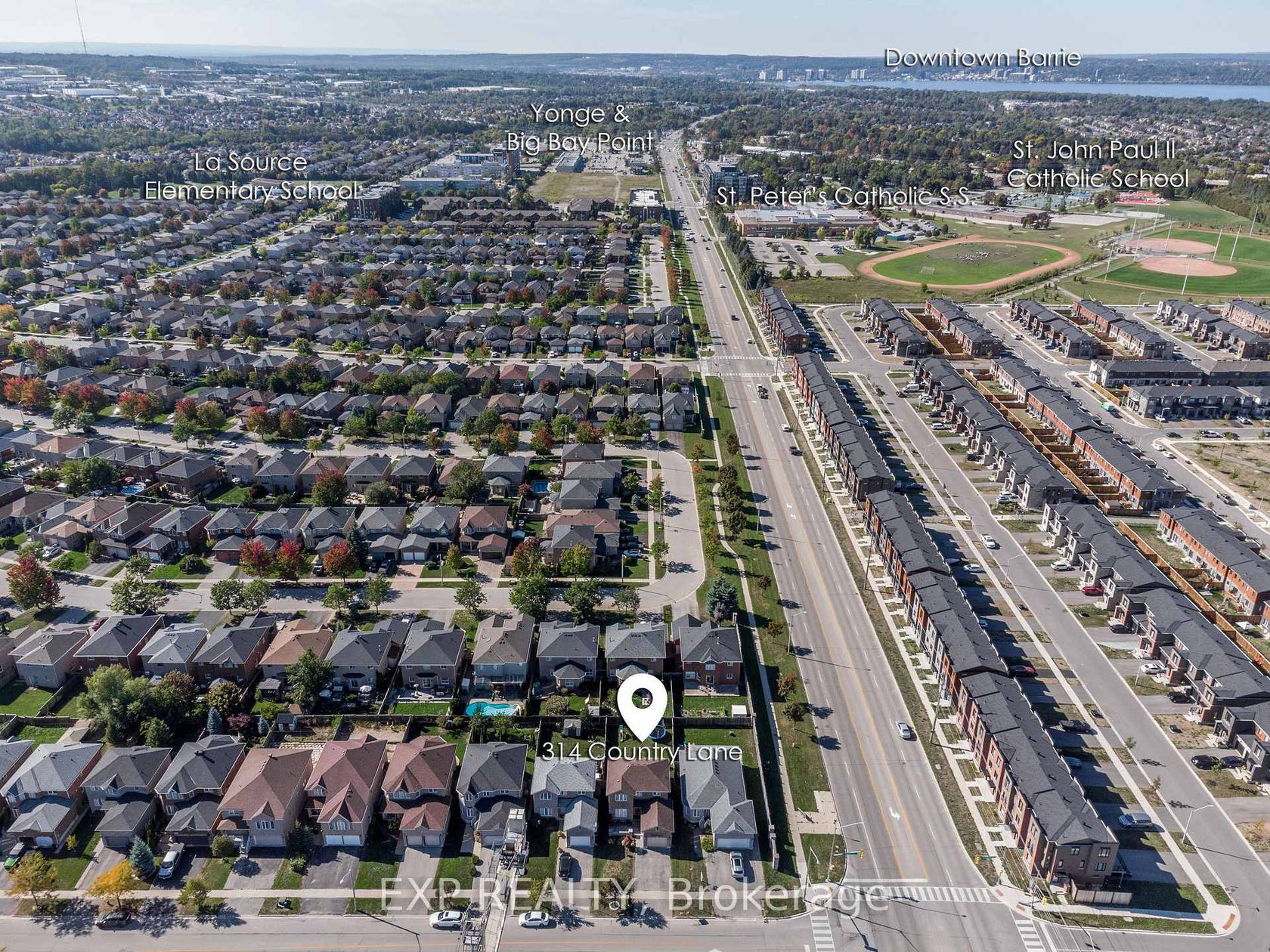 Welcome to 314 Country Lane in Barrie, a beautifully maintained 1,498 square foot home offering a bright and inviting layout with thoughtful updates throughout. The main floor features soaring nine-foot ceilings, hardwood flooring, and hardwood stairs with wrought iron spindles, creating a warm and stylish atmosphere. The eat-in kitchen is equipped with stainless steel appliances and granite countertops with a backsplash, and flows seamlessly into the combined living and dini…ng room, perfect for both everyday living and entertaining. California shutters on the main level add a polished touch, while the bathrooms have been freshly painted for a modern feel. Step outside to a large backyard deck with a covered seating area, an ideal spot for outdoor dining and relaxation. The front yard has been updated with hardscaping and landscaping, giving the home beautiful curb appeal. Upstairs, you'll find spacious bedrooms filled with natural light. Large primary with ensuite offering the perfect space to unwind at the end of the day. Unfinished basement with a four-piece rough-in provides endless potential for additional living space. Recent updates include a new roof completed in September 2025 and newer windows throughout most of the home, adding to its long-term value and comfort. Located in a desirable neighbourhood with close proximity to public transit, schools, Mapleview Shopping, the Barrie waterfront, and the GO Station, this property combines convenience with quality living. With its modern updates, inviting spaces, and prime location, 314 Country Lane is ready to welcome its next owners.