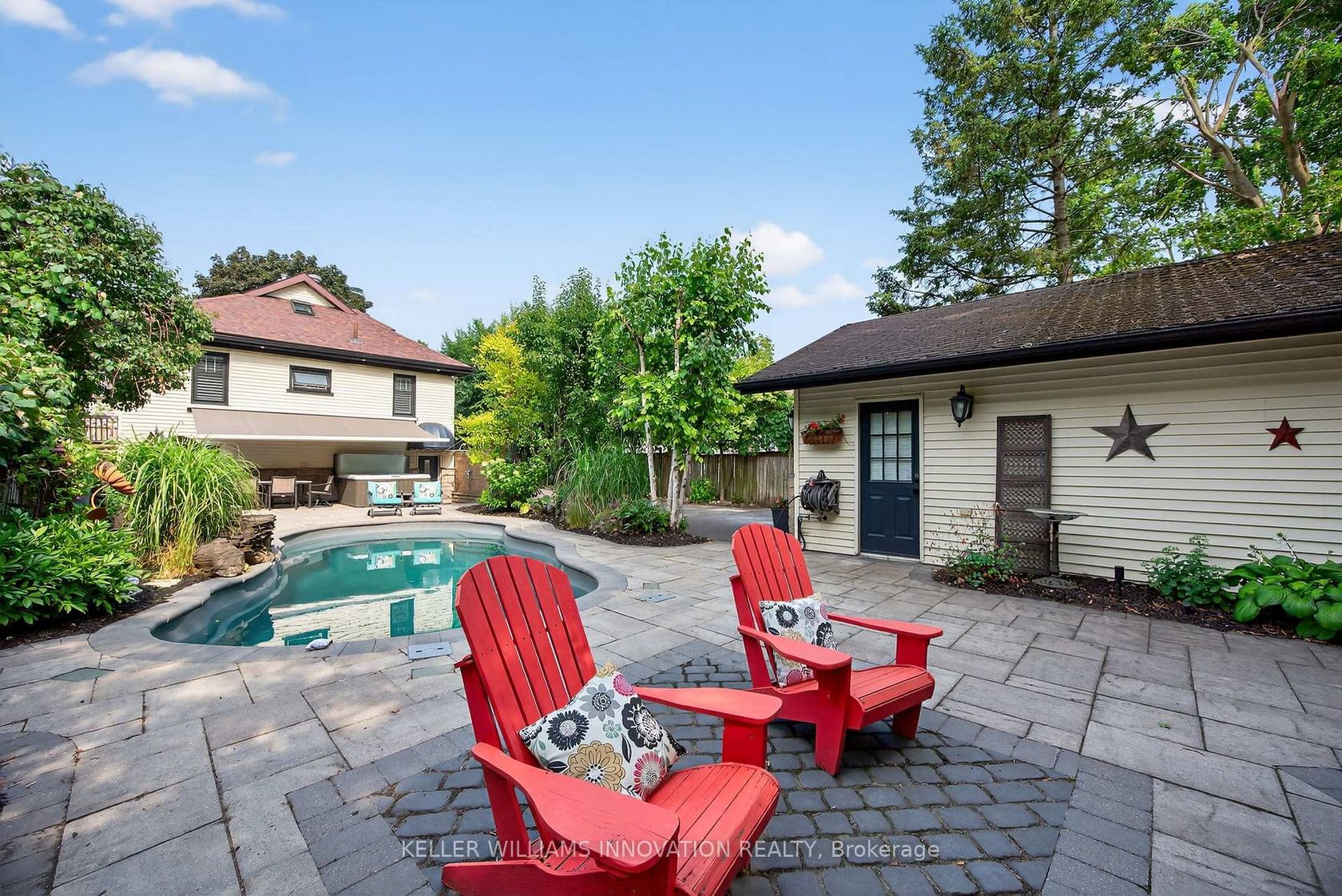 In the heart of downtown Barrie, where tree-lined streets meet the charm of vibrant city life, 108 Owen Street offers a rare blend of character, comfort, and modern elegance. Just a short drive to Kempenfelt Bay and the marina and a five minute walk to effortless access to Lake Simcoe's endless possibilities; from boating and fishing to leisurely waterfront strolls, all while enjoying the convenience of parks, shops, dining, and entertainment only moments from your door. Behi…nd the gated entry, lush gardens and mature landscaping set the stage for a home designed as much for gathering as it is for quiet moments. The backyard unfolds into a private oasis with an in-ground pool, hot tub, outdoor shower, chef's outdoor kitchen, and a magnificent stone fireplace that turns summer evenings into cherished memories. The detached 31 x 24.5ft double garage with workshop, equipped with a 60-amp panel, provides both practicality and potential, while generous parking accommodates a boat or trailer with ease. Inside, sunlight spills across warm natural wood beam accents in the kitchen and living room, where a gas fireplace offers a welcoming glow. The main floor features a dedicated office, a spacious bedroom, bathroom and plenty of entertaining space. Upstairs, the master suite is a private sanctuary with steam shower, sky light, and tranquil night sky views. The walk-out lower level is an entertainer's delight offering a second bedroom, a gas fireplace, a wet bar, and a projector TV create the perfect setting for gatherings, with seamless access to the pool terrace. With 200-amp service, central vac, abundant storage, and a long list of stunning upgrades, this home is entirely move-in ready. 108 Owen St. is a place where every space feels intentional, where beauty and comfort meet, and where the next chapter of life can be written with ease and grace.