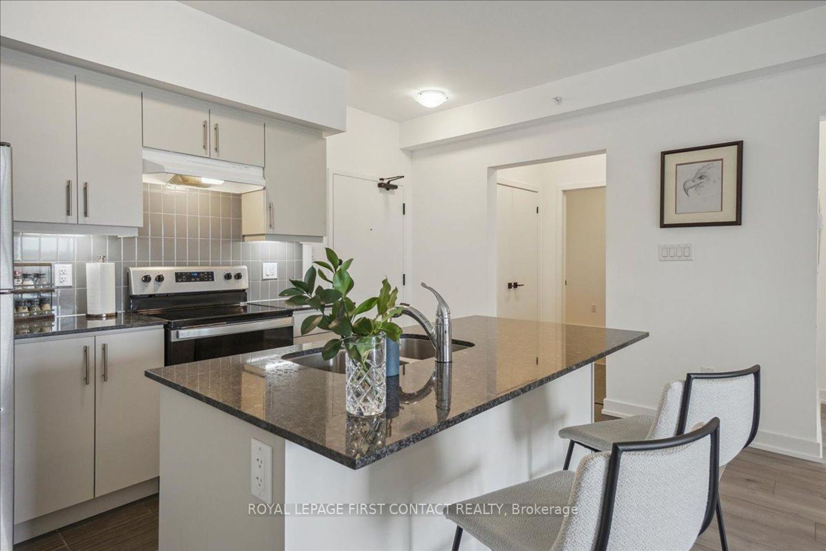 Client RemarksBistro 6 Condo - 1 Bedroom + Den in Barrie.....Welcome to this bright and spacious 1-bedroom plus den condo located in the sought-after Bistro 6 building in Barrie! Perfectly designed for modern living, this unit offers a generous layout with plenty of natural light. The open-concept living and dining area provides ample space for both relaxation and entertaining.The well-sized bedroom features large windows, offering a serene retreat, while the additional den o…ffers flexibility for an office, reading nook, or guest space. The contemporary kitchen is fully equipped with sleek appliances and ample cabinetry for all your culinary needs.Enjoy the convenience of in-suite laundry, private parking, and more. Located close to all of Barrie's best attractions, including shops, restaurants, parks, and the waterfront, this condo offers the perfect blend of comfort and convenience. Dont miss your chance to call this beautiful, move-in ready space your new home!