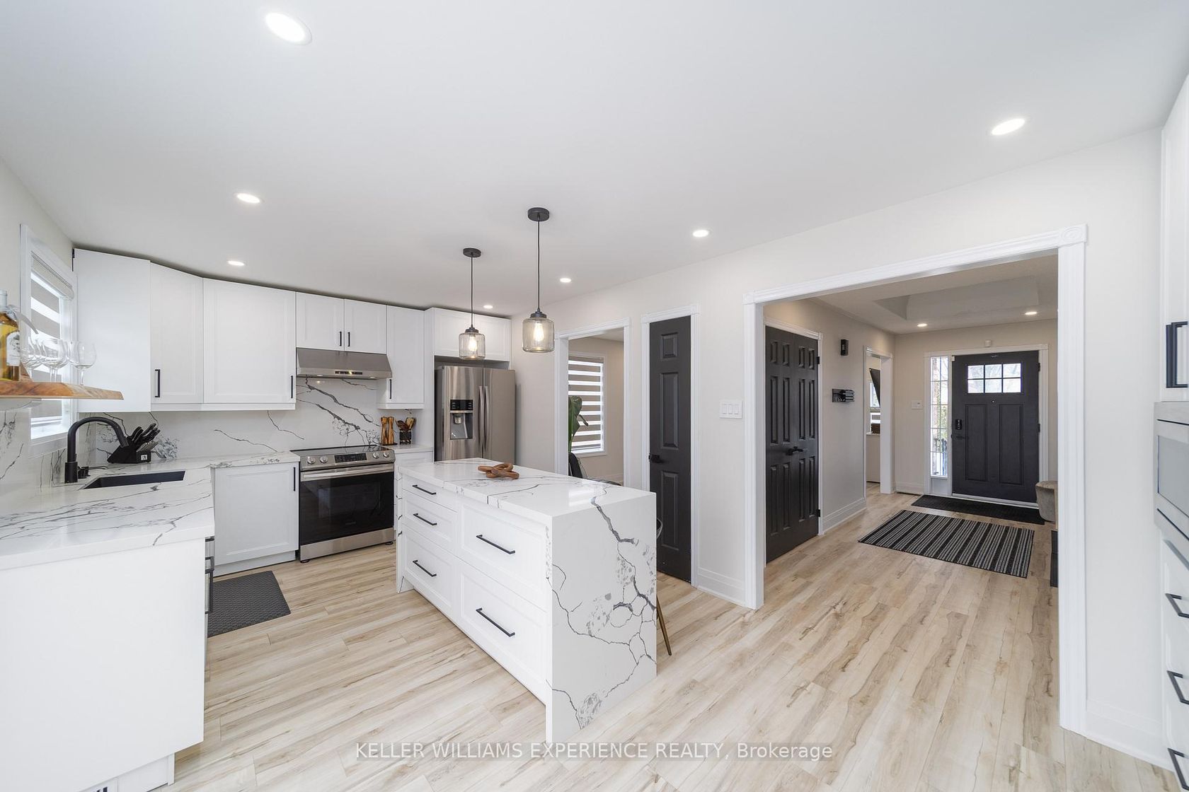 This fully renovated 3-bedroom bungalow sits on a premium pie-shaped lot in one of Barrie's most sought-after neighbourhoods. Updated top to bottom, this turn-key home delivers a clean, modern aesthetic with high-end finishes throughout.The main level showcases luxury vinyl plank flooring, a refined gourmet kitchen with quartz countertops, matching quartz backsplash, stainless steel appliances, and a built-in coffee station. Fresh paint, upgraded hardware, contemporary lighti…ng, and a beautifully renovated main bath featuring double sinks, a tiled shower, and a soaker tub complete the space.The walkout basement is bright and open, offering exceptional flexibility with a full second kitchen, one bedroom, and 3-piece bathroom-ideal for extended family, guests, or in-law potential. Outside, enjoy a private backyard retreat with a hot tub, perfect for year-round relaxation.Located minutes from top-rated schools, neighbourhood parks, shopping and dining along Mapleview Drive, Park Place, and major commuter routes including Highway 400, this home offers both convenience and lifestyle in a highly desirable Barrie location. Move in and enjoy.