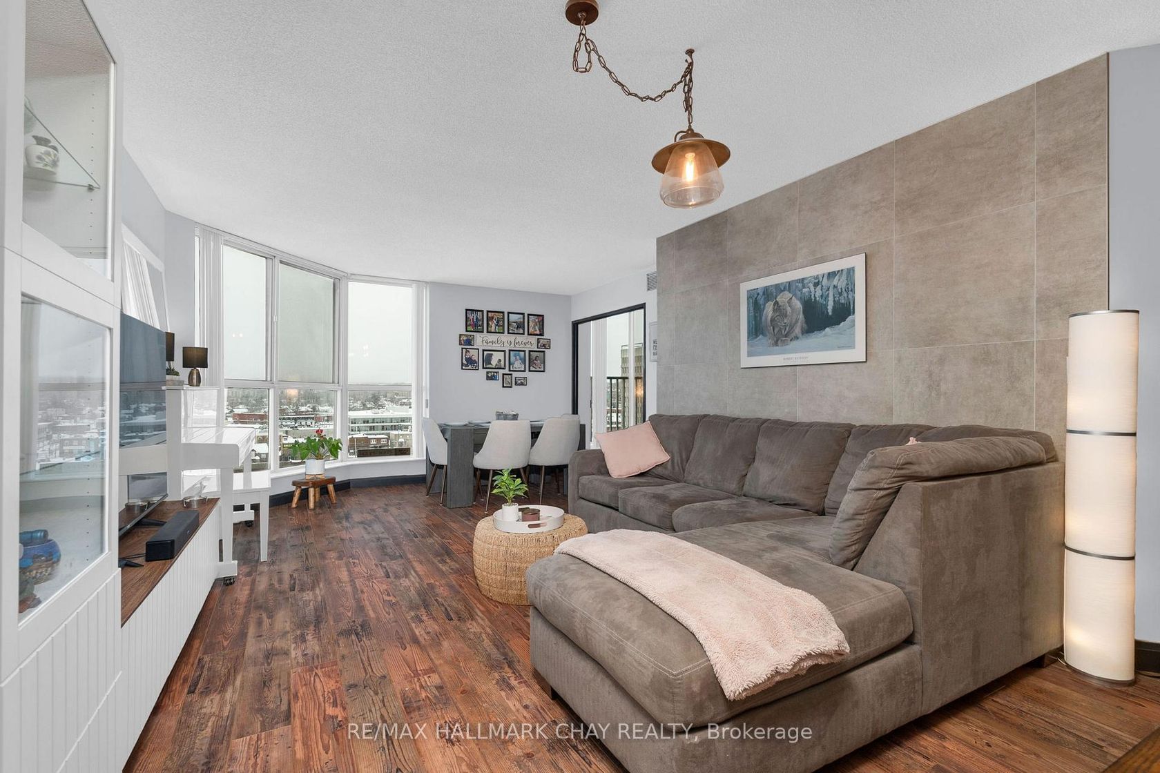 Welcome to Suite 1003 at Bayshore Landing, where waterfront living meets vibrant downtown convenience. This beautifully updated 1-bedroom and den condo offers breathtaking, unobstructed views of Kempenfelt Bay and the Barrie skyline, creating a stunning backdrop in the afternoon sun and for unforgettable sunsets. The thoughtfully designed interior features warm hardwood flooring, complemented by a striking wood beam accent that adds character and charm throughout the main liv…ing space. The open-concept layout is enhanced by custom feature walls, including a modern tile design in the living room and a stylish exposed brick wall in the bedroom, giving the home a unique, upscale feel. Large windows flood the space with natural light while perfectly framing the premium lake and city views. The added convenience of in-suite laundry makes everyday living effortless. The versatile den space features a charming Juliet balcony and offers flexibility with access from both the living area and the bedroom. This adaptable space is perfect for a large walk-in closet, additional living area, or the ideal home office for today's remote or hybrid lifestyle. Step outside and enjoy one of Barrie's most sought-after locations. Walk along the North Shore Trail, relax at nearby beaches, or explore the many local restaurants, cafés, and shops just steps from your door. Whether you enjoy an active lifestyle or quiet waterfront evenings, this location truly has it all. Residents of Bayshore Landing enjoy exceptional amenities including an indoor pool, hot tub, sauna, fitness centre, and secure indoor parking. This unit also includes underground parking and a rare, double-sized indoor locker, offering valuable additional storage. Ideal for professionals, downsizers, or anyone looking to embrace a low-maintenance waterfront lifestyle, this is your opportunity to own in one of Barrie's most desirable condo communities.