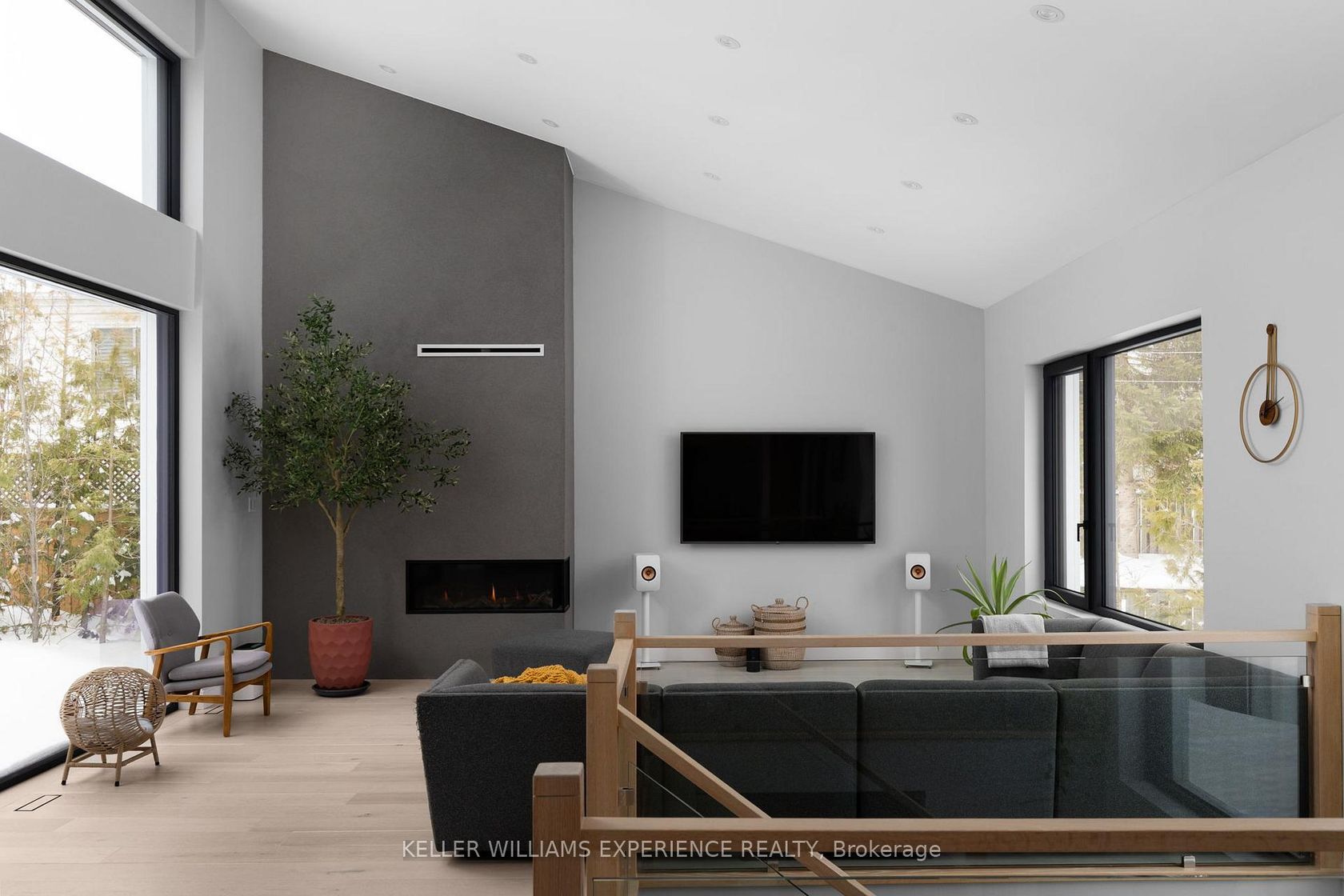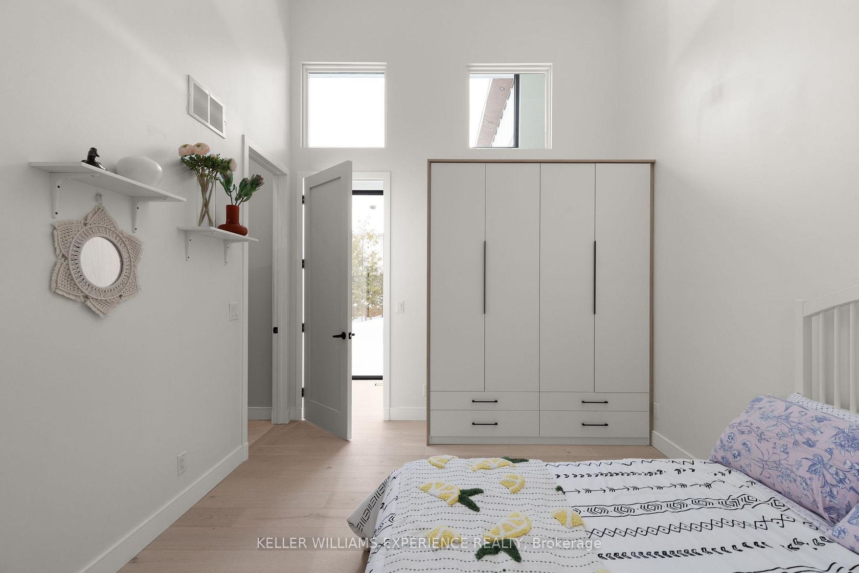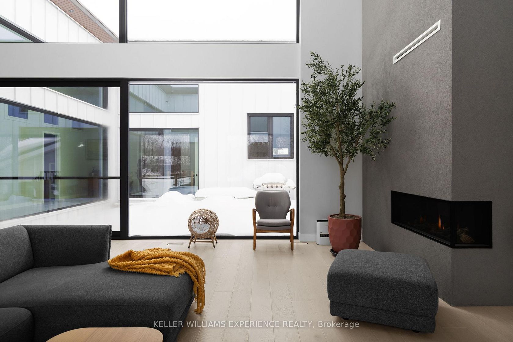 Architectural. Refined. Turn-Key. Exceptional custom-built bungalow (2021) offering over 4,300 sq ft of finished living space, complete with a private courtyard retreat, insulated Quonset hut, and summer house. Constructed with R35 ICF for superior efficiency and durability, and finished with a Standing Seam aluminum roof, aluminum siding, and aluminum windows. Striking angular rooflines, rich wood accents, and professionally landscaped grounds create remarkable curb appeal. …Open-concept interior featuring 17-ft cathedral ceilings, engineered hardwood flooring, and a chef-inspired kitchen imported from Greece with porcelain countertops, waterfall island, premium KitchenAid and Monogram appliances, and a full butler's pantry. All main-level bedrooms offer private ensuites, including a spa-like primary with freestanding tub and glass shower. Fully finished lower level with 9-ft ceilings, rec room with fireplace, wet bar, office, bonus room, additional bedroom, laundry, and 4-piece bath. Gas hot water on demand. 200-amp service (home), 100-amp (garage), 60-amp (Quonset hut). Outdoor courtyard includes gas line; raised garden beds and greenhouse complete the property. A rare, design-forward offering combining craftsmanship, efficiency, and lifestyle.