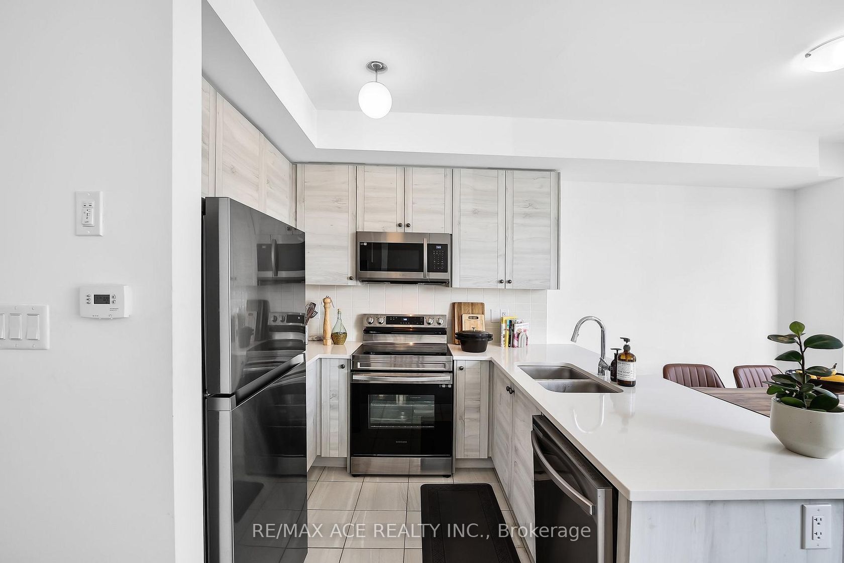 Discover contemporary living in this beautifully designed 2-bedroom, 2-bathroom townhouse, ideally located in the highly desirable Innishore neighbourhood. Offering 1,095 square feet of thoughtfully planned living space, this home perfectly balances comfort, convenience, and modern style. Situated just off Yonge Street and Mapleview Drive, this 3-storey residence is close to parks, top-rated schools, scenic hiking trails, and a wide range of dining and shopping options. Commuters will appreciate the proximity to the Barrie South GO Station-only 5 minutes away-and quick access to Highway 400, just a 10-minute drive. Spend weekends enjoying convenient access to two of Barrie's premier destinations -it's vibrant waterfront or the upscale Friday Harbour Resort- both within 15 minutes from your doorstep. Built in 2023, the home features striking curb appeal with stylish grey brick, black-framed windows, and bold architectural lines. Inside, the open-concept layout is enhanced by sleek laminate flooring and beautiful oak railings. The contemporary kitchen boasts quartz countertops, an extended upper cabinet design, a tiled backsplash, a flush breakfast bar, and stainless steel appliances. It seamlessly connects to the spacious family and dining areas, with a French door leading to a private balcony-perfect for outdoor lounging or entertaining. The main bathroom features quartz countertops and elegant tile finishes, while thoughtful storage solutions throughout the home add to its functional charm. This move-in ready home presents an exceptional opportunity to live in one of Barrie's most vibrant and well-connected communities.