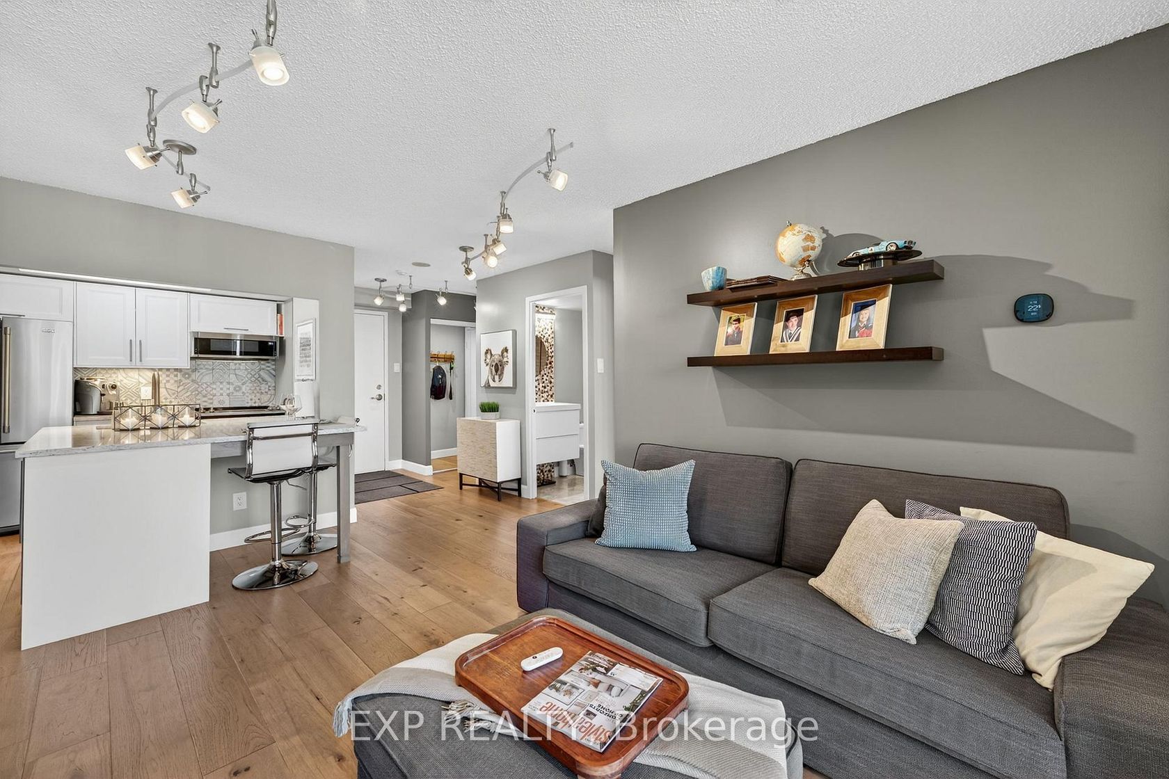 WATER VIEW : This is truly a lifestyle! Custom Design and Stunning Views. Make your dream of living on the waterfront a reality. The Regatta and the Marina Bay towers are established on the largest property right across from Barrie's Centennial Beach. This gated enclave is offering plenty of green space with beautifully landscaped grounds and an abundance of PARKING for your visitors, features that you will hardly find at any downtown condo buildings. FULLY RENOVATED unit wit…h quality finishes and functionality, you will feel at home the moment you cross the door step! From the warmth and richness of its hickory wide plank flooring to the elegant "Silestone" quartz counter tops, you will enjoy the flow and feel of the space. All appliances are FULL SIZE for your convenience and enjoyment. Be the witness of marvellous sunrises over Kempenfelt Bay and take advantage of the waterfront trails for an easy walk to downtown. Steps to GO Train and public transit. New Furnace & A/C installed in 2022. Napoleon fireplace 2021. All appliances replaced in 2020. Water and Hot Water are included in Condo fees. Low electricity bill (including heating/cooling) averaging approx. $75/month, no gas. Unit size is 640 sqft.