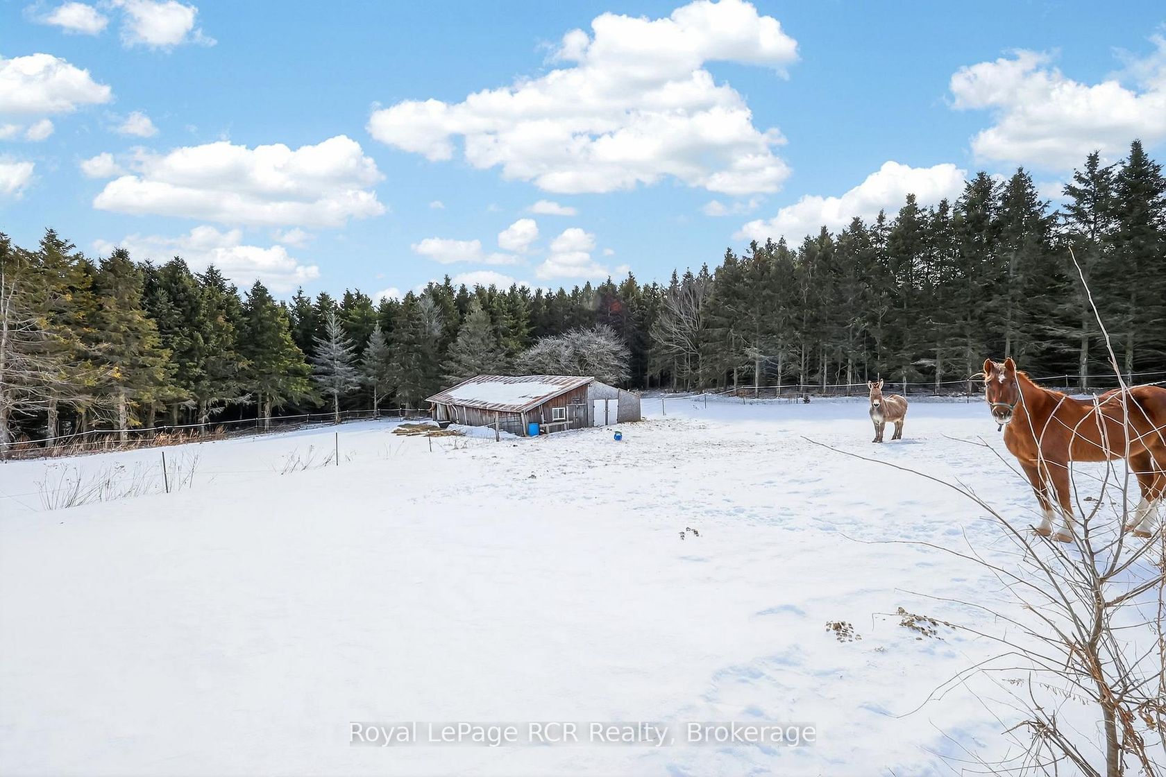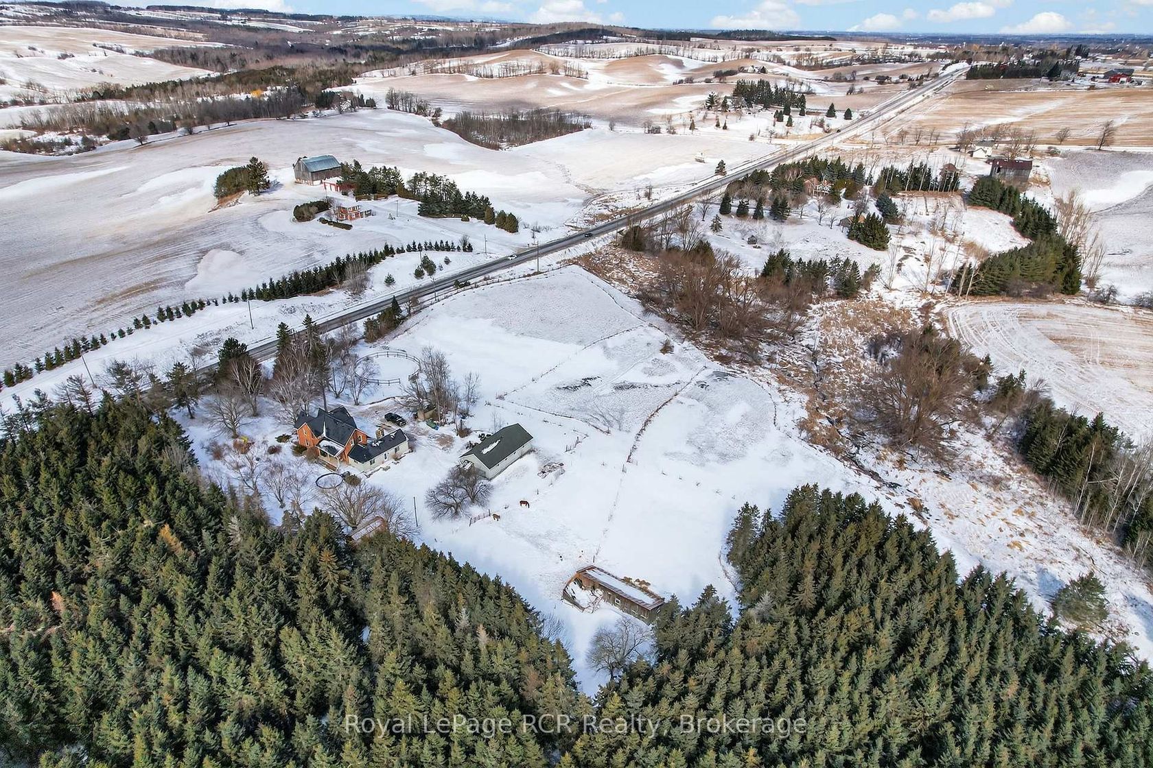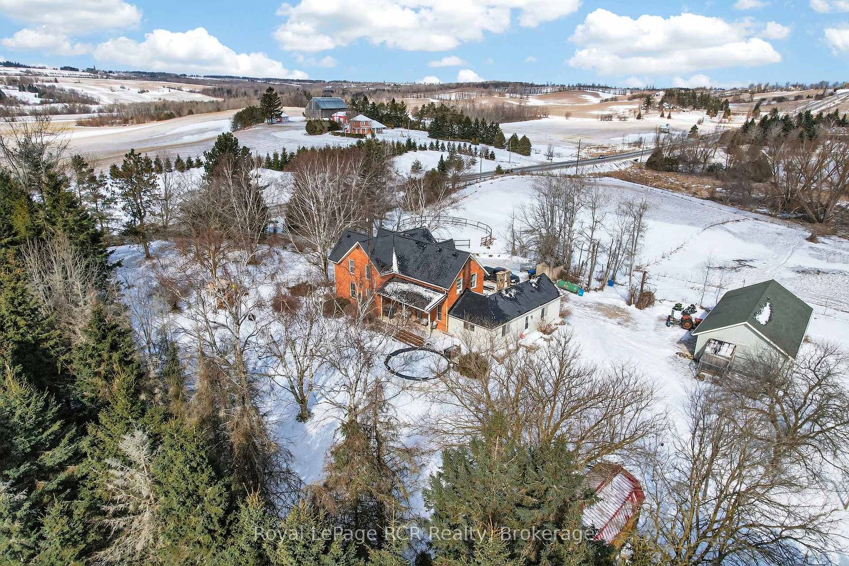 3,000 square foot, 2 storey red brick farmhouse with a 25x50 garage on 16 acres. Set back off the road for privacy, the updated 4 bedroom, 2 bath home has great original features and 9' ceilings. The main level rooms are spacious and feature a formal dining room, living room, bathroom, eat-in kitchen, den and family room. The family room boasts a fieldstone wood-burning fireplace that is the focal point of the room. On the second level you will find 4 bedrooms and the second… bathroom. Three covered porches provide countryside views and a place to enjoy the hot tub. The detached garage has hydro and 2 roll up doors. There is a small hobby barn, paddocks, fencing and a chicken coop. Country living in a great location! Drilled well south east of house (pump 2 years old), septic to north of house.