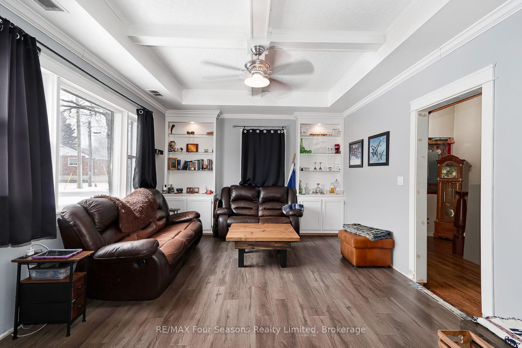 Charming 2-storey century home in Stayner on an oversized lot. Featuring 3 bedrooms and 2 full bathrooms, this home offers a gas furnace and central air for year-round comfort. The living room has a beautiful coffered ceiling, and the kitchen includes stainless steel appliances. A large 2-car detached garage/shop is fully insulated and heated with a heat pump. Updates include roof (2016), A/C (2018), upgraded attic insulation, eavestroughs, soffit, and fascia completed in (2021) on both the house and garage. A rare opportunity to own a character-filled home with ample space for living, working, and entertaining.